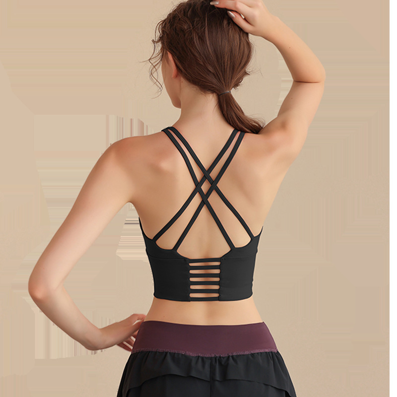 얇은 어깨 크로스 백 스포츠 속옷 여성 달리기 충격 필라테스 피트니스 요가 브라 아우터 슬림 조끼