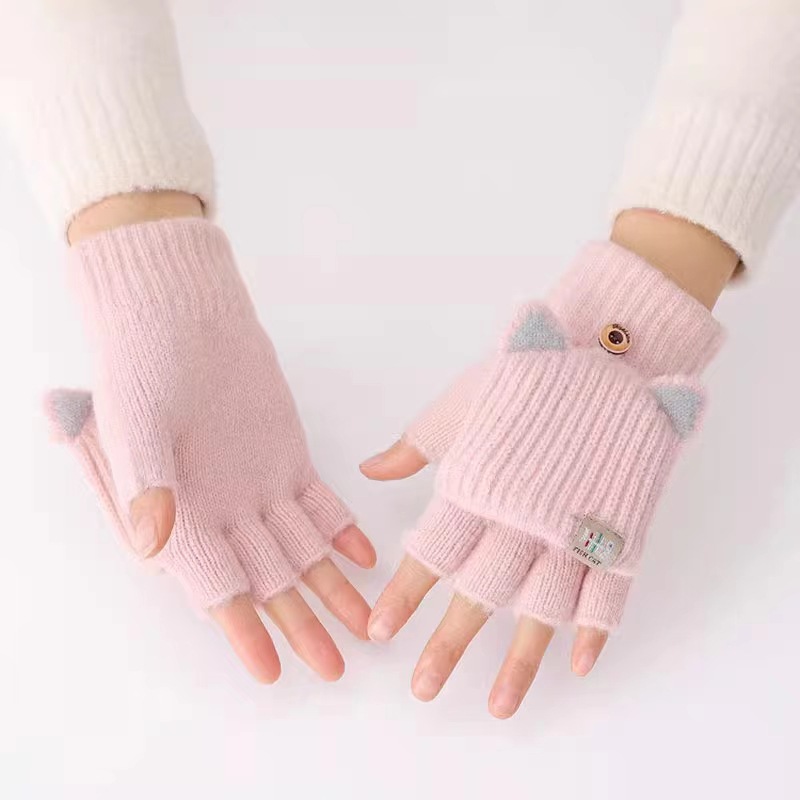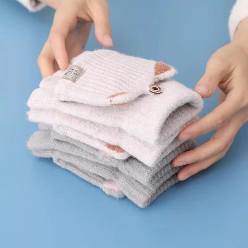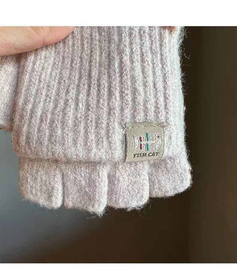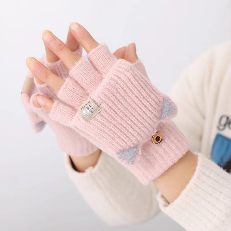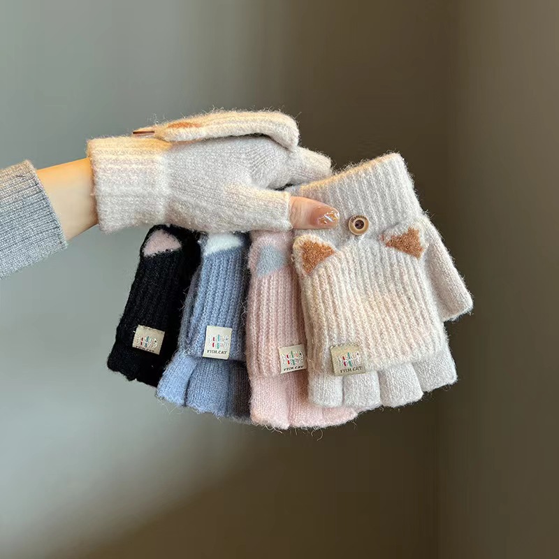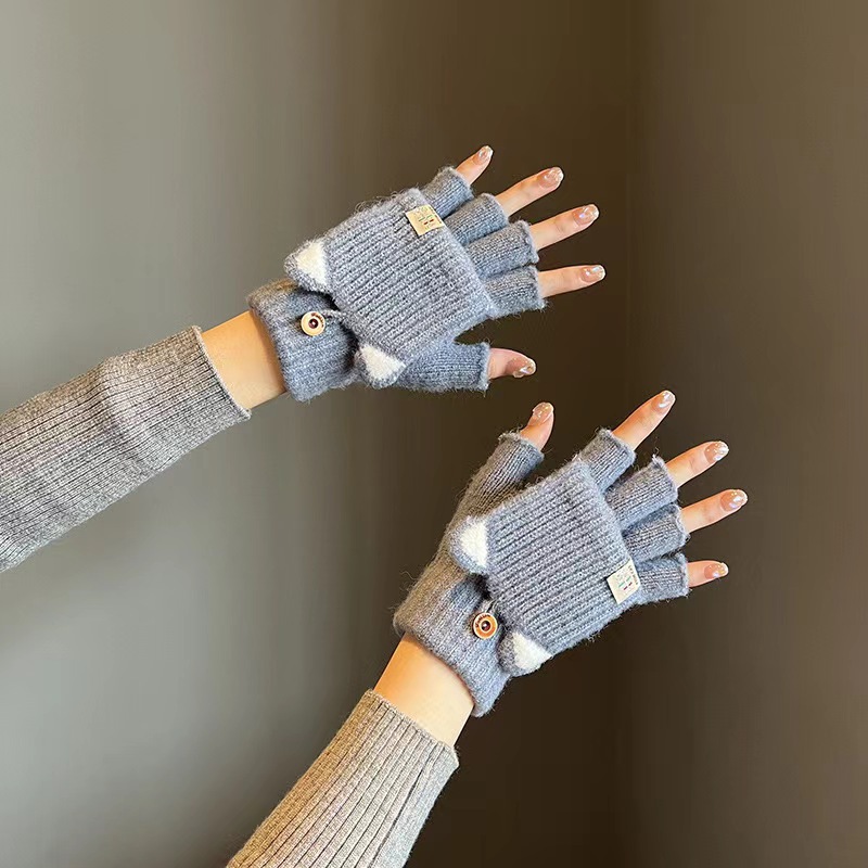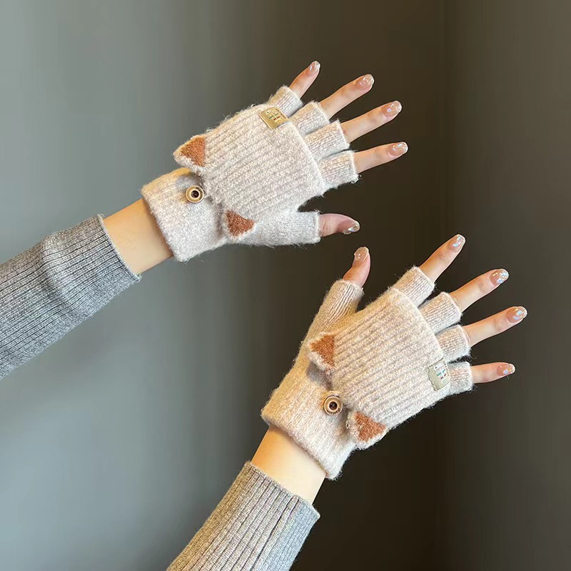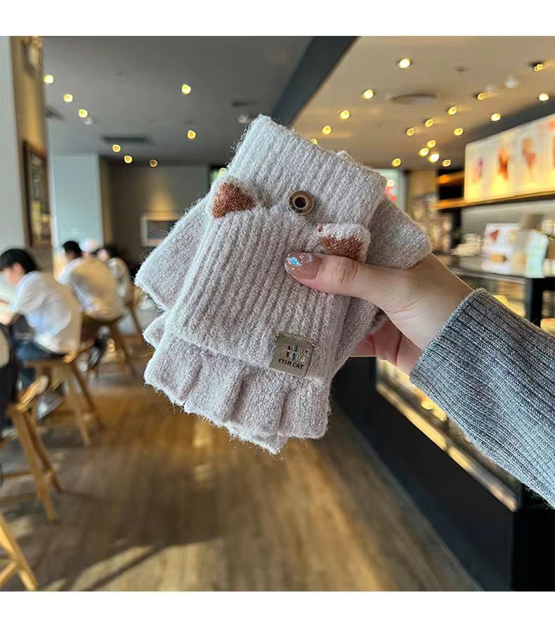 플립 장갑 여성의 가을과 겨울 패션 학생 귀여운 따뜻한 반 손가락 장갑 어린이 장갑 니트 장갑 도매스토어 가기