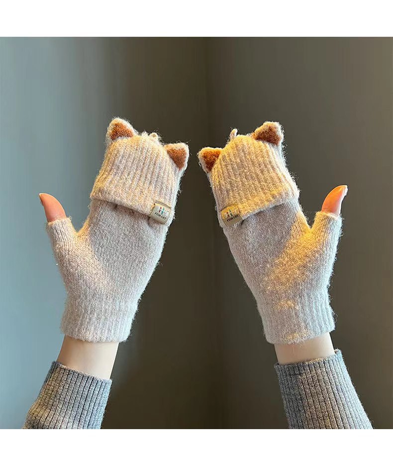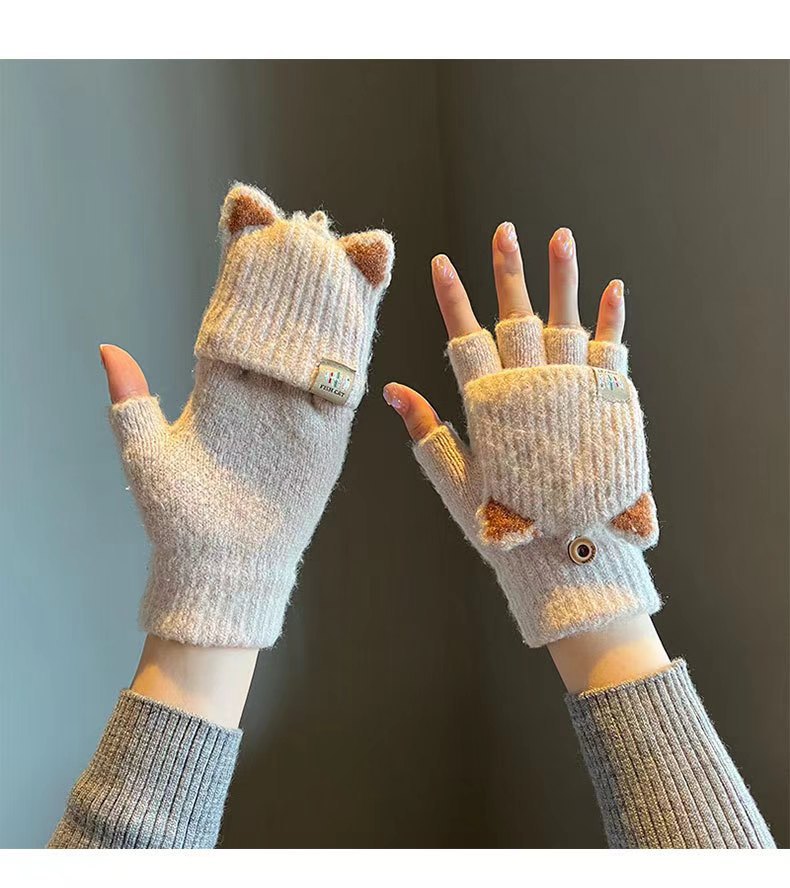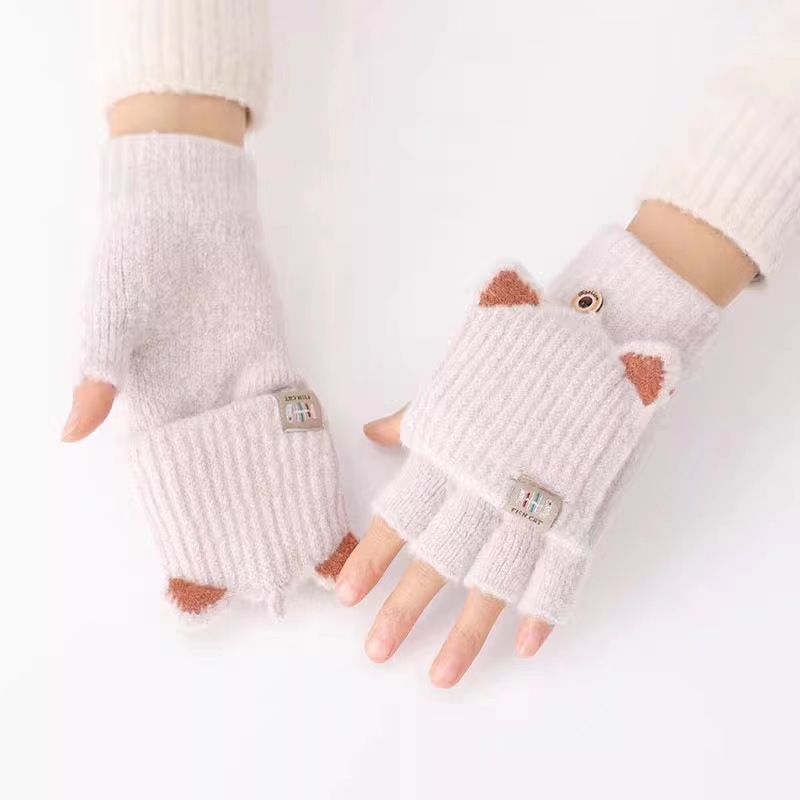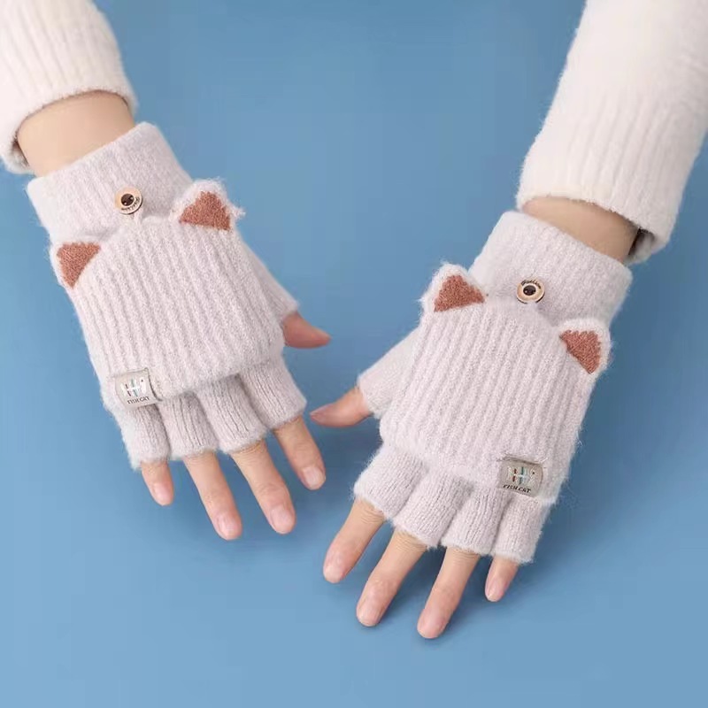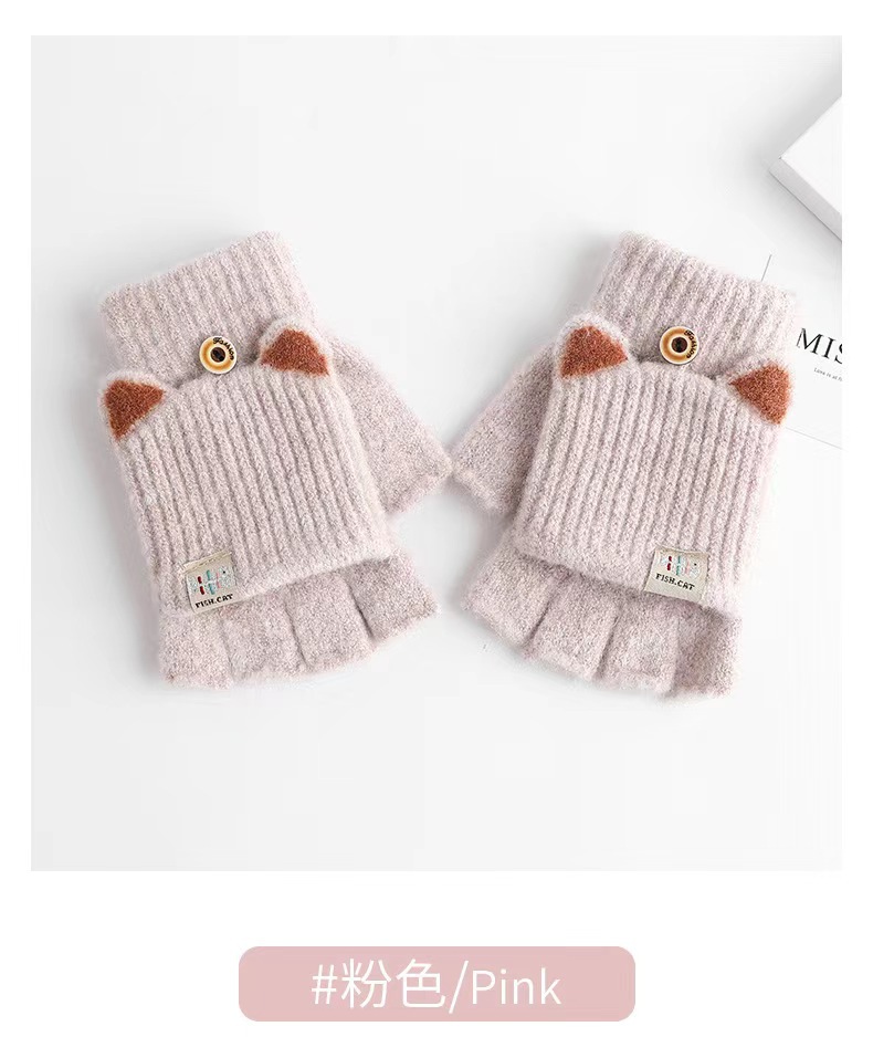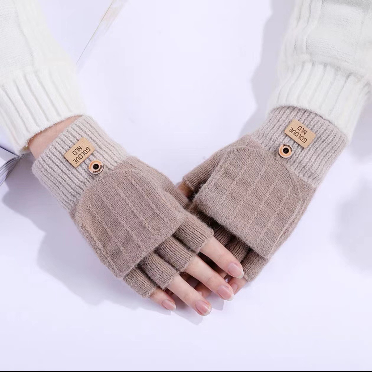 플립 장갑 여성의 가을과 겨울 패션 학생 귀여운 따뜻한 반 손가락 장갑 어린이 장갑 니트 장갑 도매스토어 가기