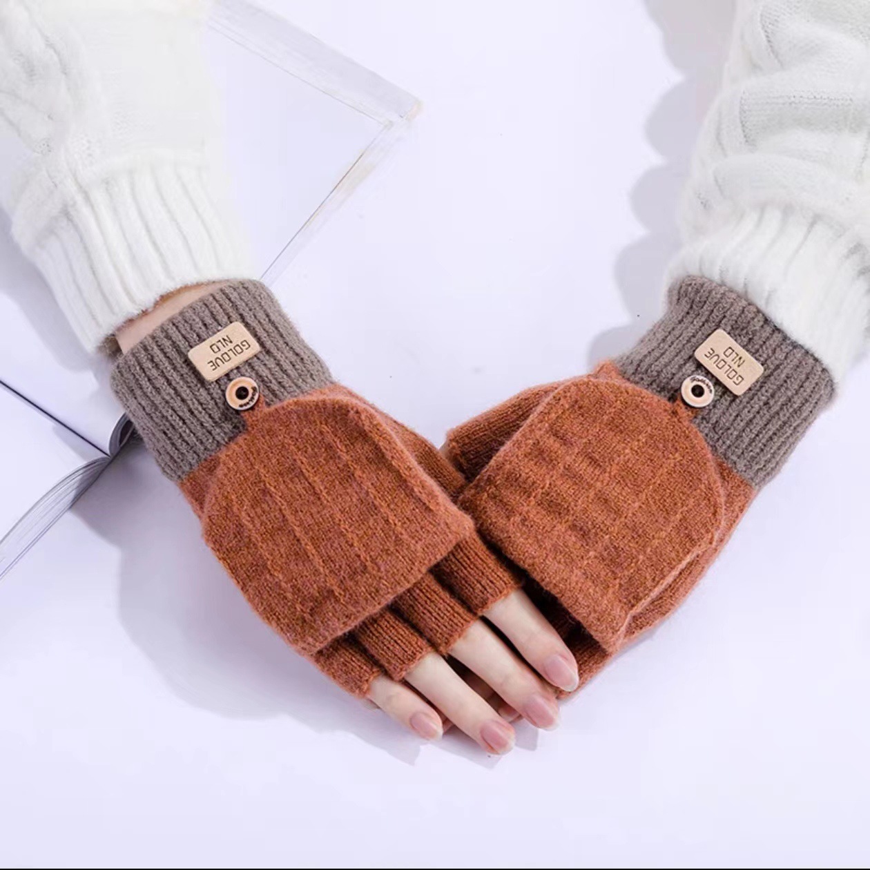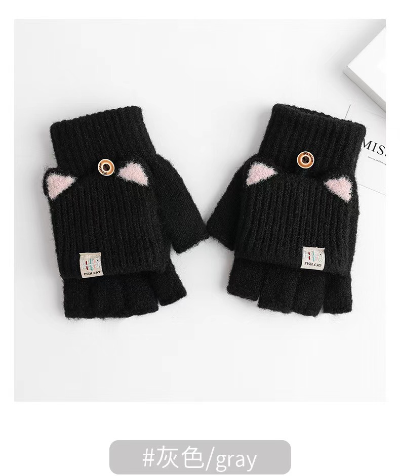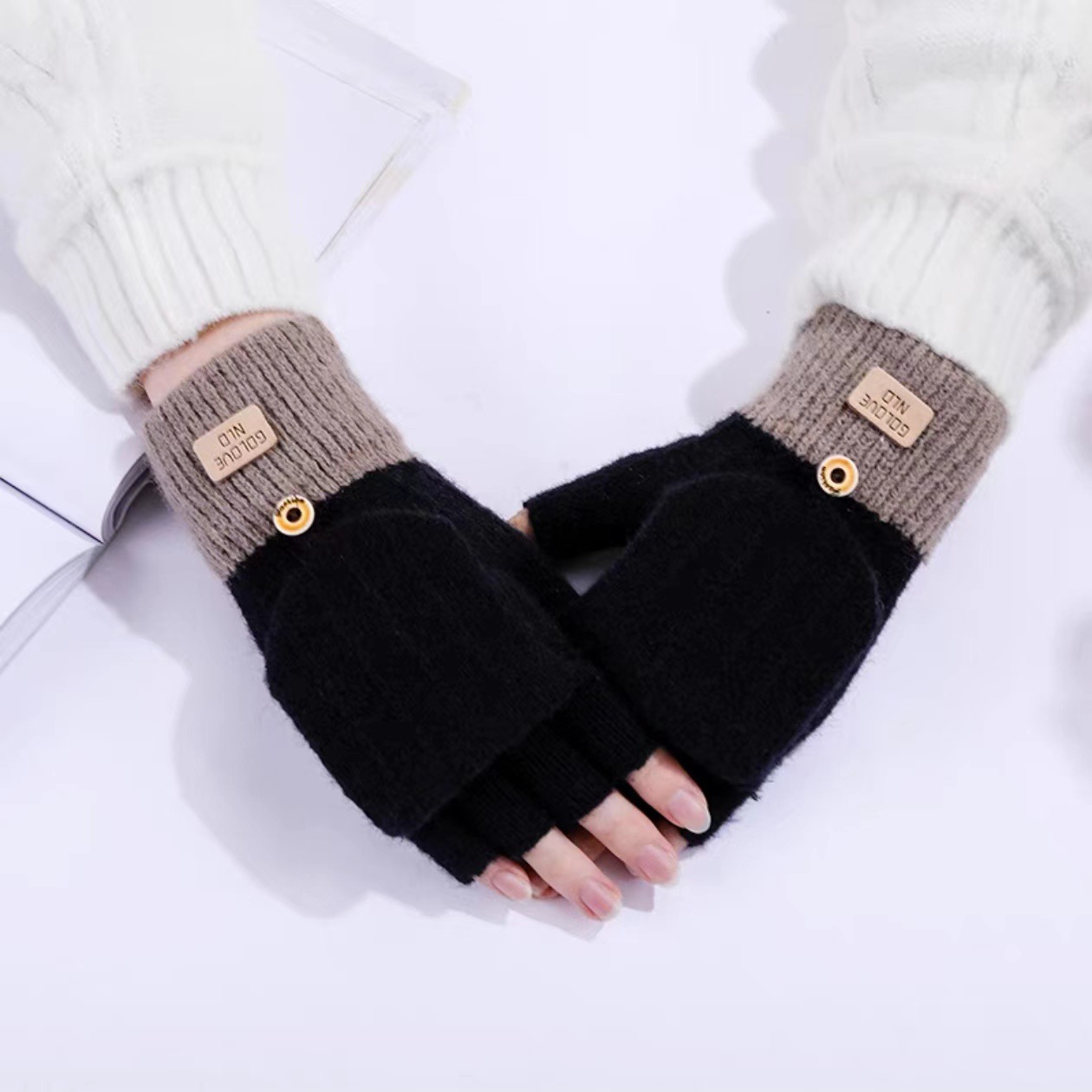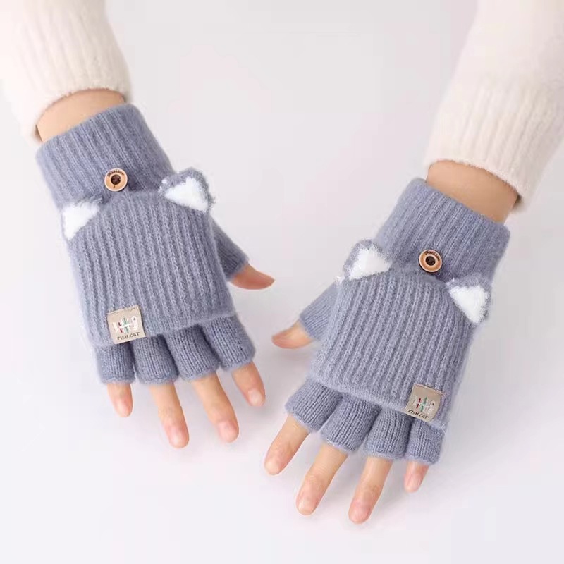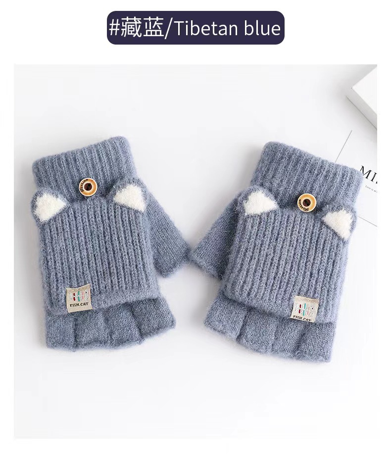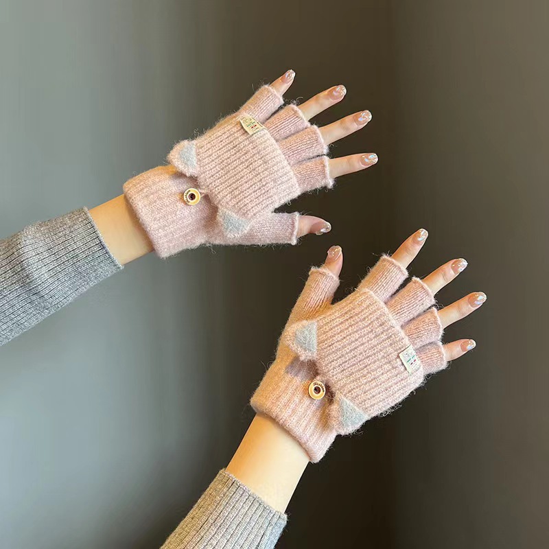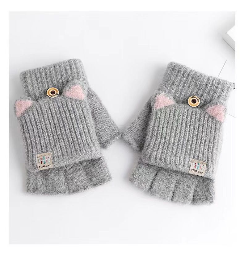 플립 장갑 여성의 가을과 겨울 패션 학생 귀여운 따뜻한 반 손가락 장갑 어린이 장갑 니트 장갑 도매