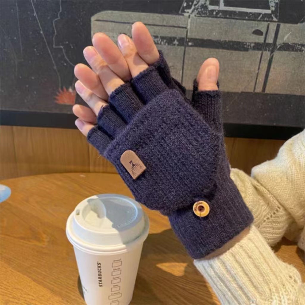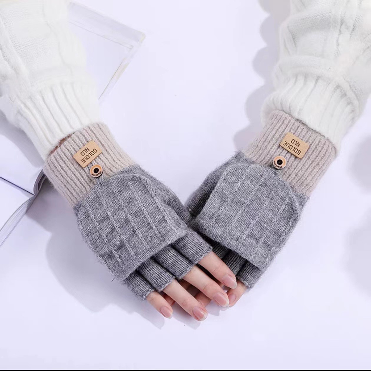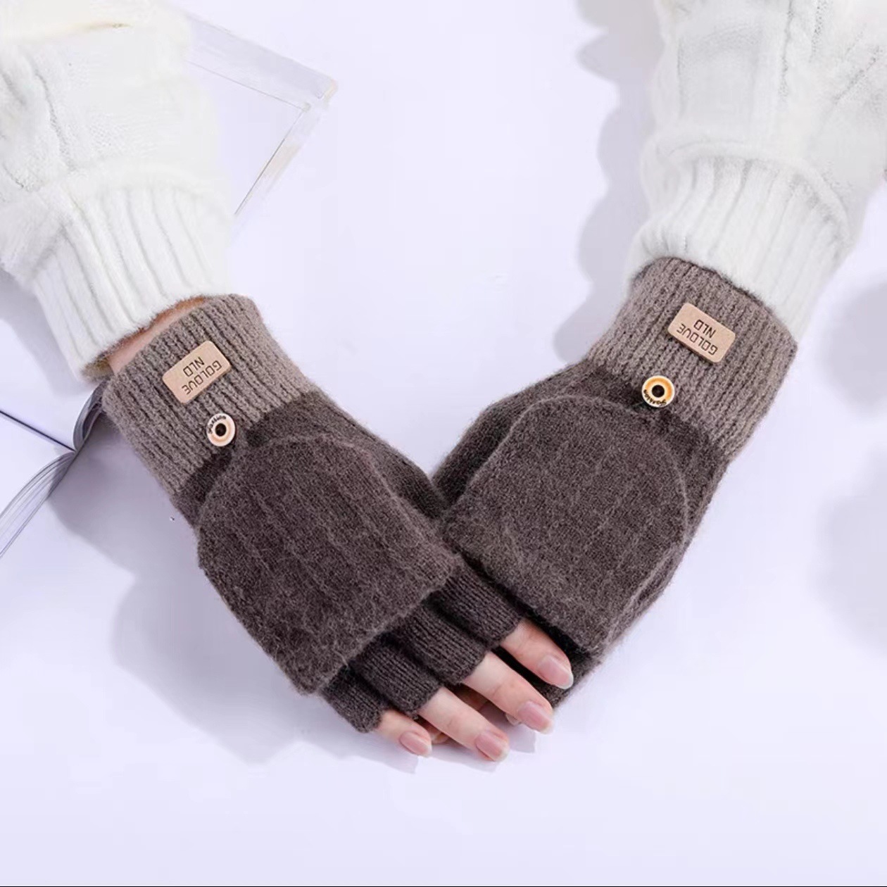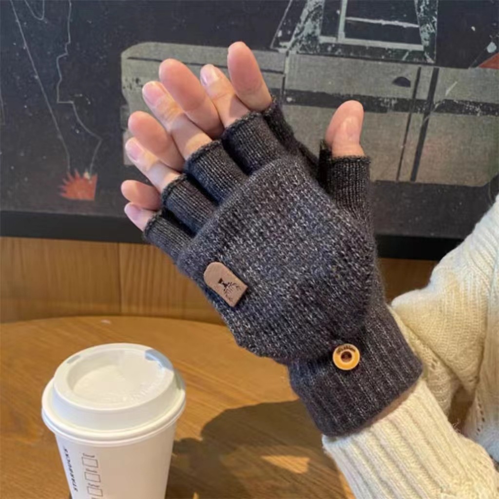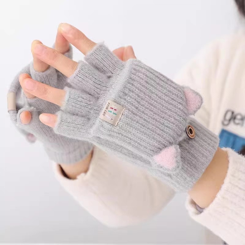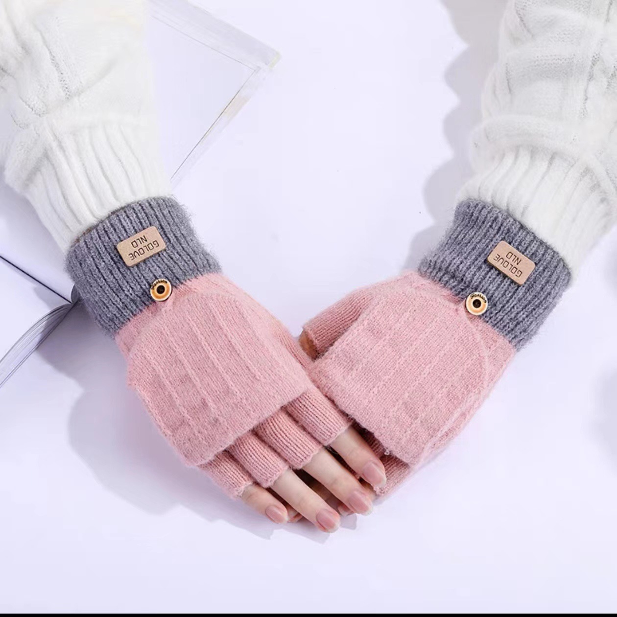 플립 장갑 여성의 가을과 겨울 패션 학생 귀여운 따뜻한 반 손가락 장갑 어린이 장갑 니트 장갑 도매