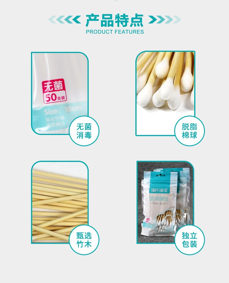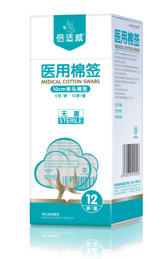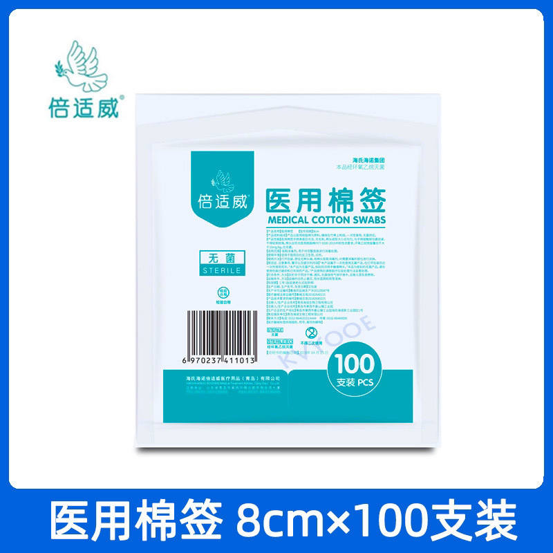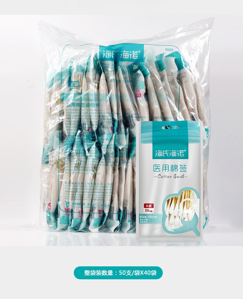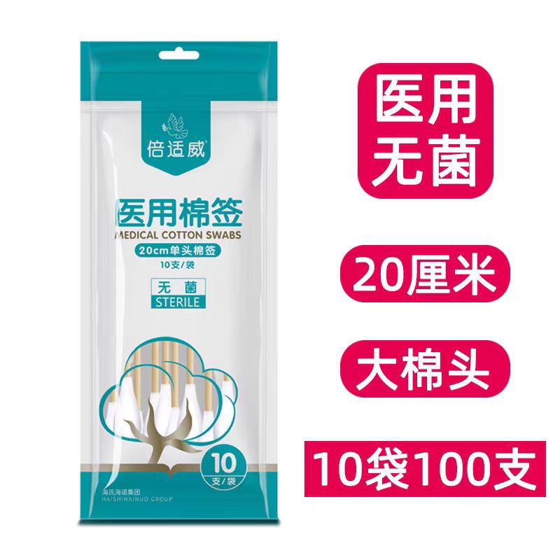 Heinold 의료 무균 면봉 50 대형 헤드 가정용 단일 헤드 10cm 무균 자체 밀봉 가방 의료 화장품 면화스토어 가기