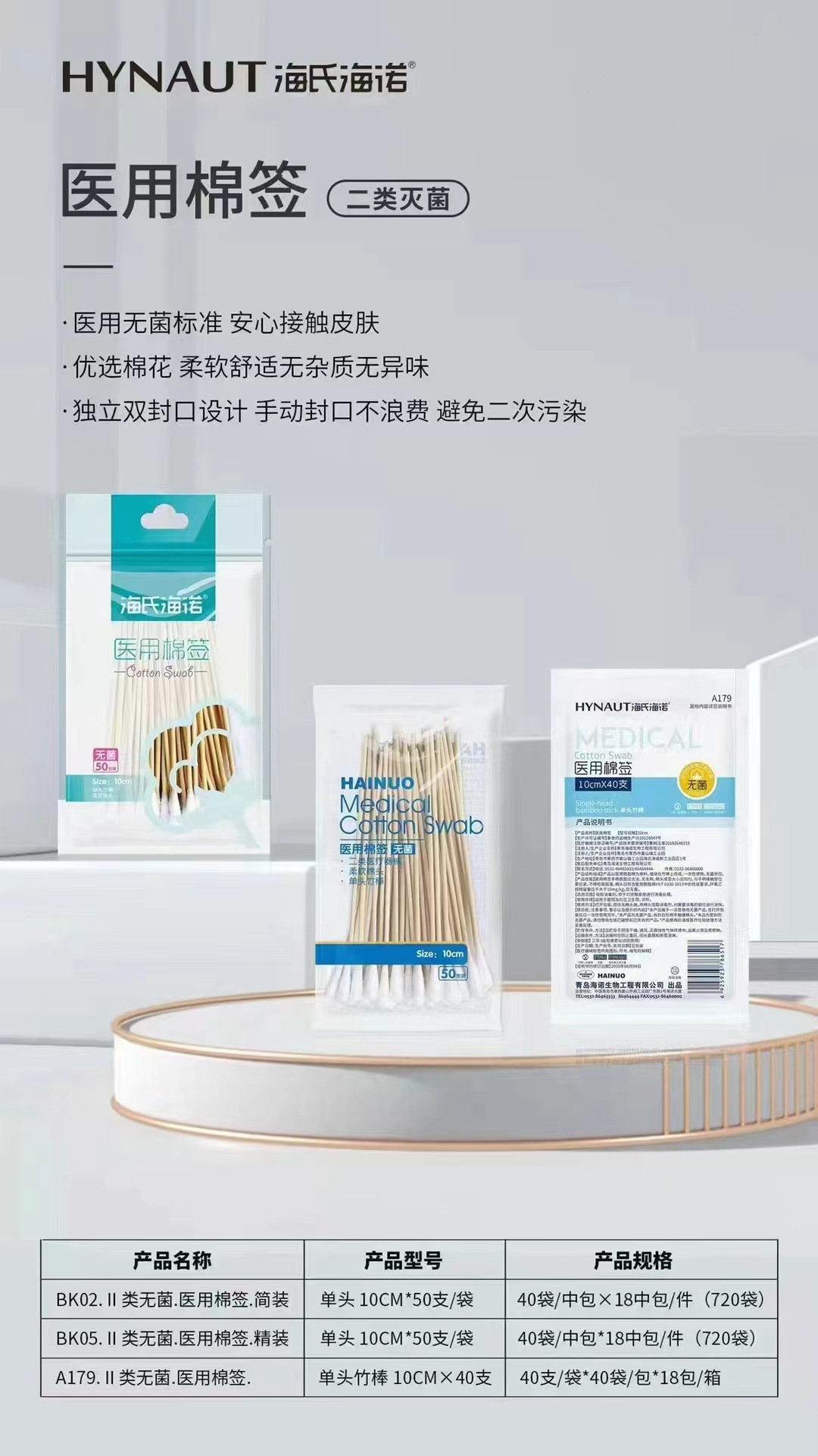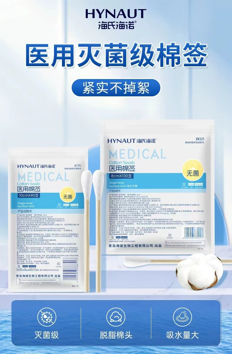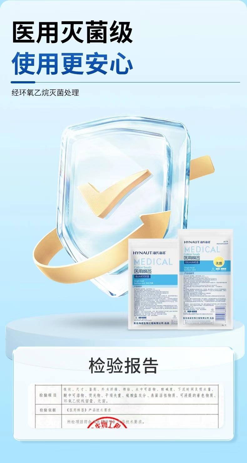 Heinold 의료 무균 면봉 50 대형 헤드 가정용 단일 헤드 10cm 무균 자체 밀봉 가방 의료 화장품 면화스토어 가기