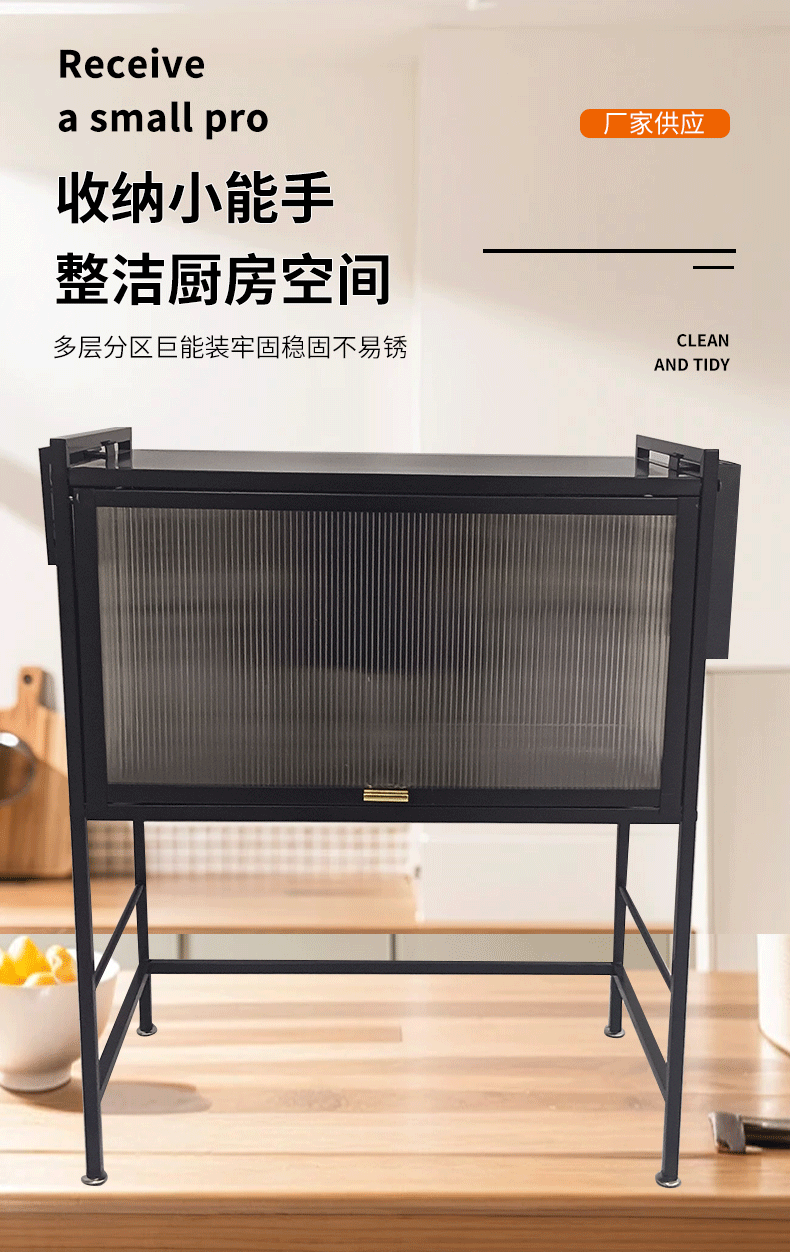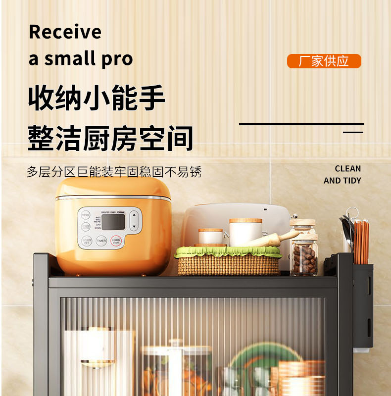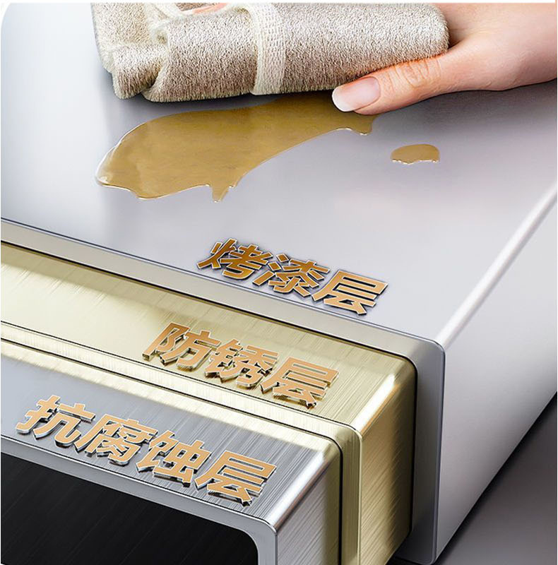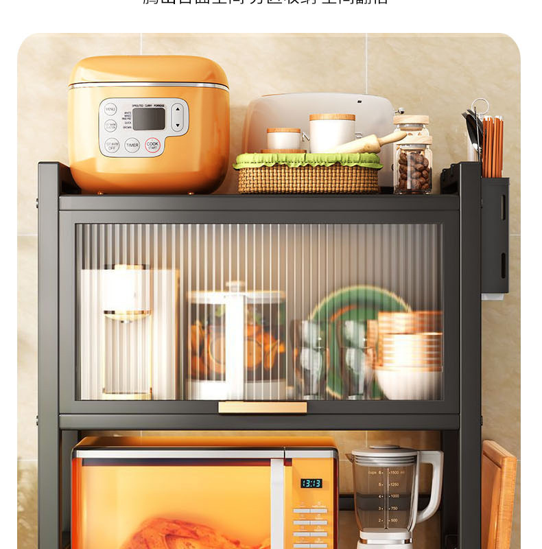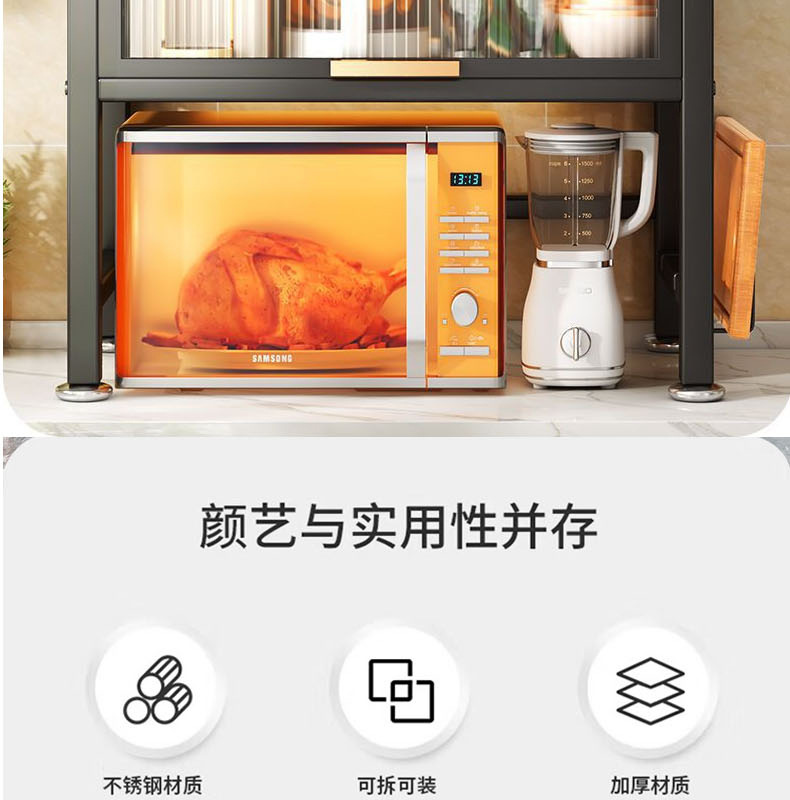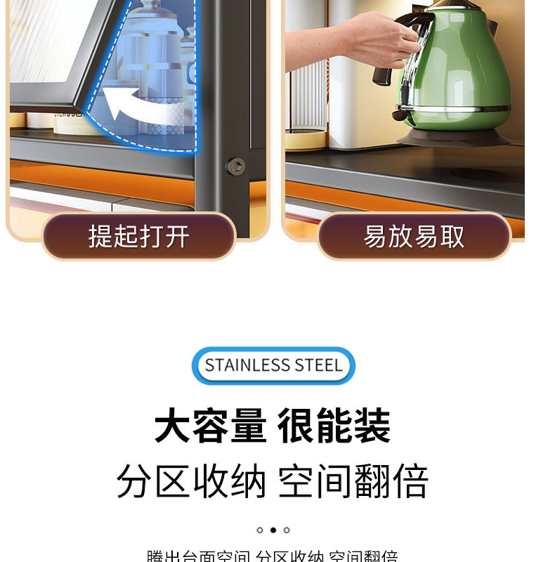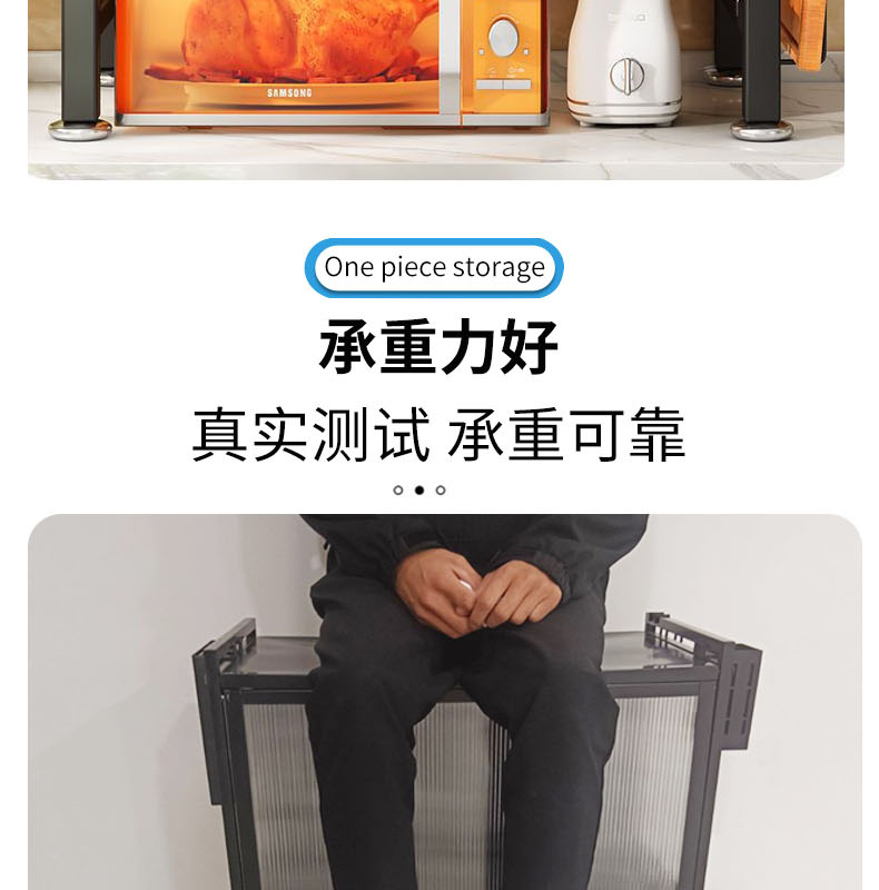 定制家用厨房台面微波炉置物架抽屉式储物柜碗碟餐具防尘收纳架