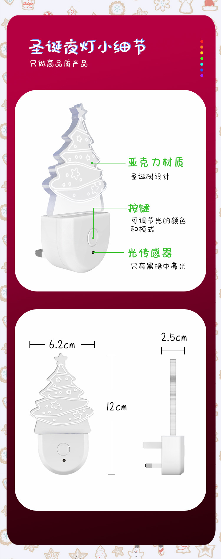 새로운 크리스마스 조명 플러그인 야간 조명 다채로운 변환 분위기 조명 감지 유도 국경 부티크 사용자 정의 패턴