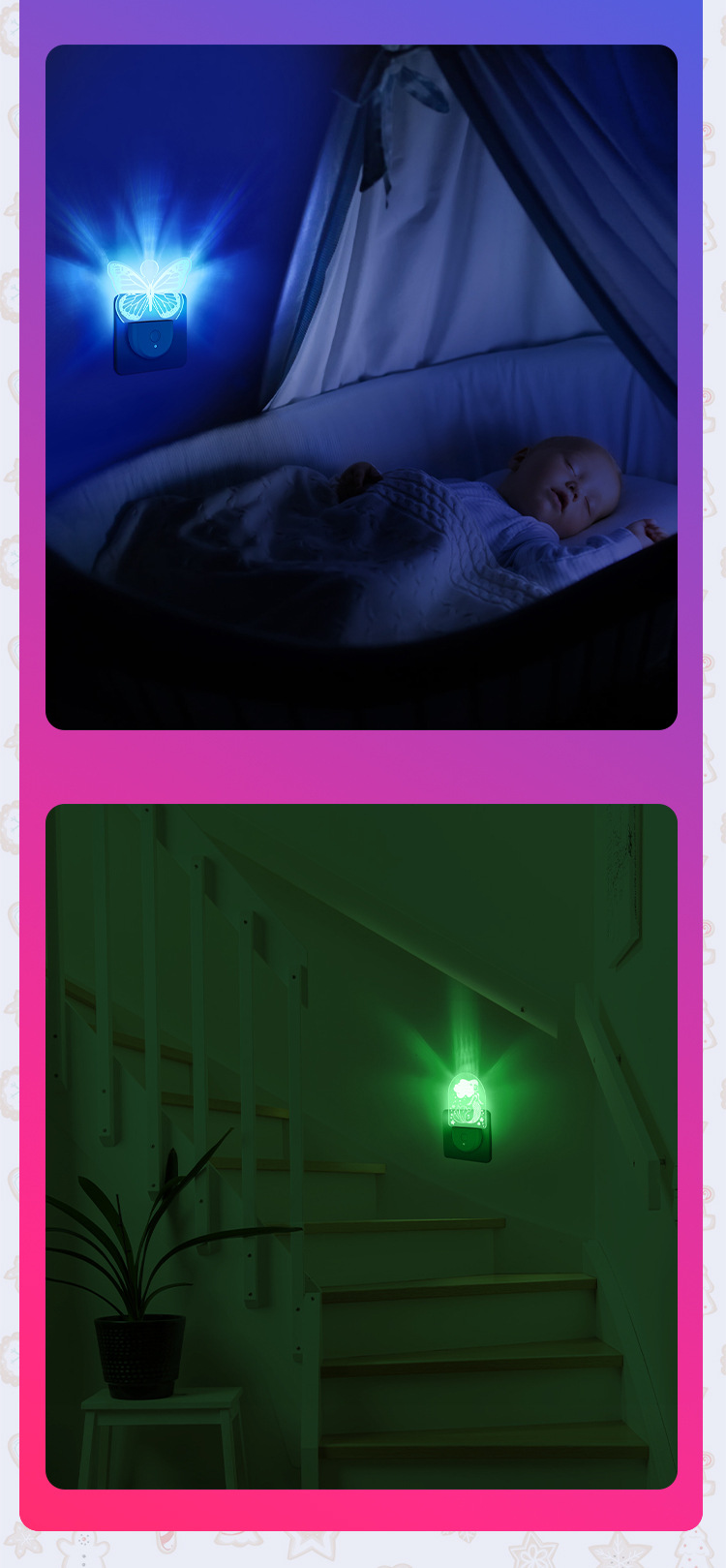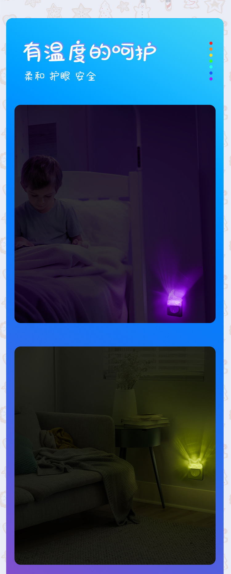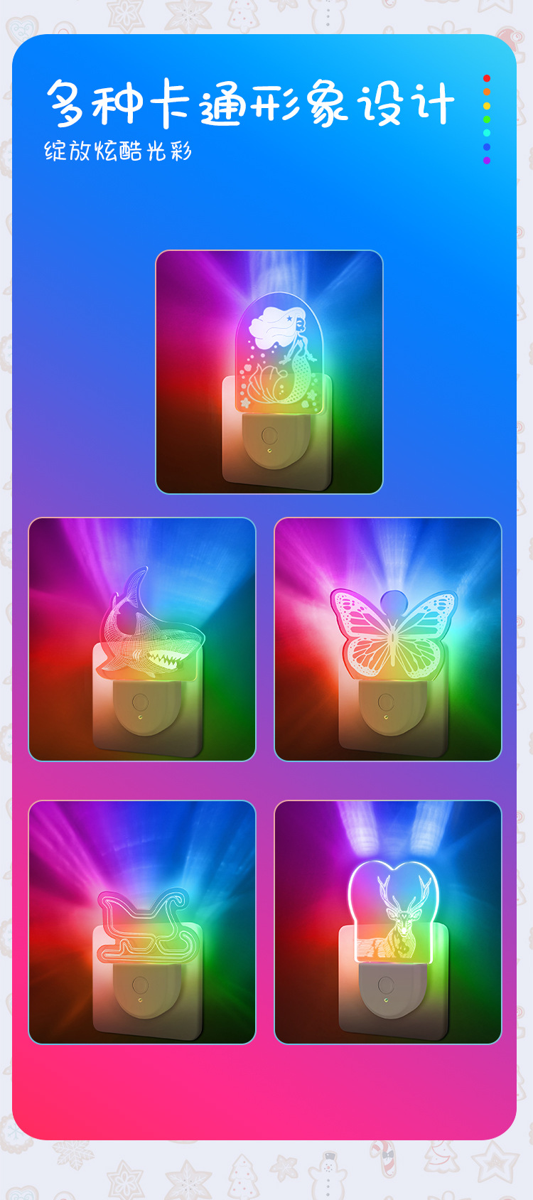 새로운 크리스마스 조명 플러그인 야간 조명 다채로운 변환 분위기 조명 감지 유도 국경 부티크 사용자 정의 패턴스토어 가기