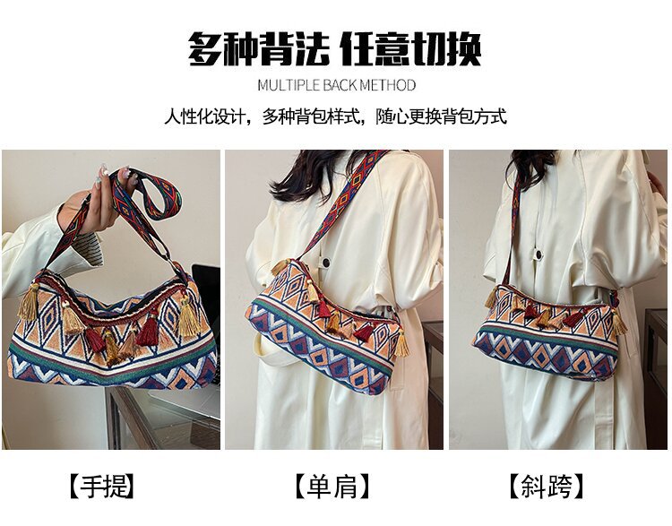 국경 간 독점 여름 새로운 민족 스타일 가방 여성의 트렌디 한 크로스 바디 백 와이드 숄더 스트랩 여성 가방 웨스턴 스타일 술 버킷 백