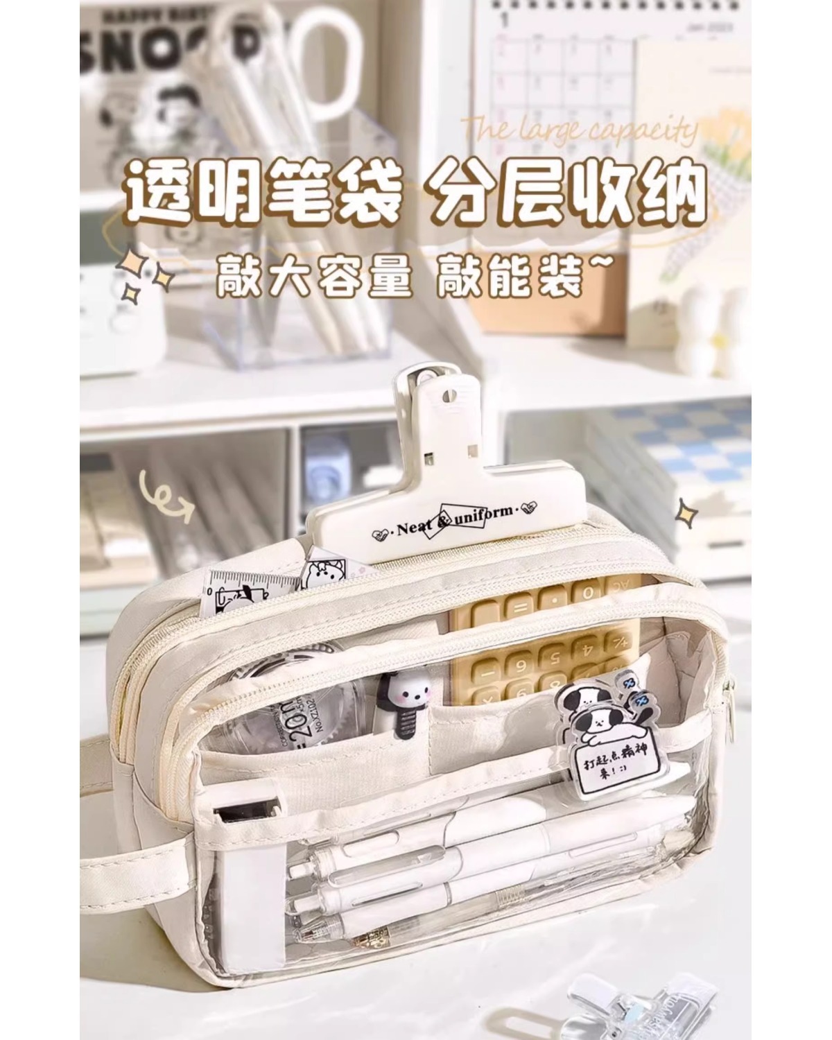 여학생을위한 5 층 대용량 투명 연필 케이스 2023 여중학생을위한 특수 연필 케이스스토어 가기