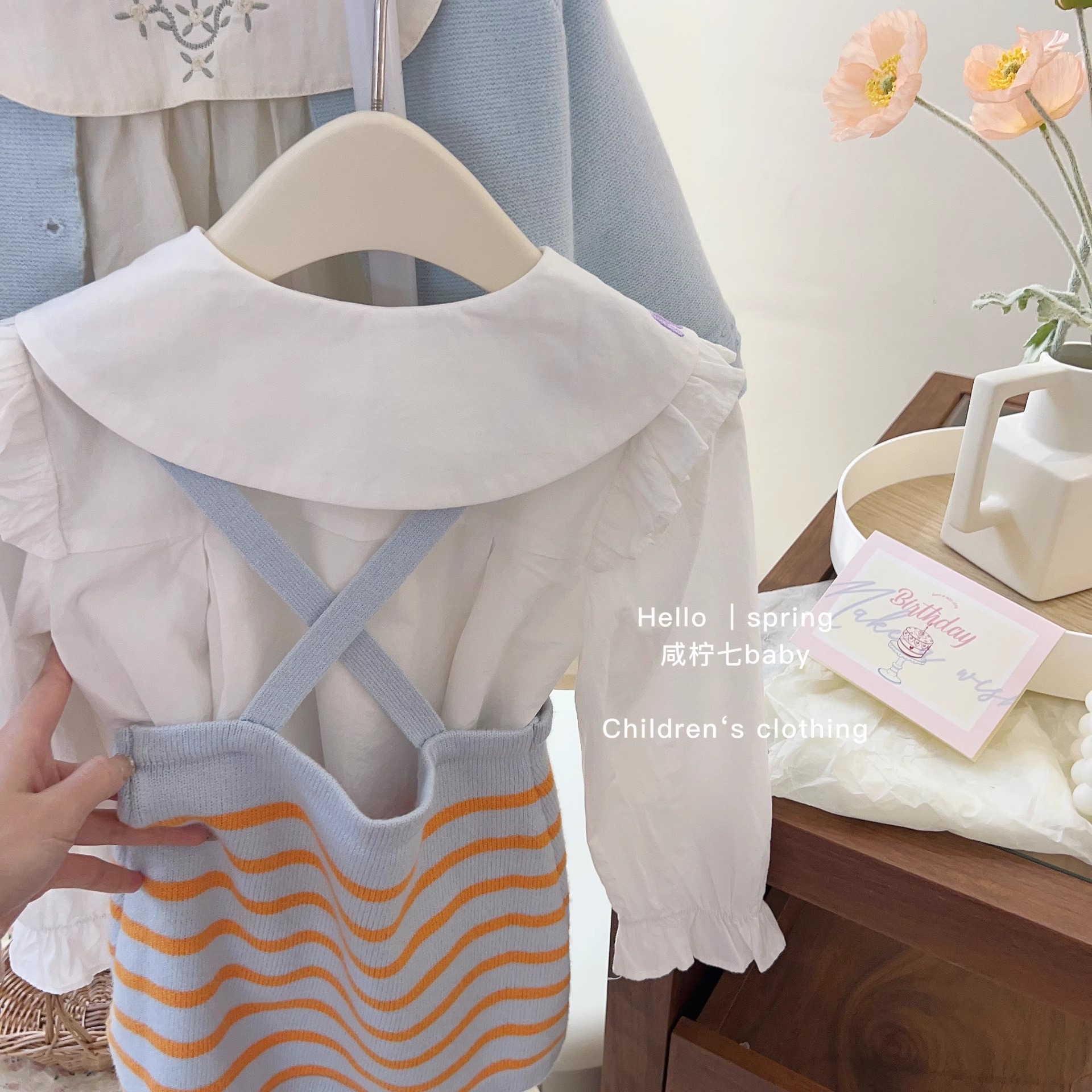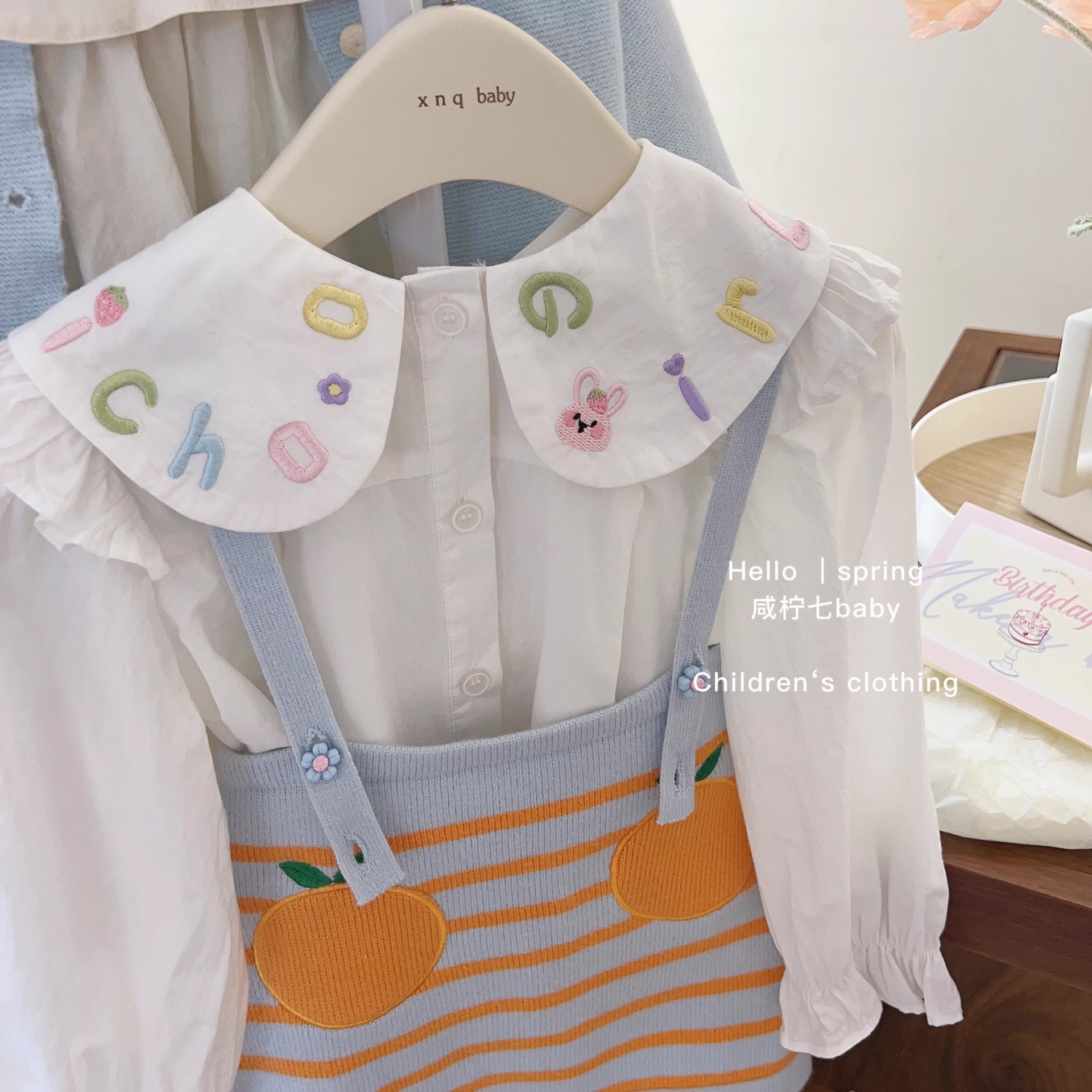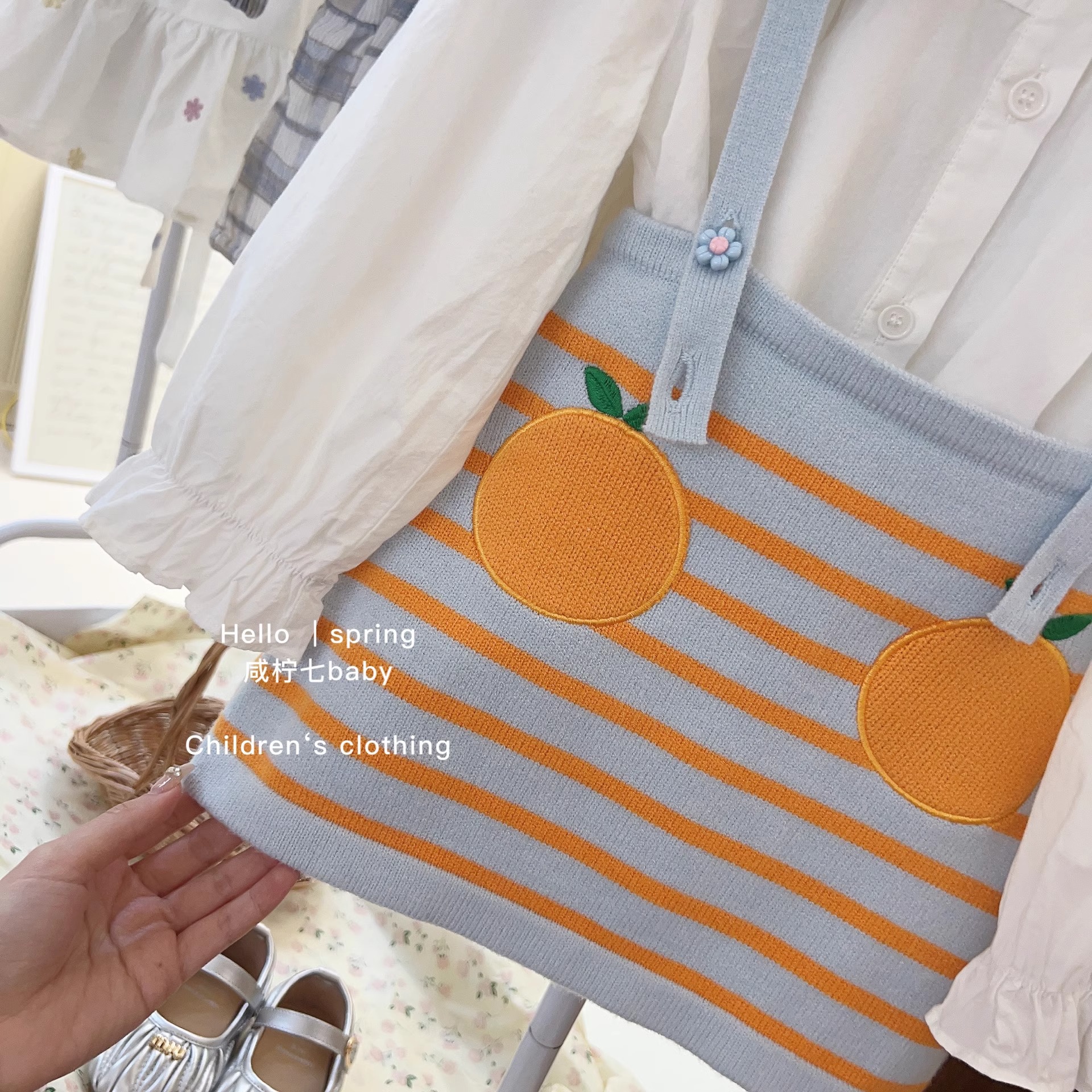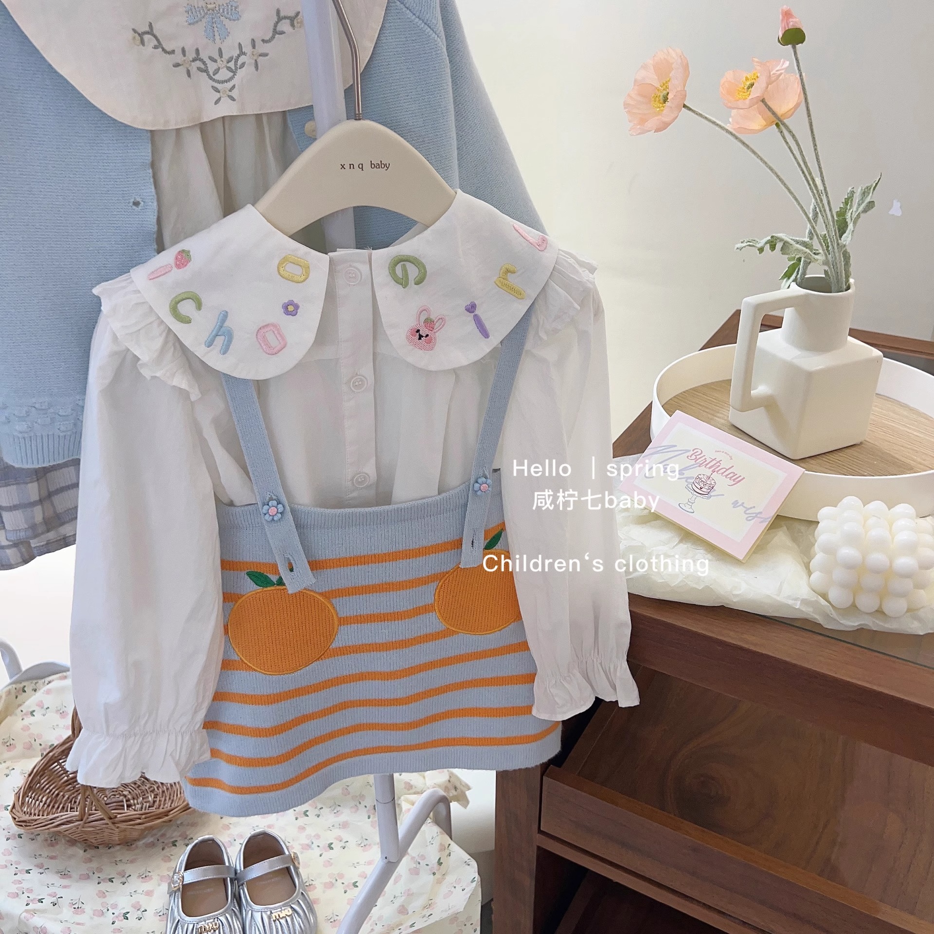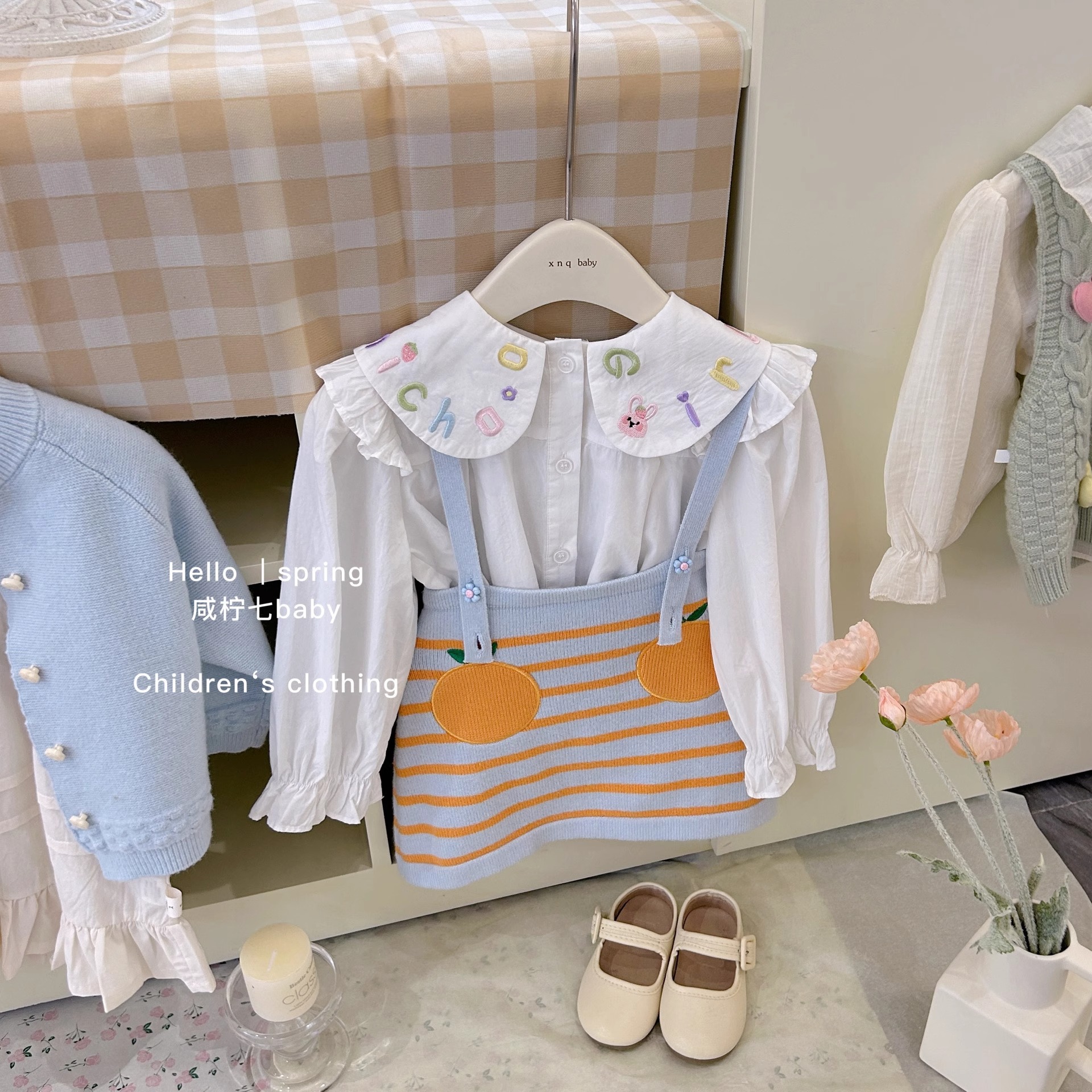 가을 새 소녀 한국 아동복 여성 아기 인형 셔츠 셔츠 탑 어린이 니트 스트랩 스커트 L55072