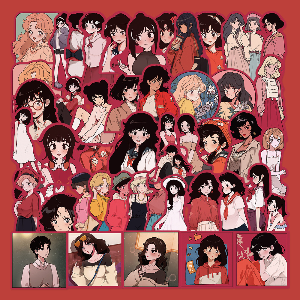 슈퍼 비용 효율적인 96 원래 일본 스타일 쇼와 소녀 스티커 스타일 높은 색상 값 주변 장식스토어 가기