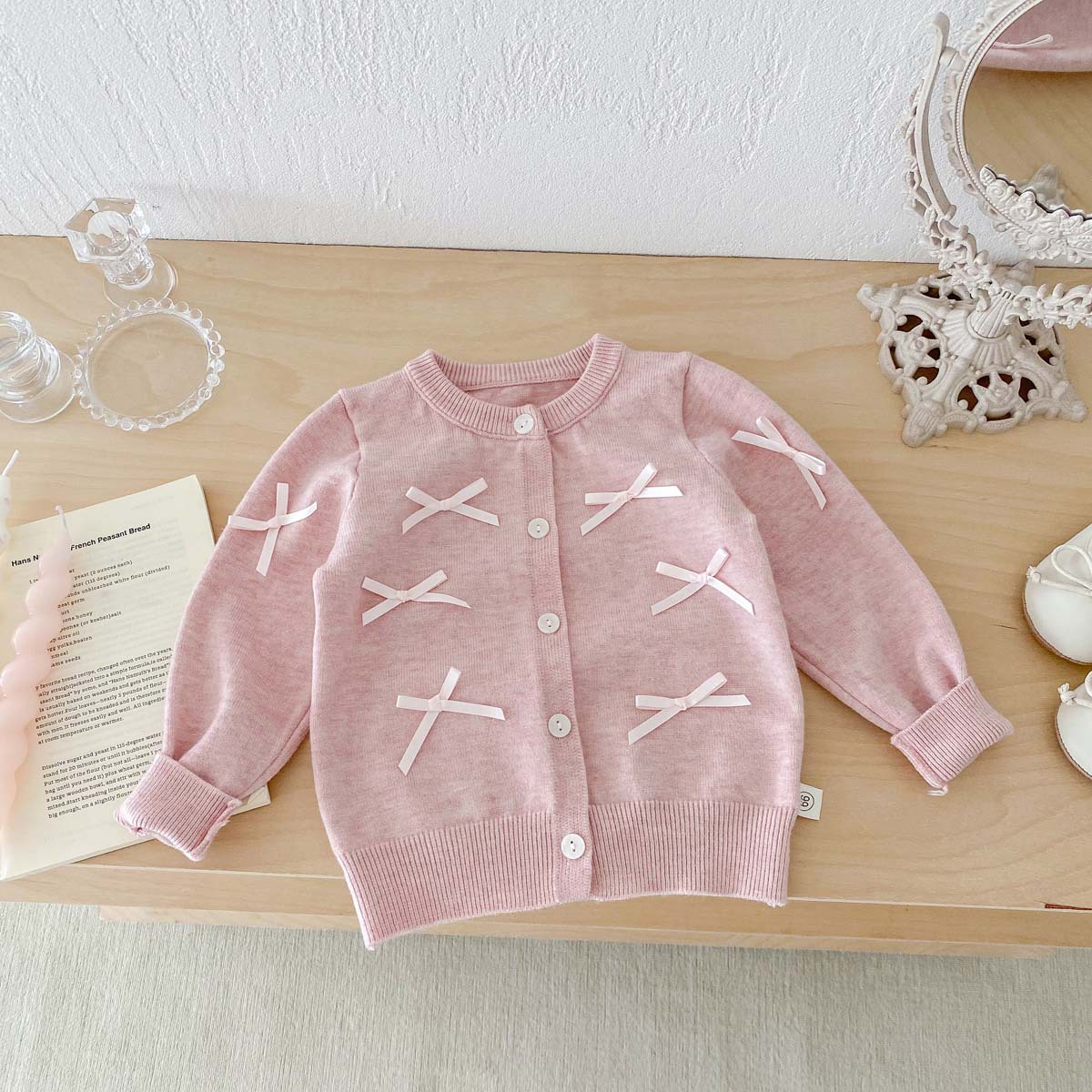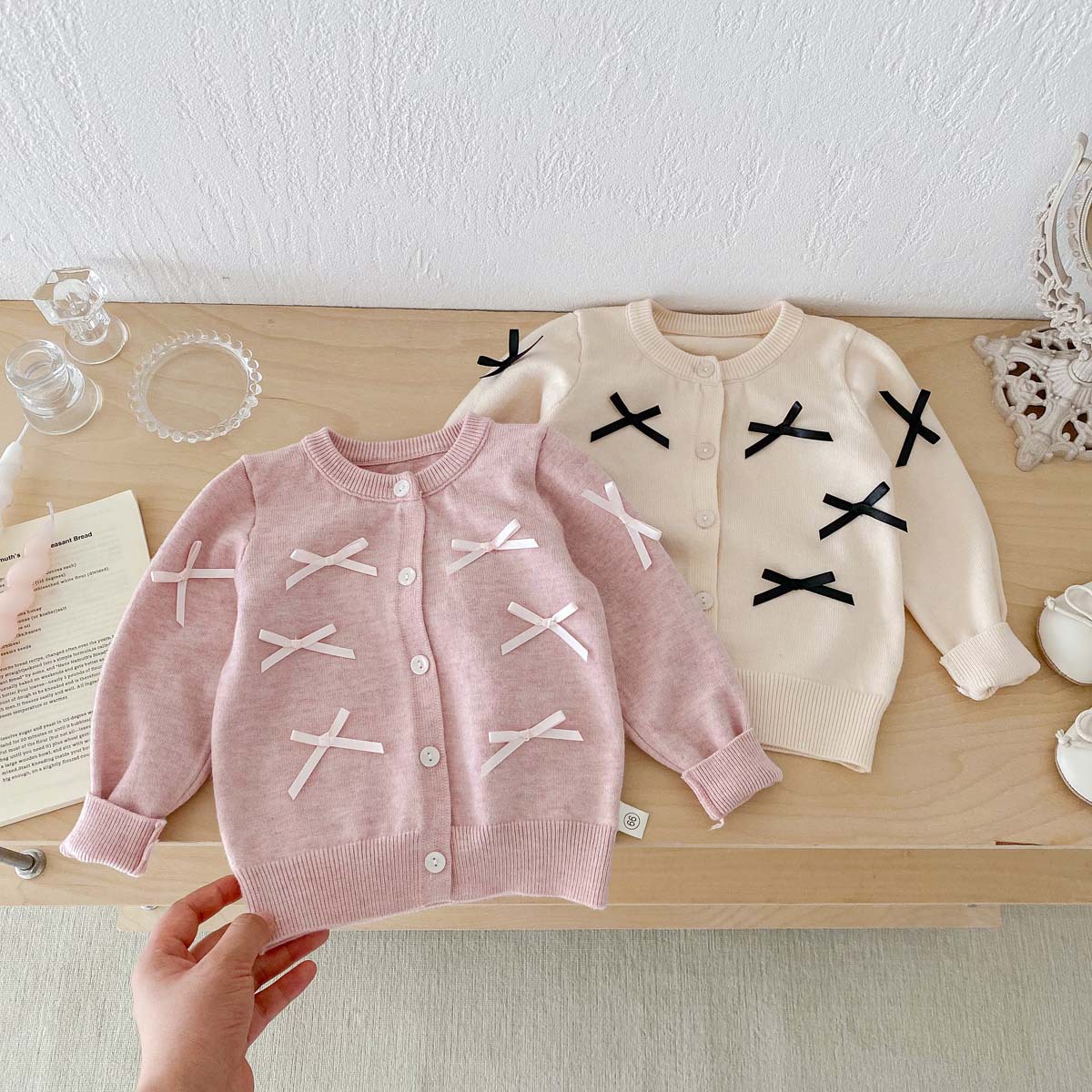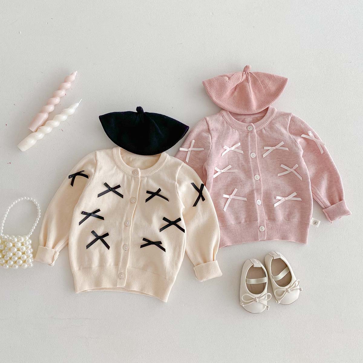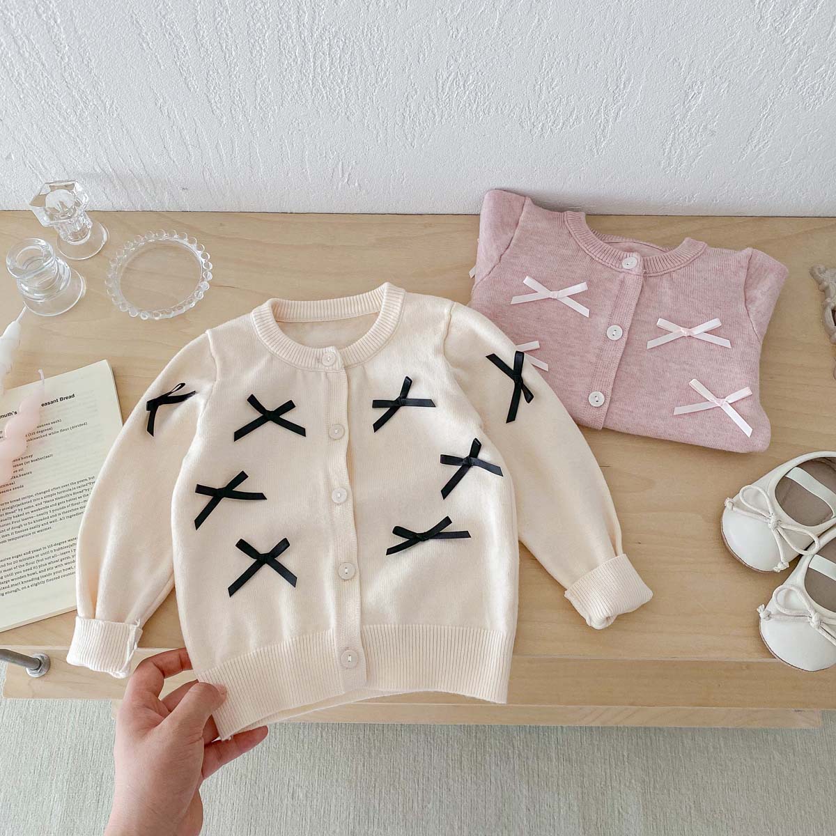 어린이 새 스웨터 달콤한 활 탑 아기 소녀 가을 긴 소매 니트 한국 카디건 재킷