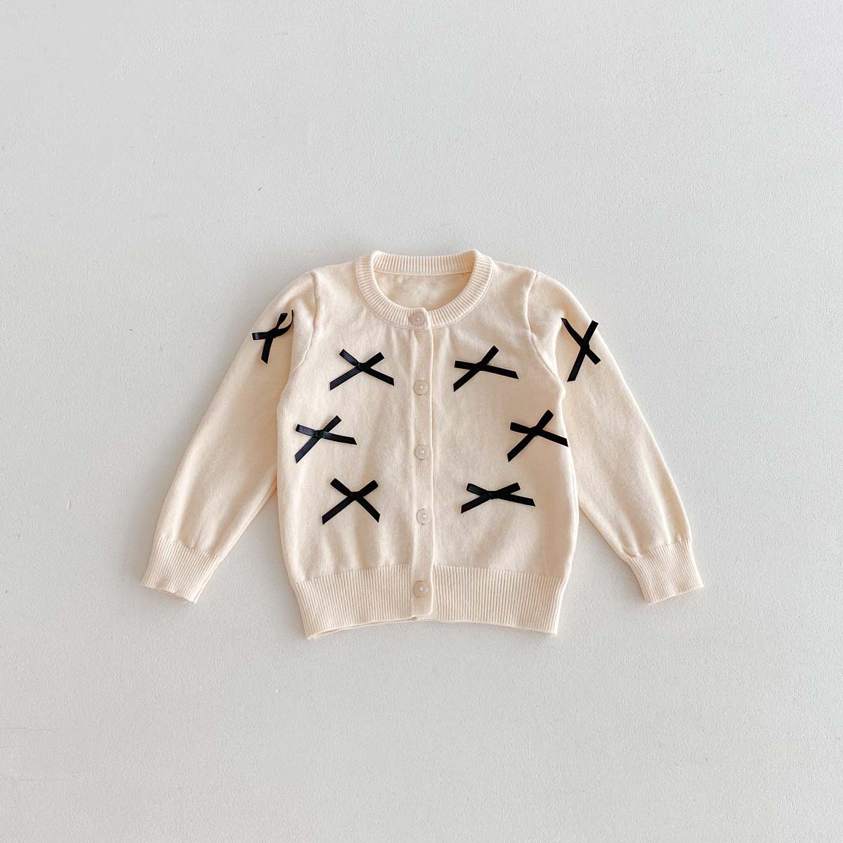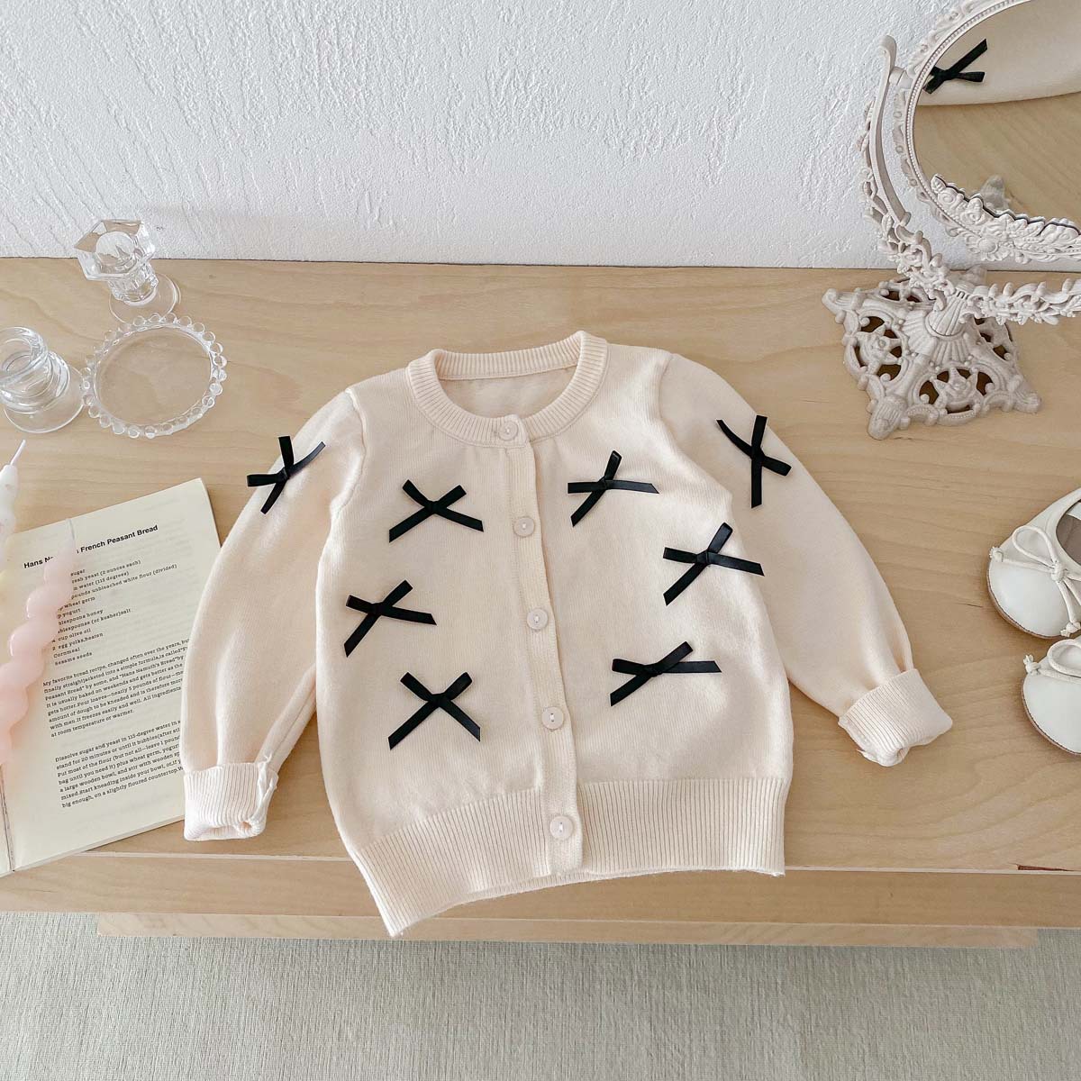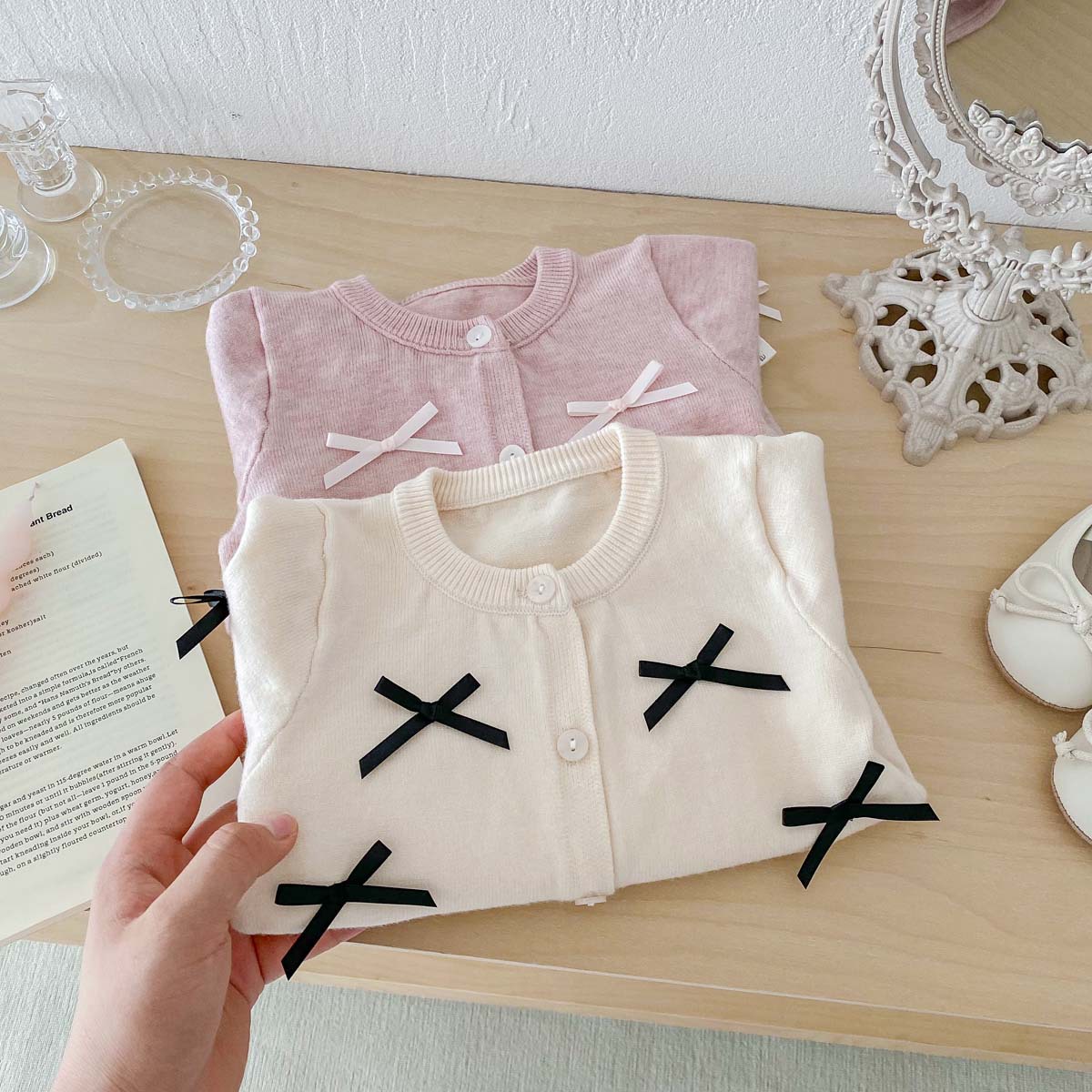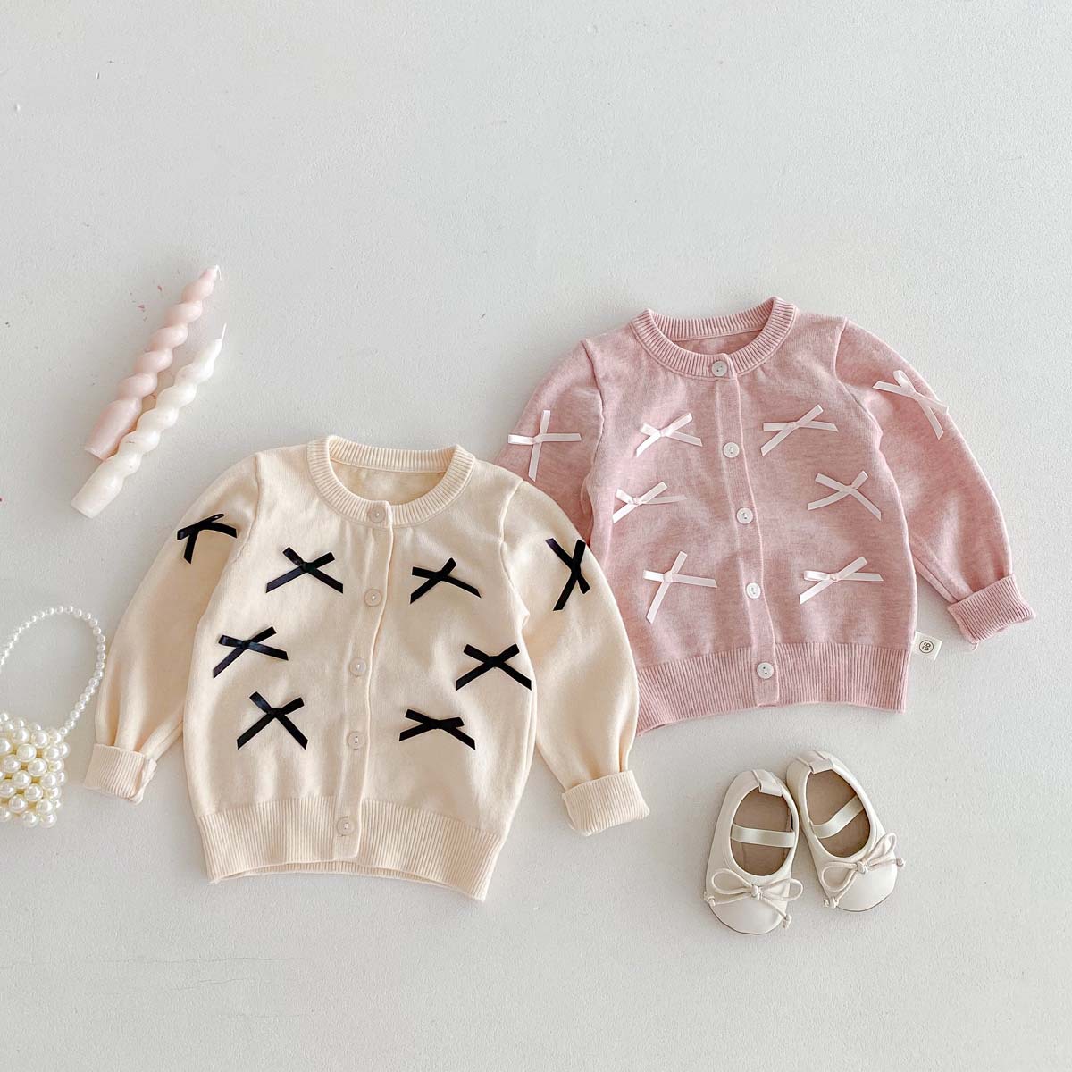 어린이 새 스웨터 달콤한 활 탑 아기 소녀 가을 긴 소매 니트 한국 카디건 재킷