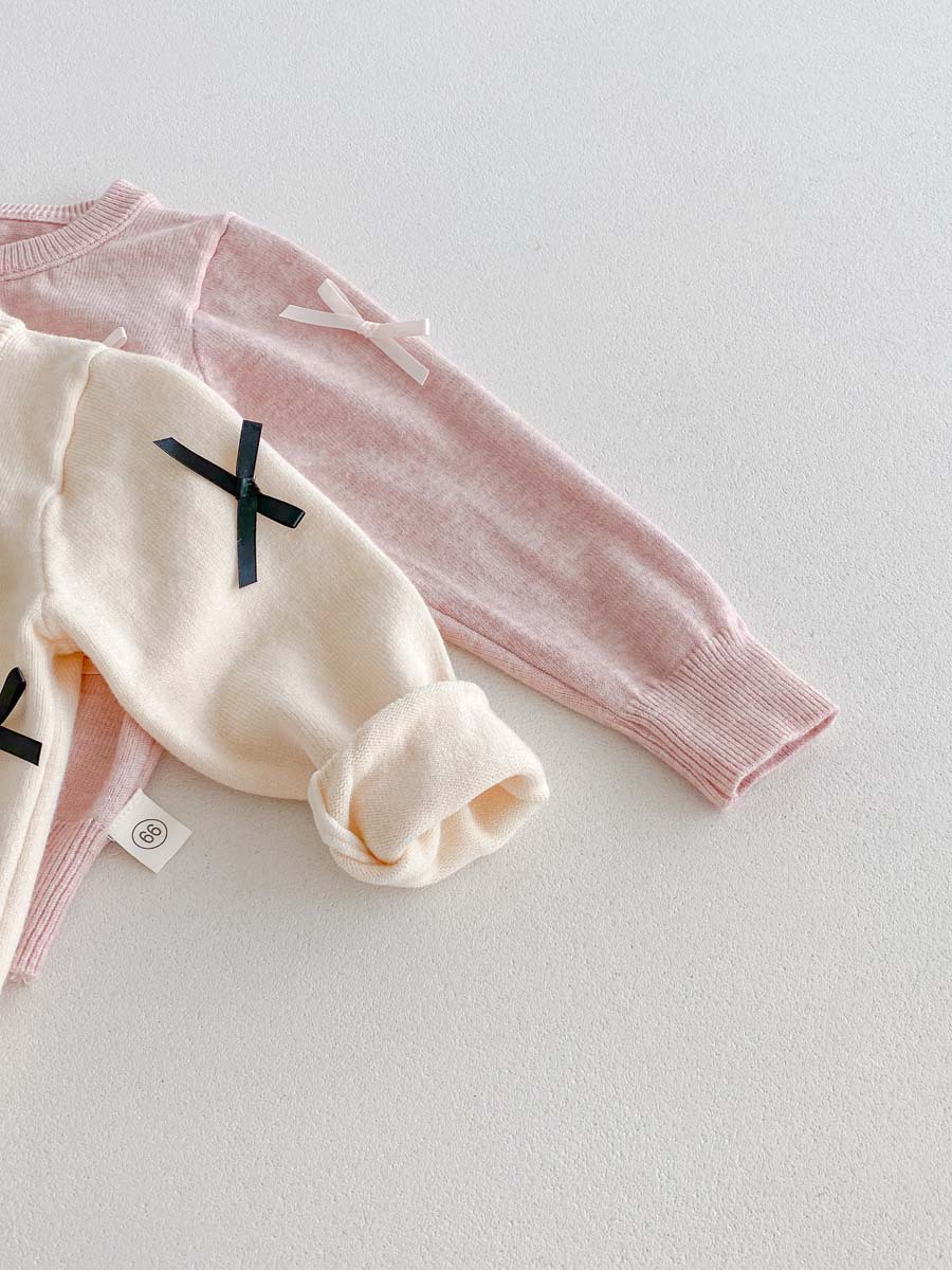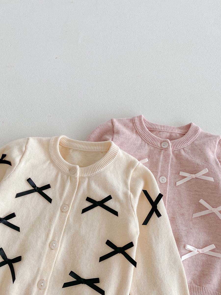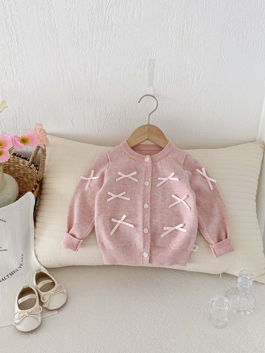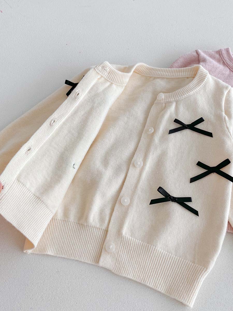 어린이 새 스웨터 달콤한 활 탑 아기 소녀 가을 긴 소매 니트 한국 카디건 재킷
