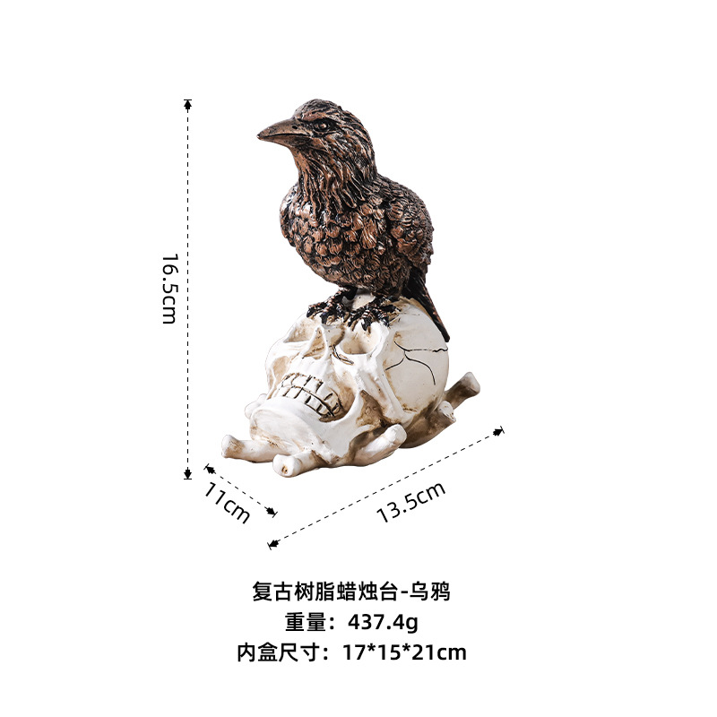 • 레트로 레진 캔들 홀더 - 해골 까마귀