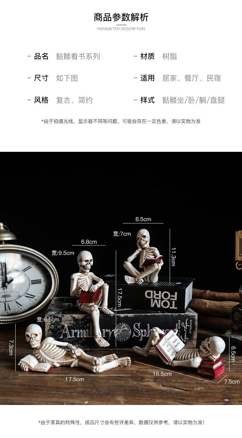 국경 간 새로운 두개골 캐릭터 할로윈 소품 장식 바 유령의 집 챔버 레이아웃 수지 장식품 읽기스토어 가기