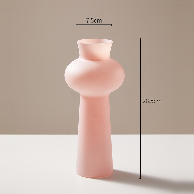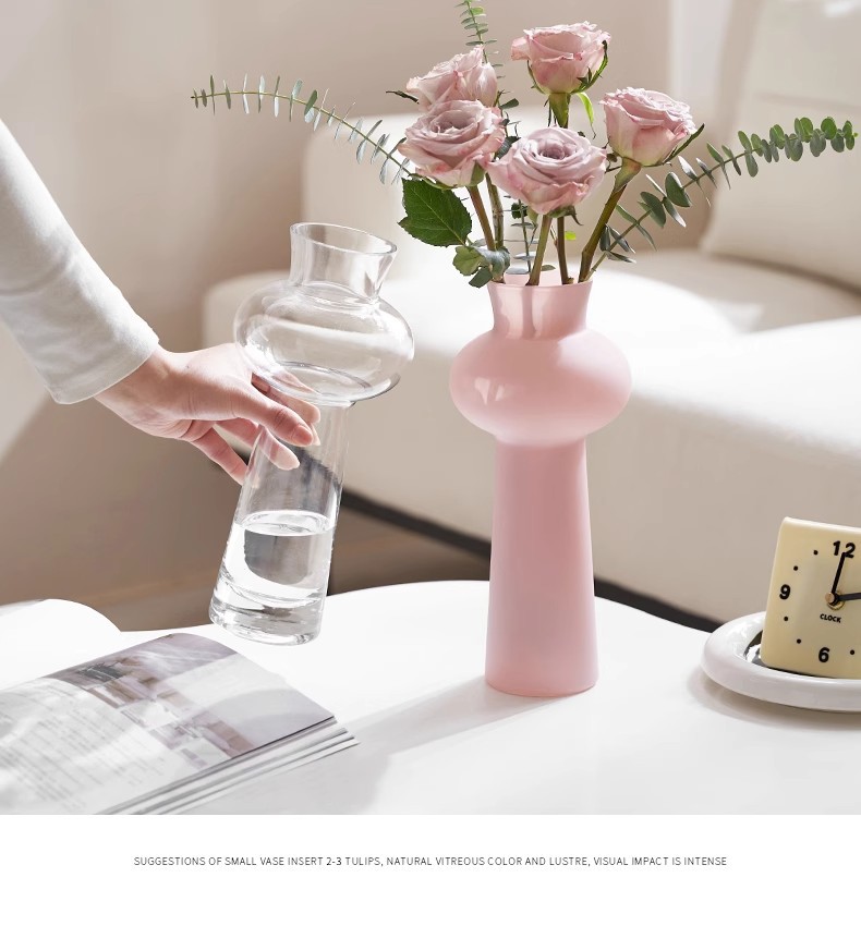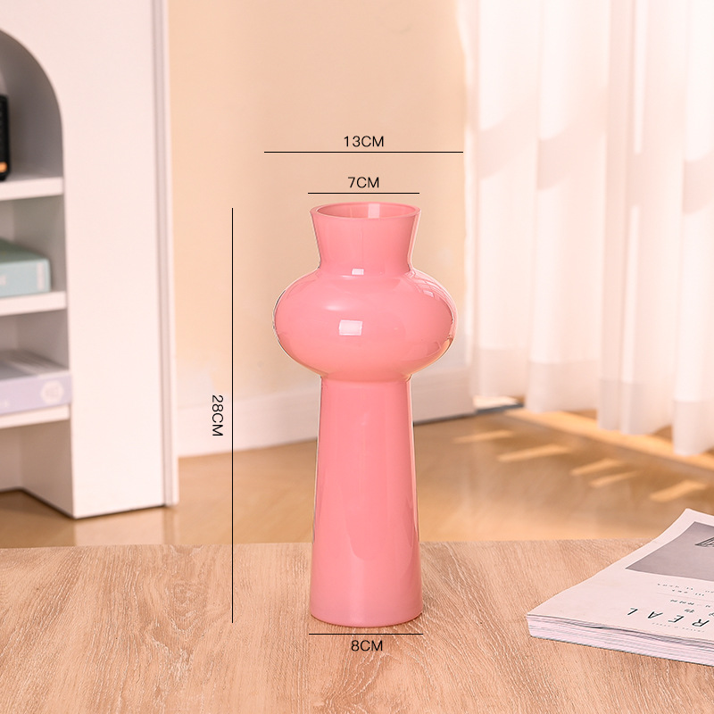 현대 간단한 유리 꽃병 고급 장식품 핑크 거실 꽃 배열 유리 수경 꽃 병 높은 가치스토어 가기