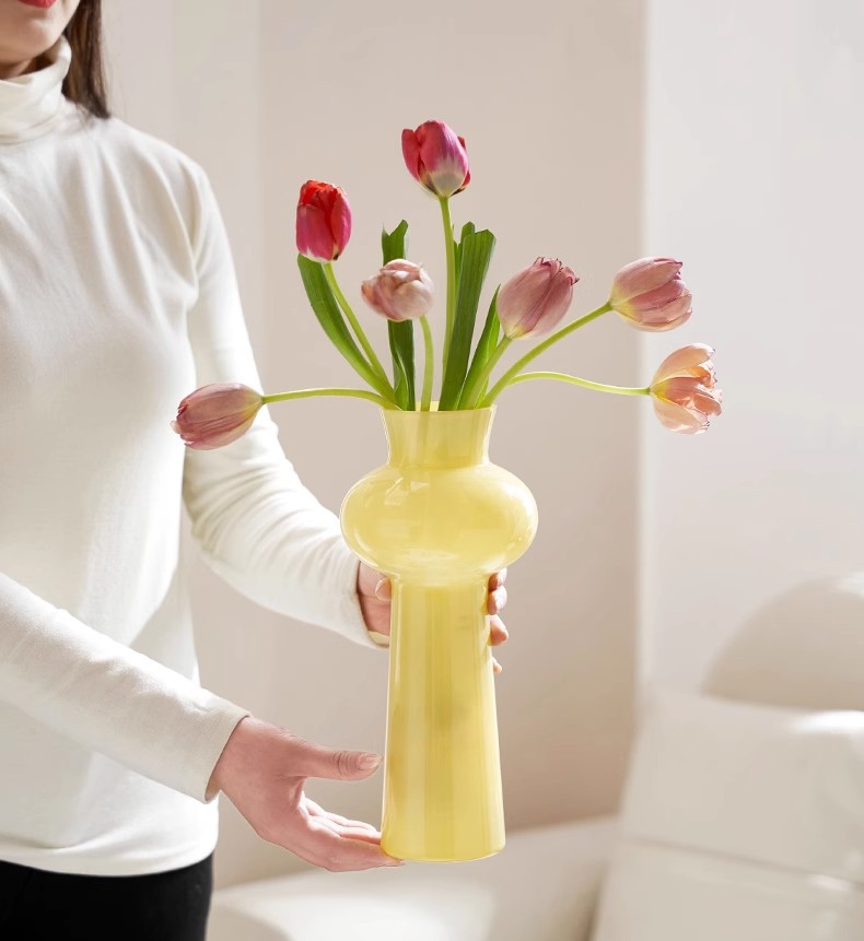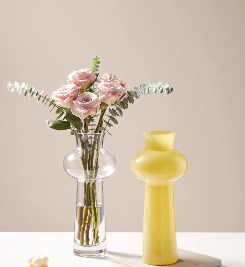 현대 간단한 유리 꽃병 고급 장식품 핑크 거실 꽃 배열 유리 수경 꽃 병 높은 가치