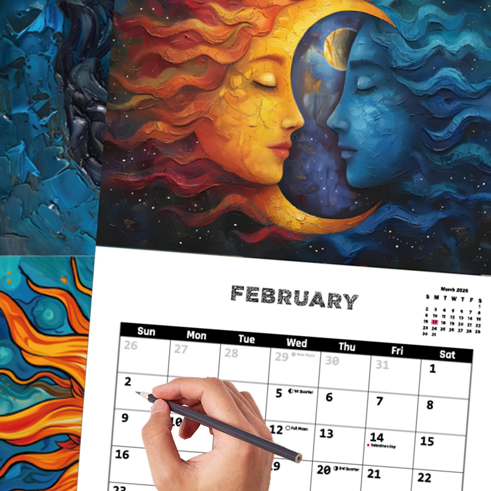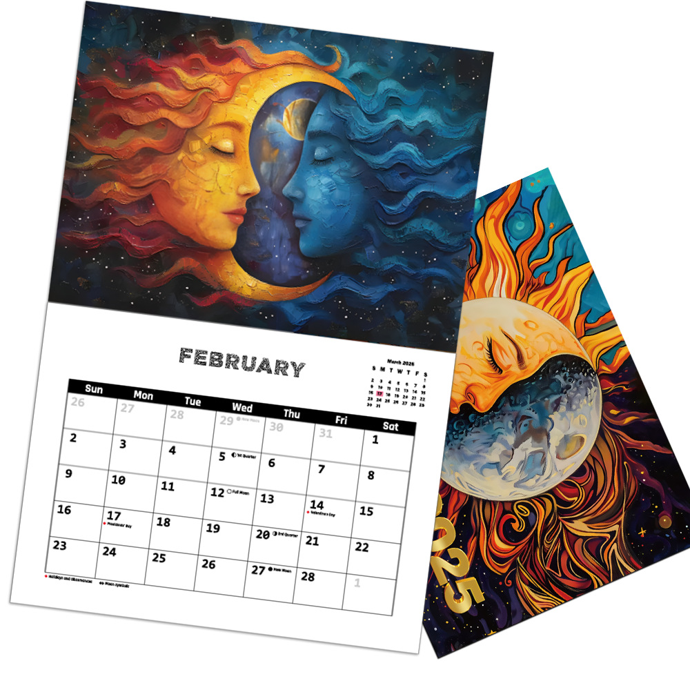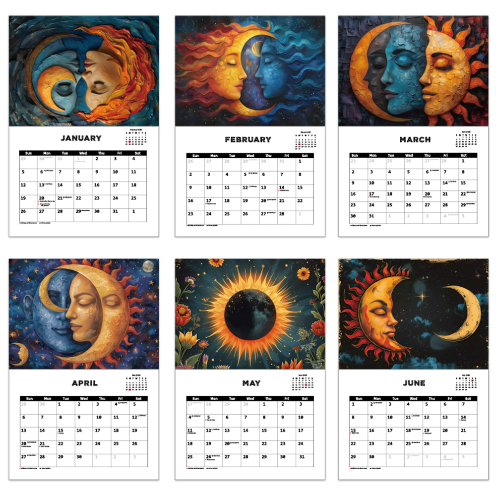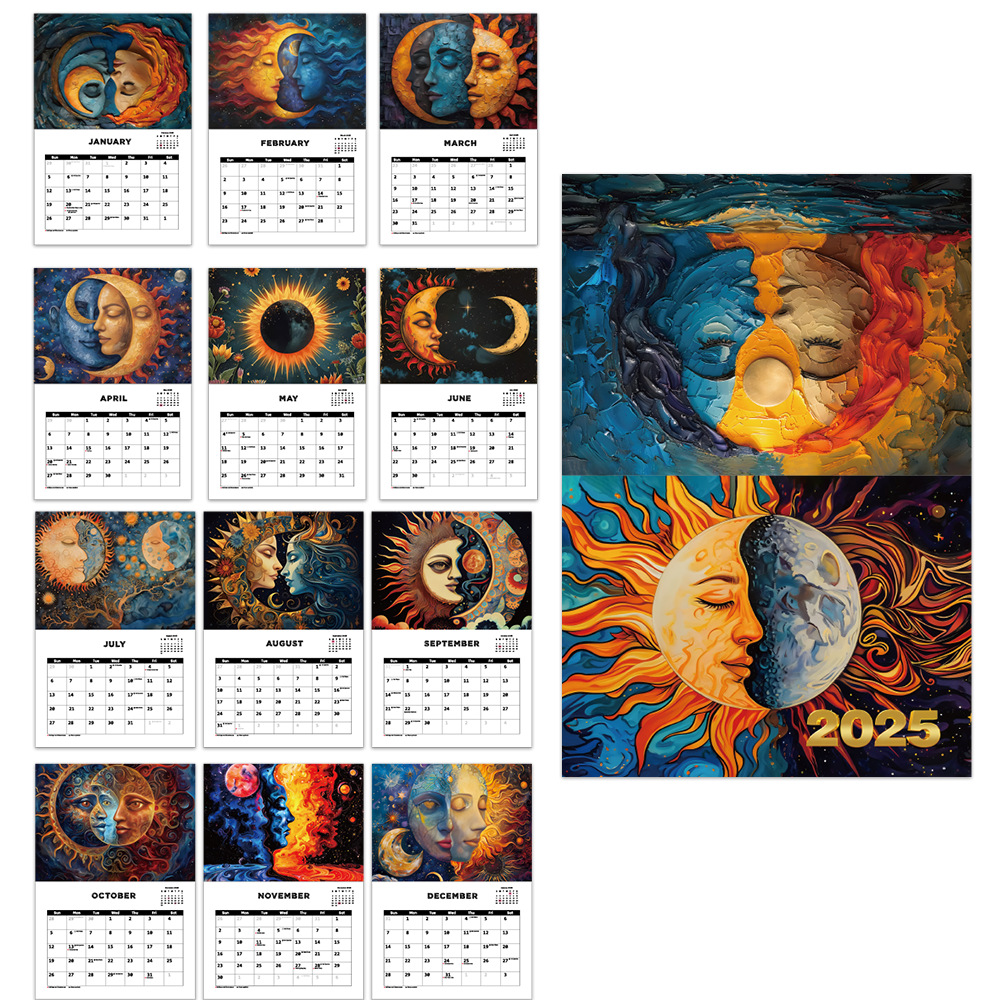 2025 년 태양과 달 이미지 달력 창조적 인 유화 태양 달 이미지 달력 재고스토어 가기