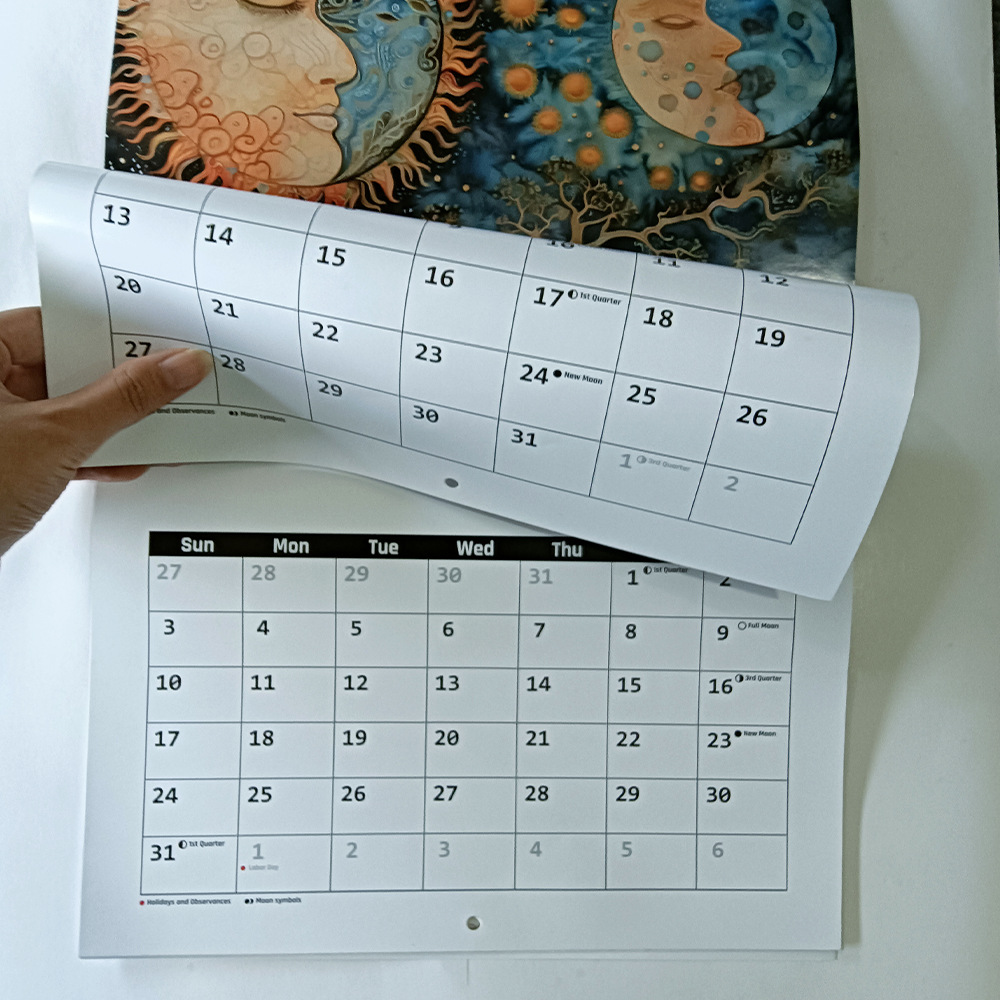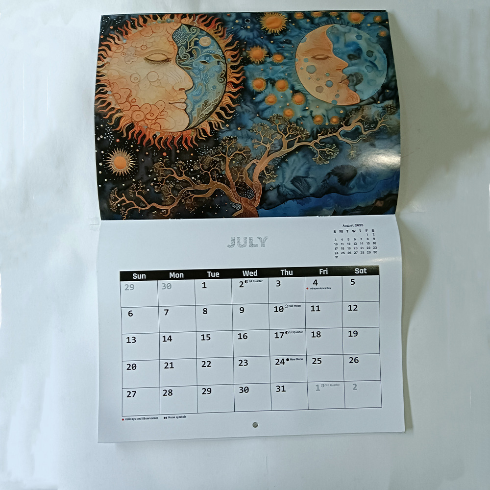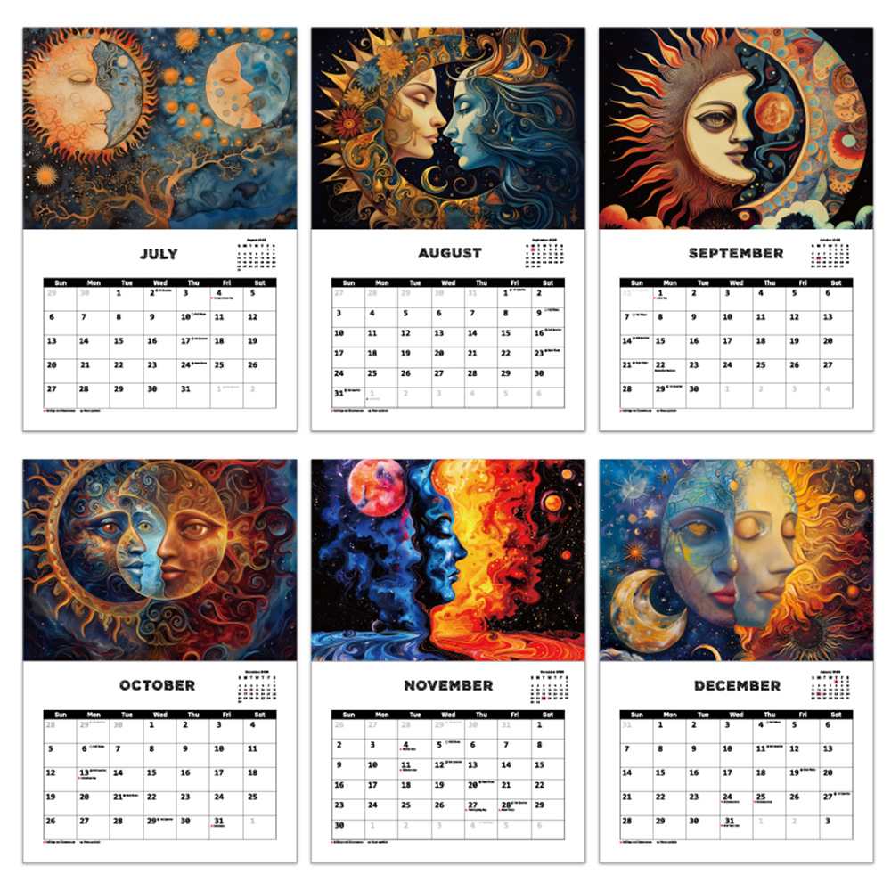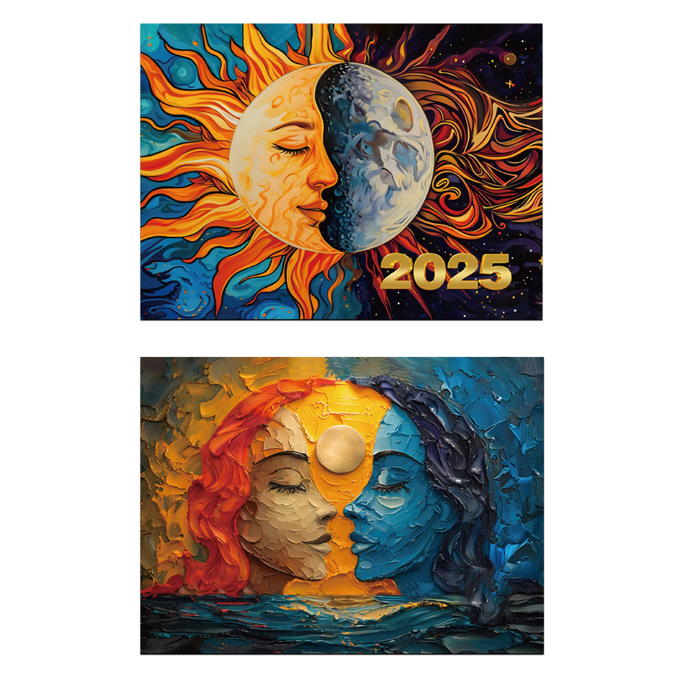 2025 년 태양과 달 이미지 달력 창조적 인 유화 태양 달 이미지 달력 재고스토어 가기