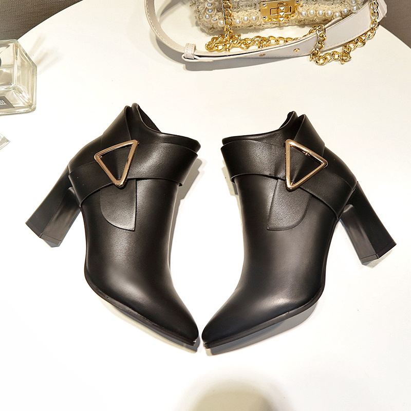 하이힐 한국 여성 부츠 2024 가을/겨울 새로운 포인팅 튜브 금속 장식 사이드 지퍼 두꺼운 힐 부츠 플러스 사이즈 42스토어 가기