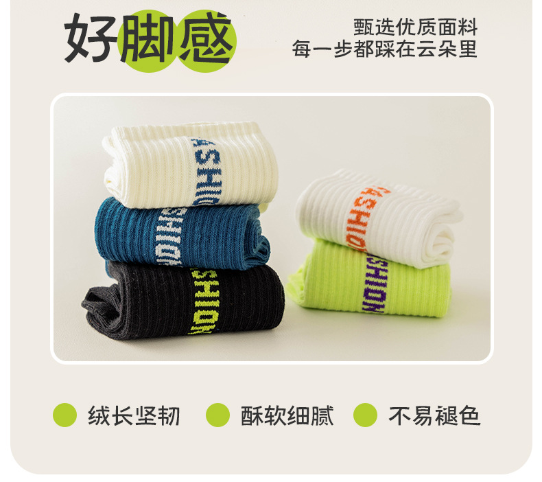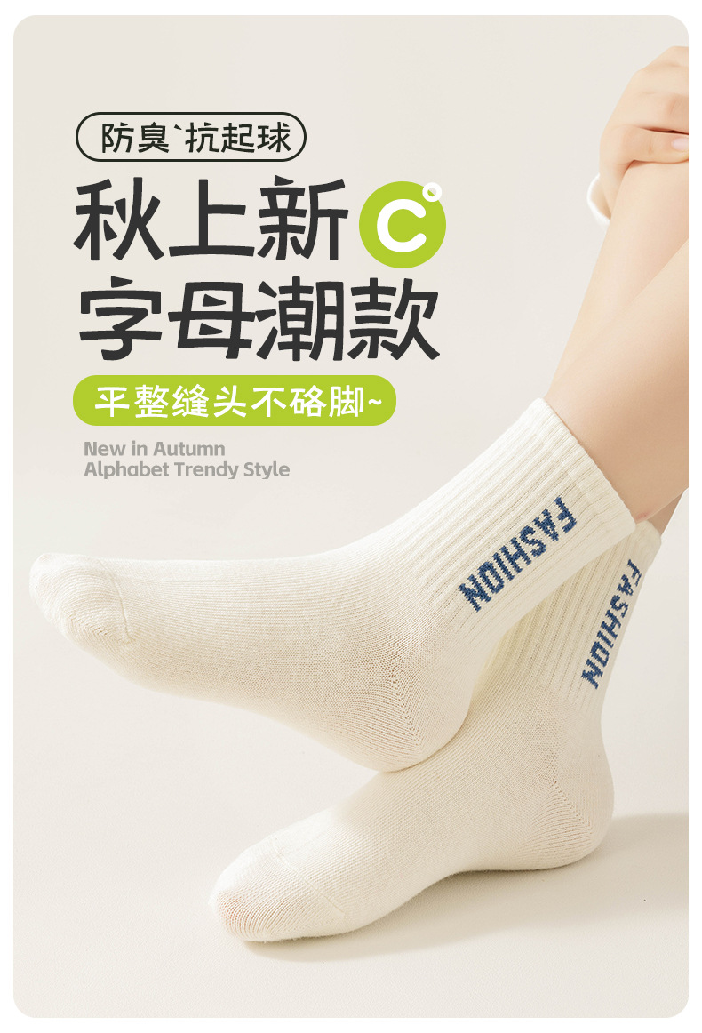2024 년 가을 어린이 양말 빗 코튼 통기성 땀 흡수 중 · 대형 어린이 양말 유행 편지 학생 스포츠 양말스토어 가기