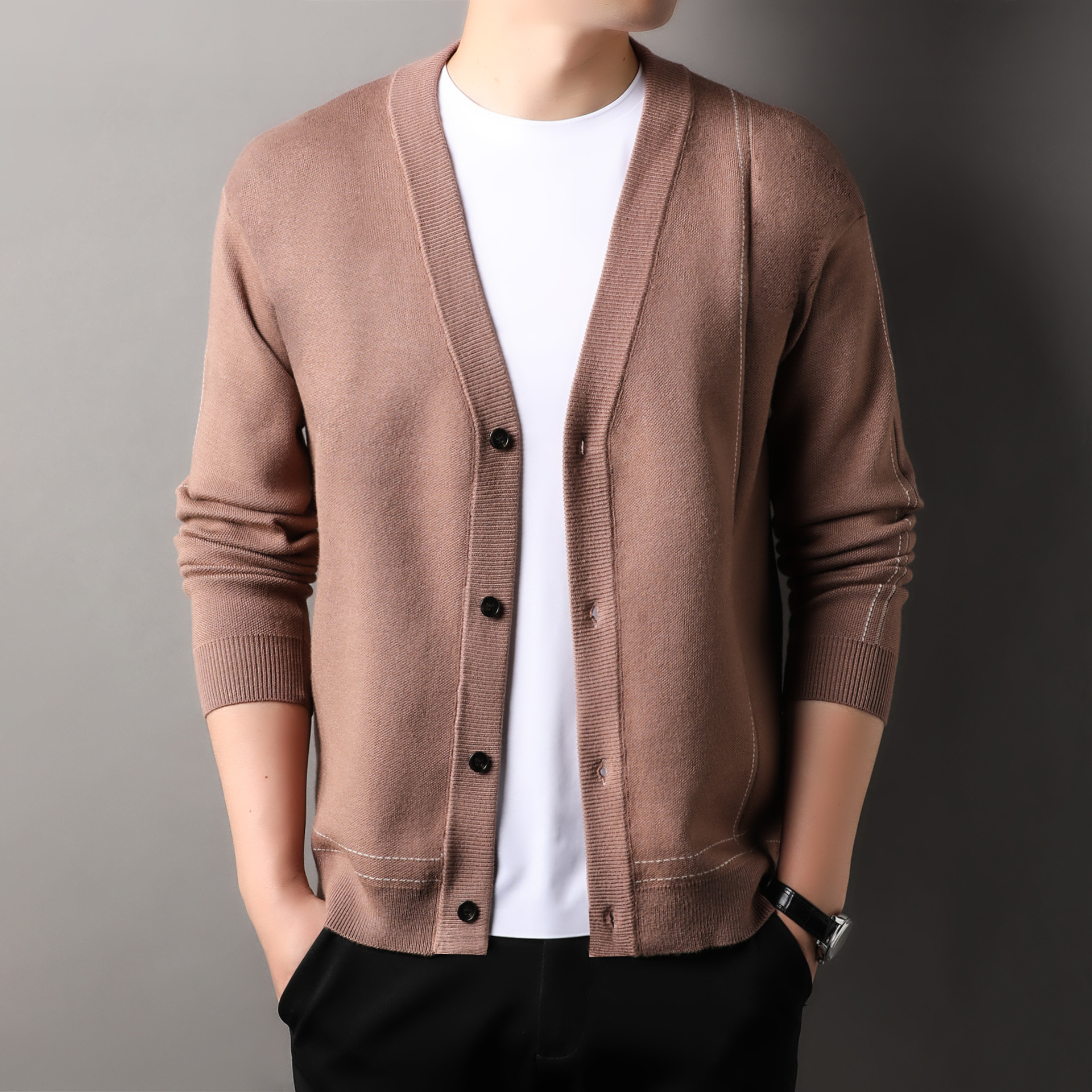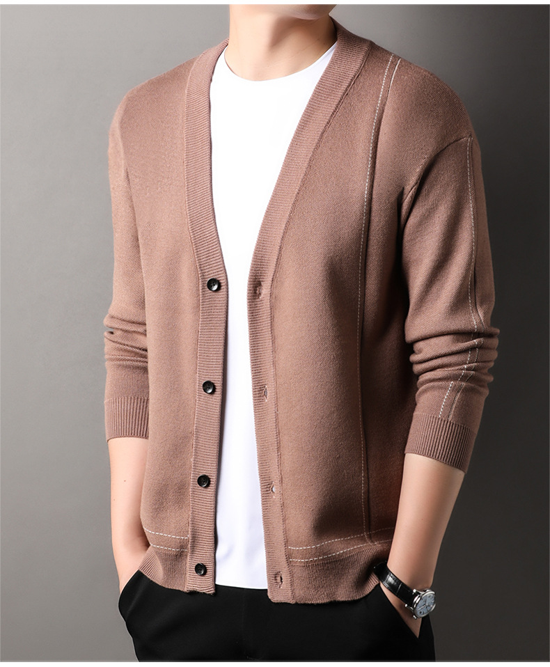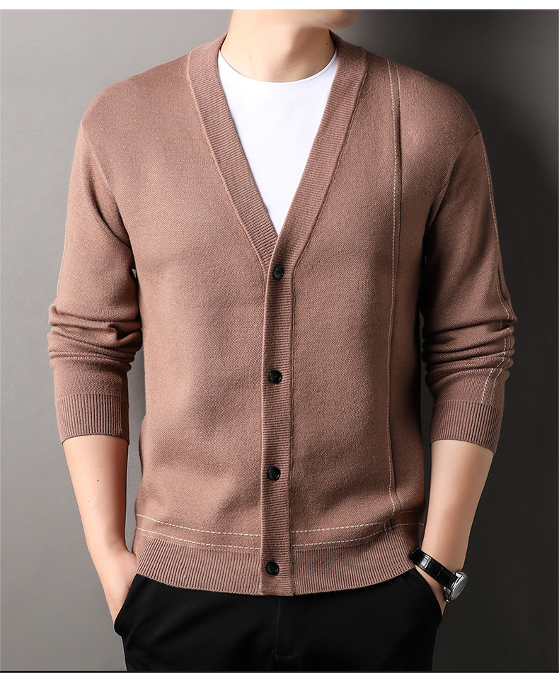 남자 봄과 가을 버튼 카디건 V 넥 스웨터 솔리드 컬러 심플 올 매치 캐주얼 스티칭 프레스 빛나는 올매치 재킷