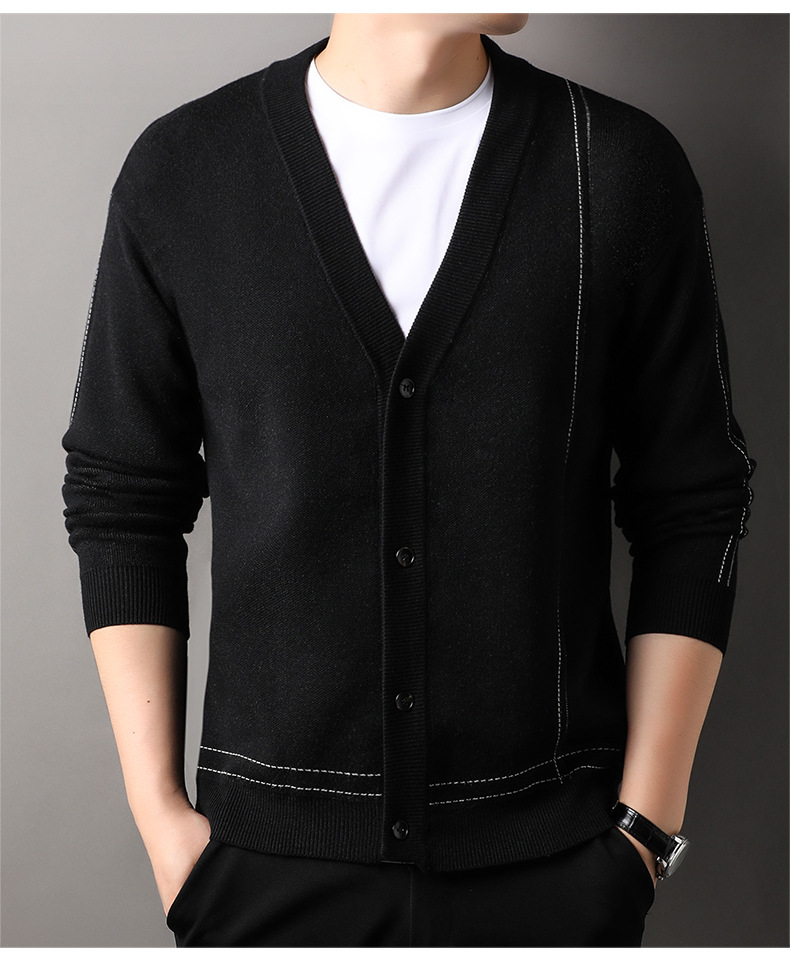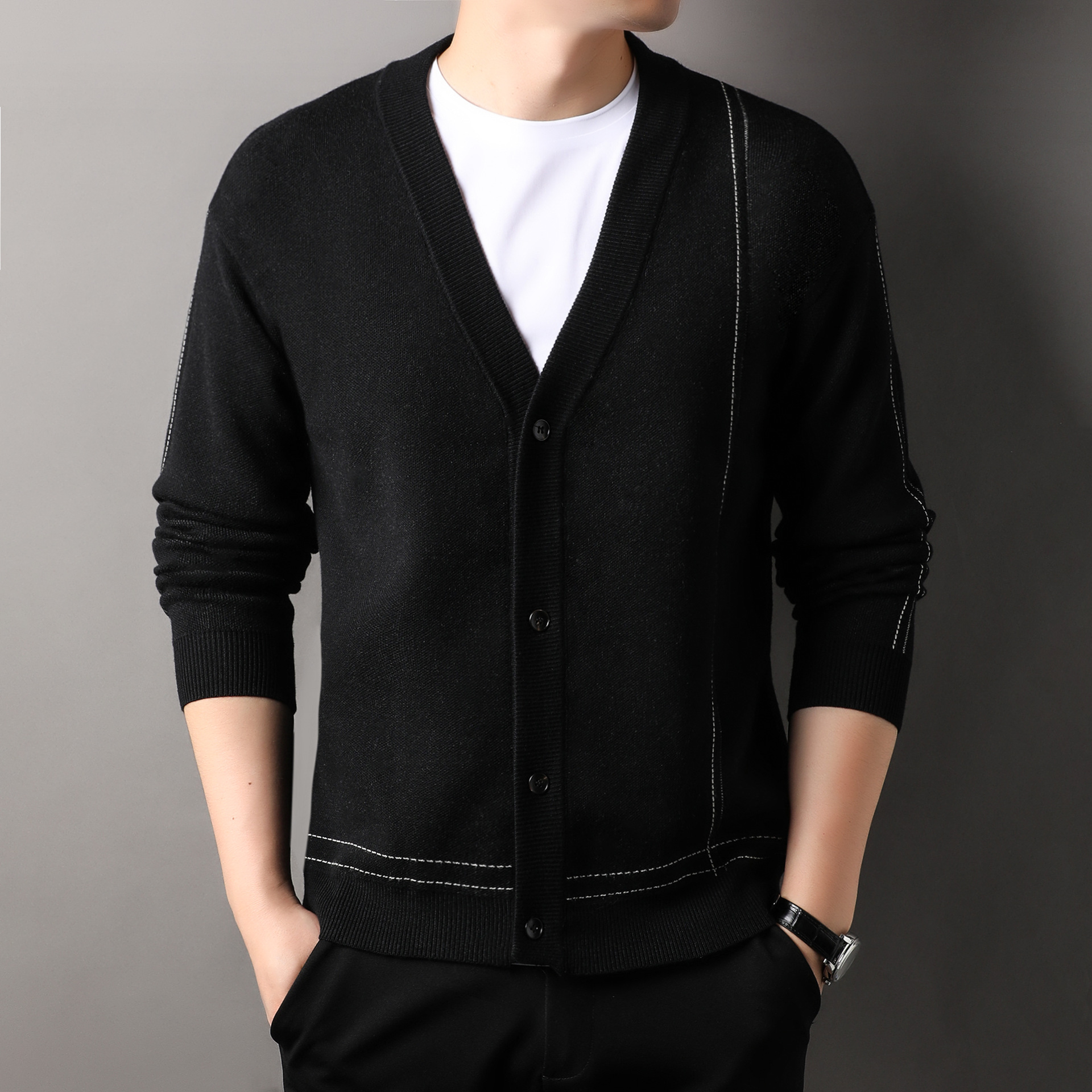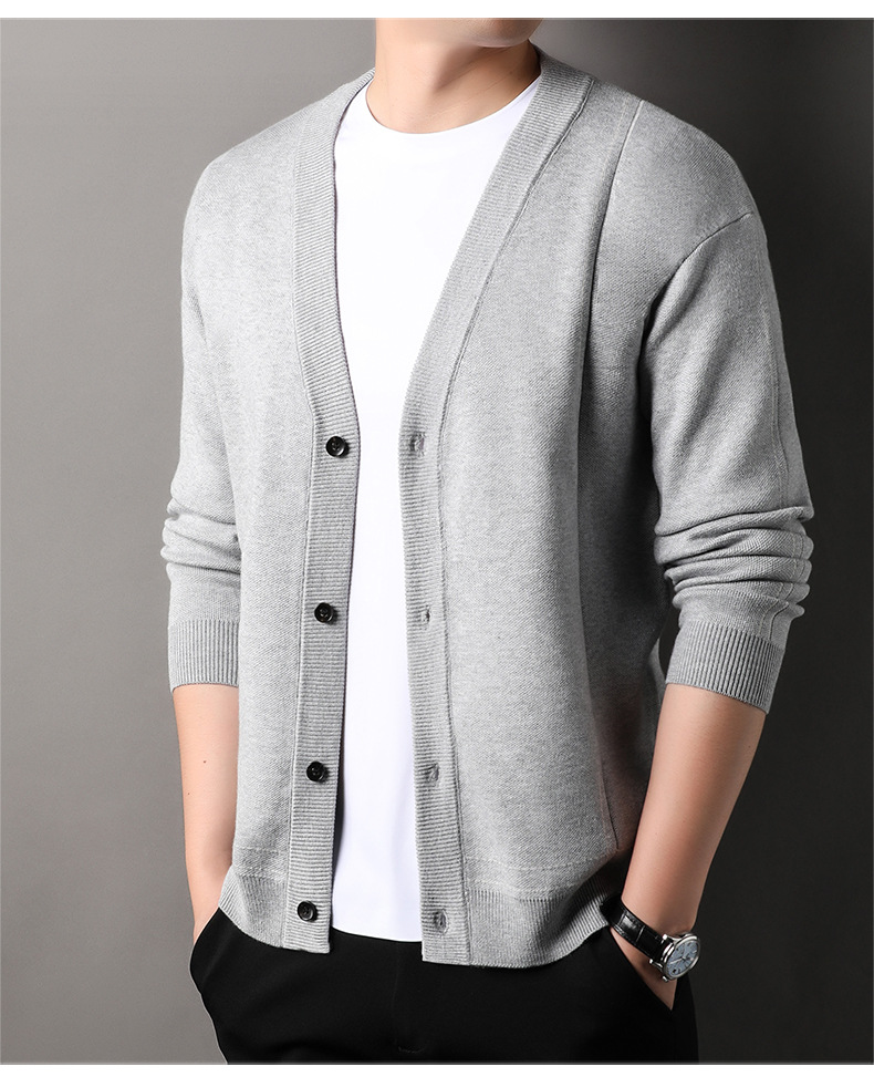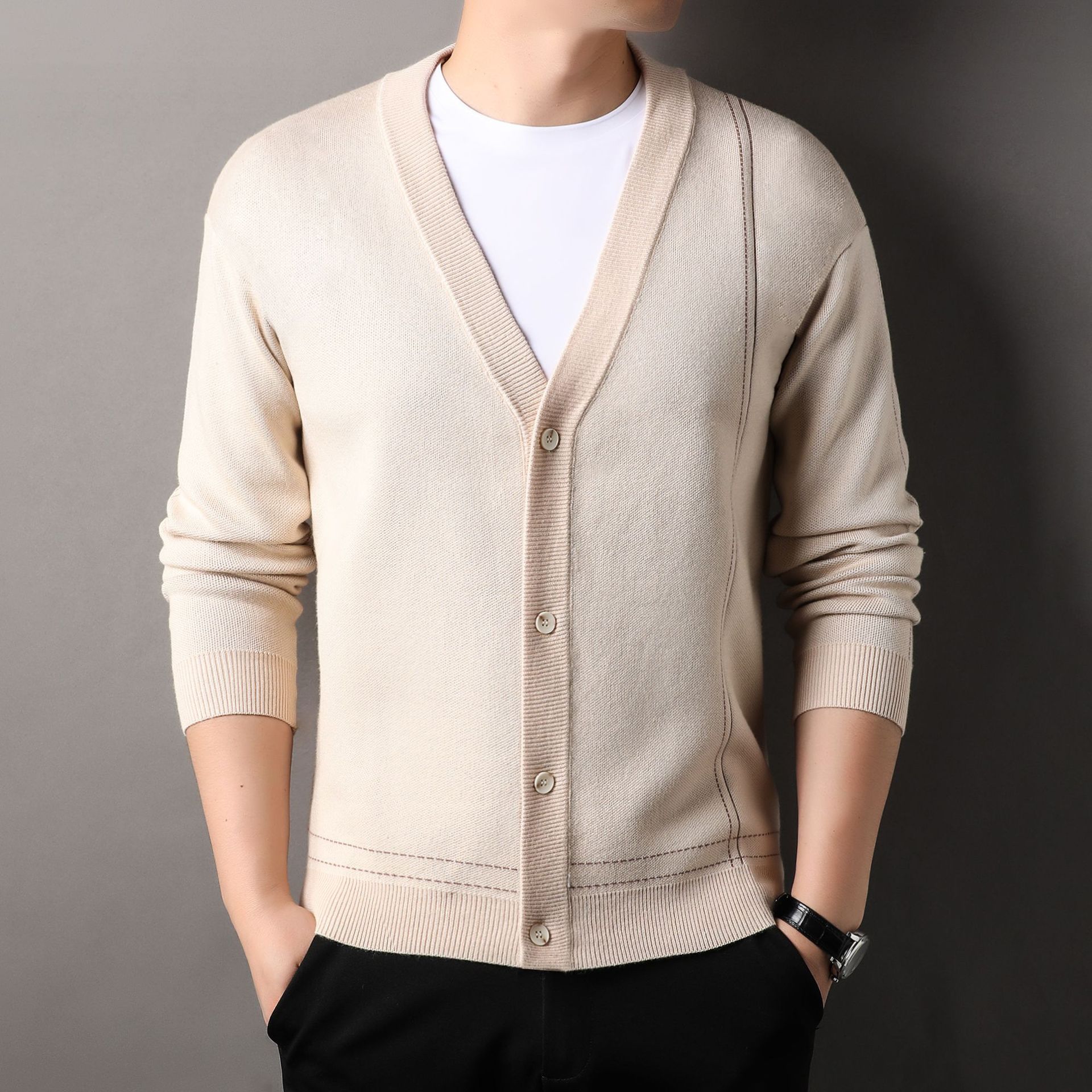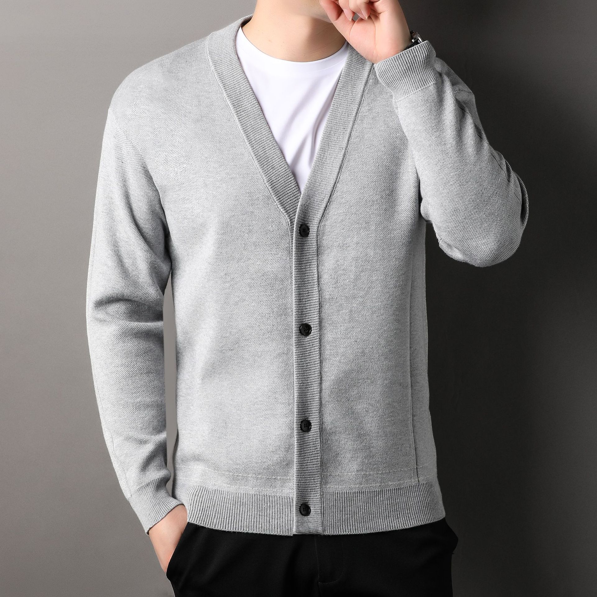 남자 봄과 가을 버튼 카디건 V 넥 스웨터 솔리드 컬러 심플 올 매치 캐주얼 스티칭 프레스 빛나는 올매치 재킷스토어 가기
