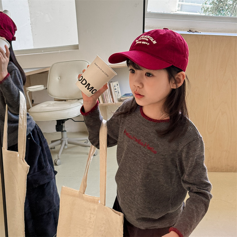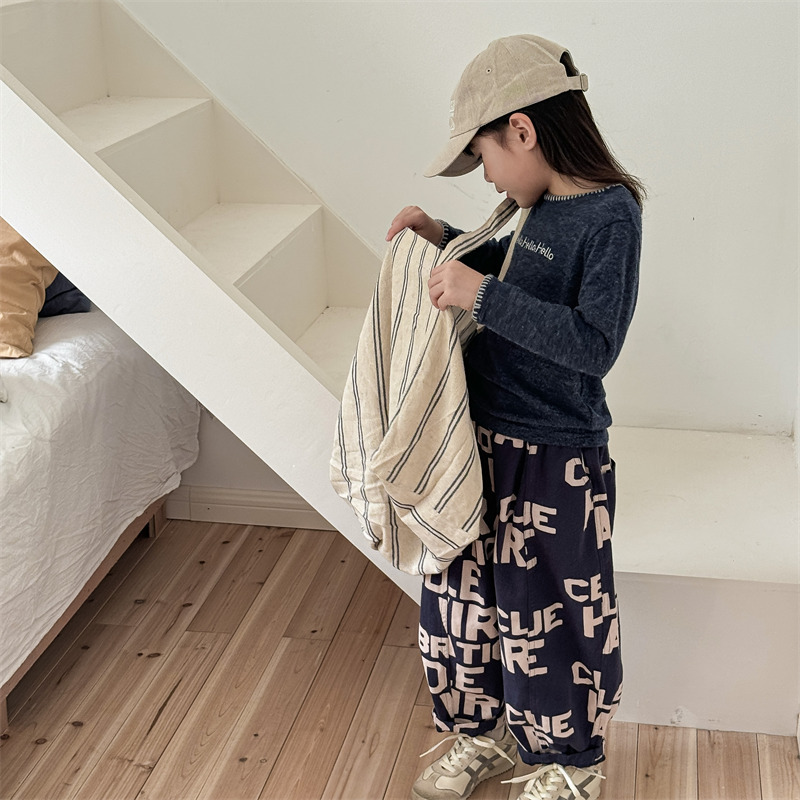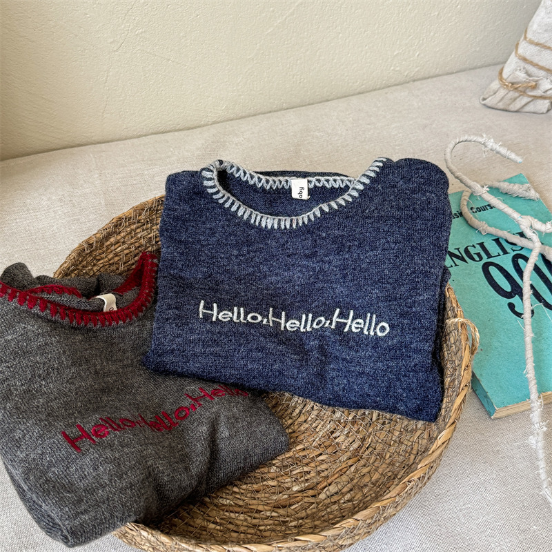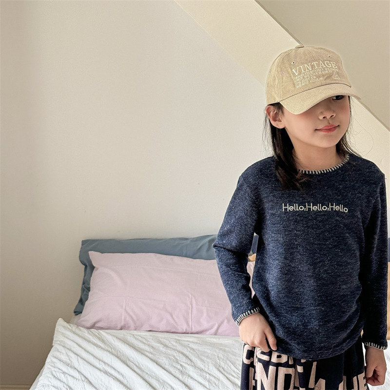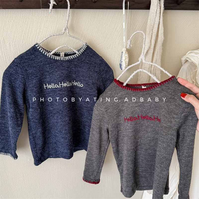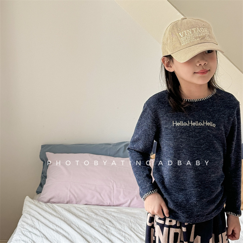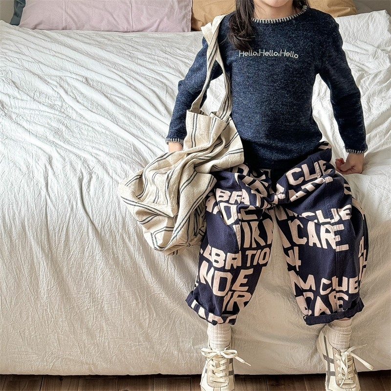 어린이 긴팔 티셔츠 2024 가을 아동복 새 소년 소녀 서양식 편지 니트 스웨터 베이비베이스 셔츠 조수스토어 가기