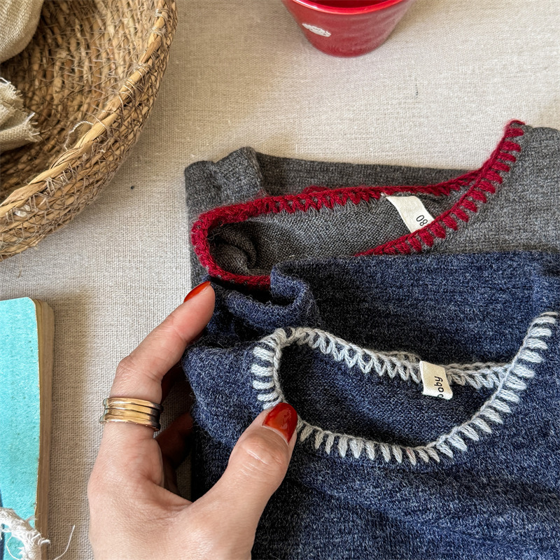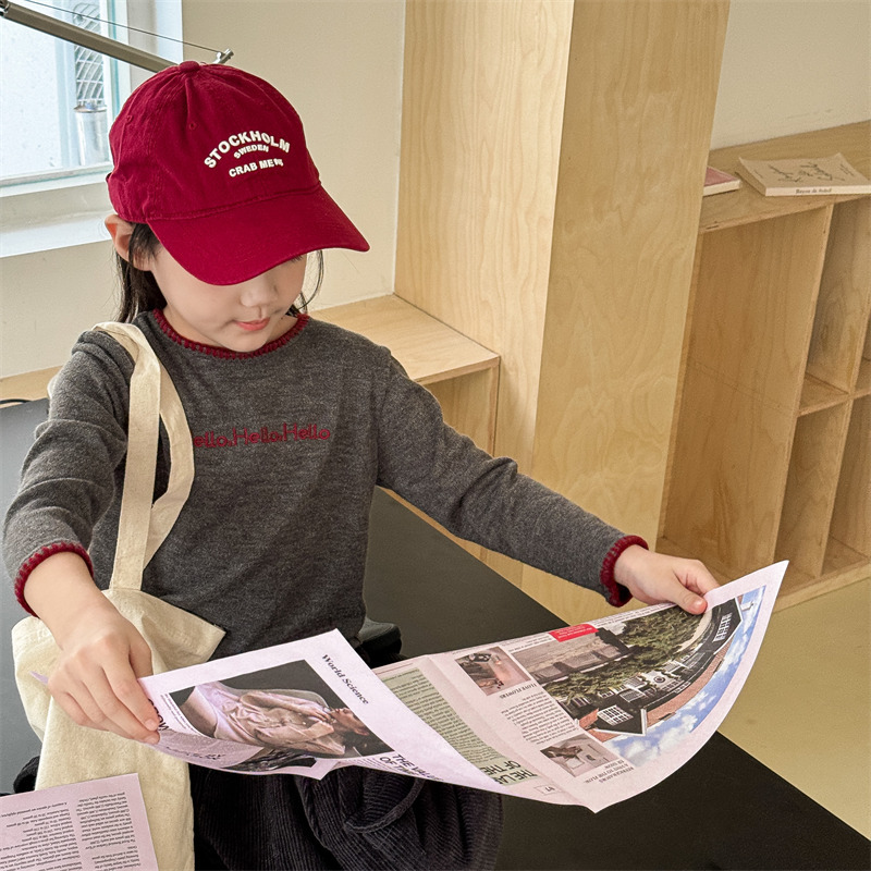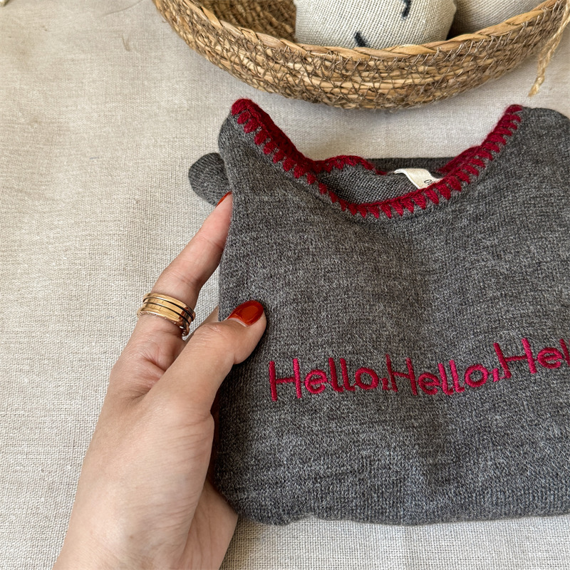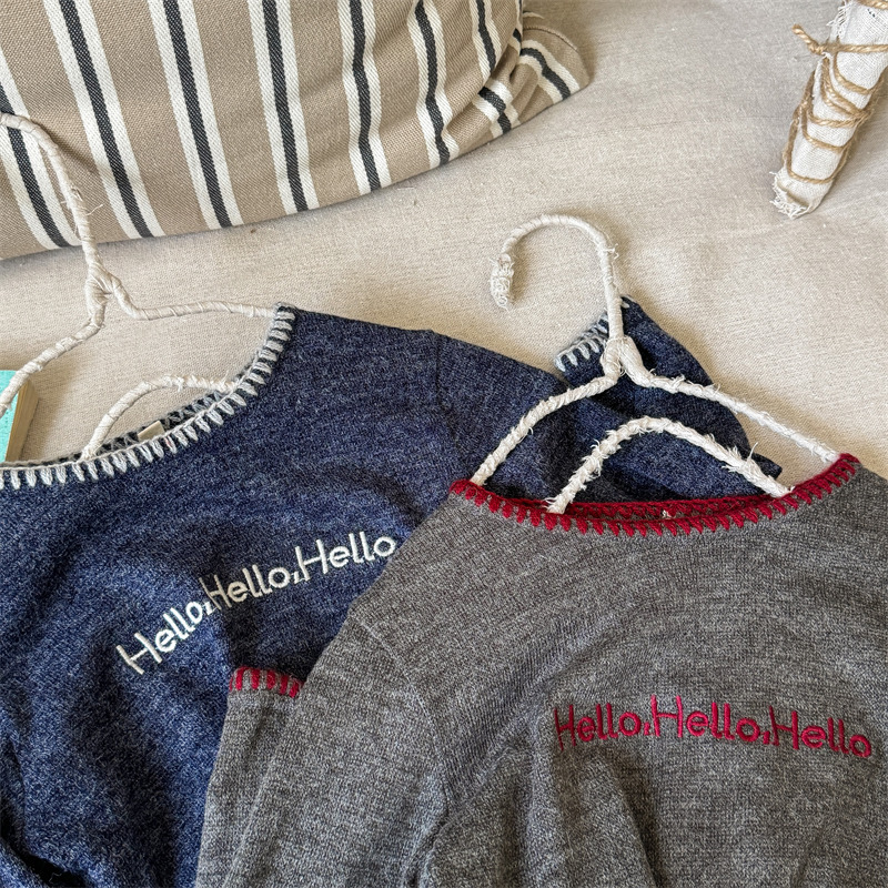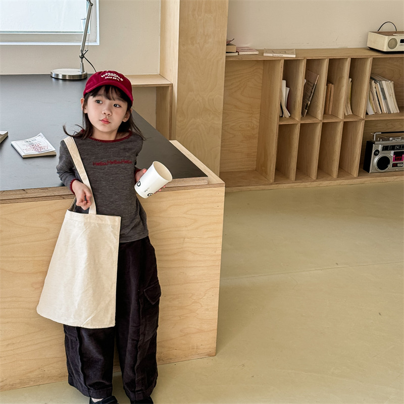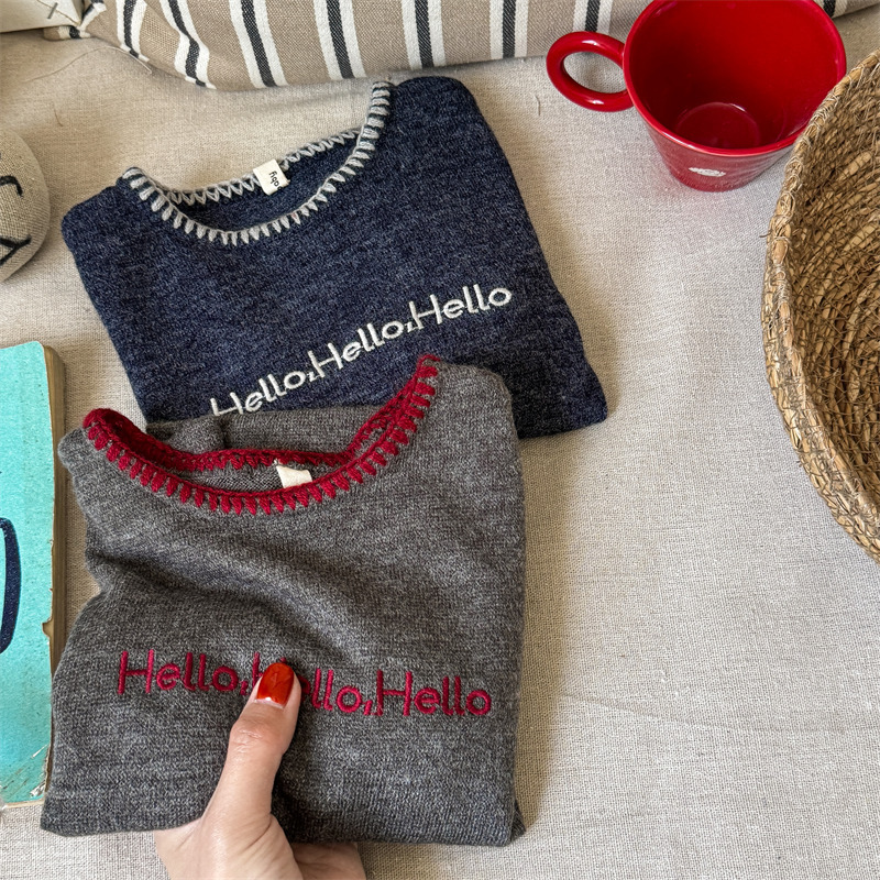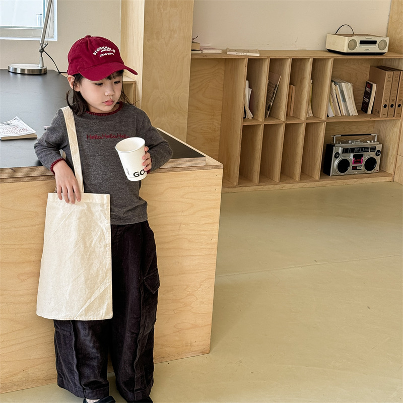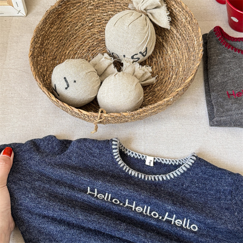 어린이 긴팔 티셔츠 2024 가을 아동복 새 소년 소녀 서양식 편지 니트 스웨터 베이비베이스 셔츠 조수스토어 가기