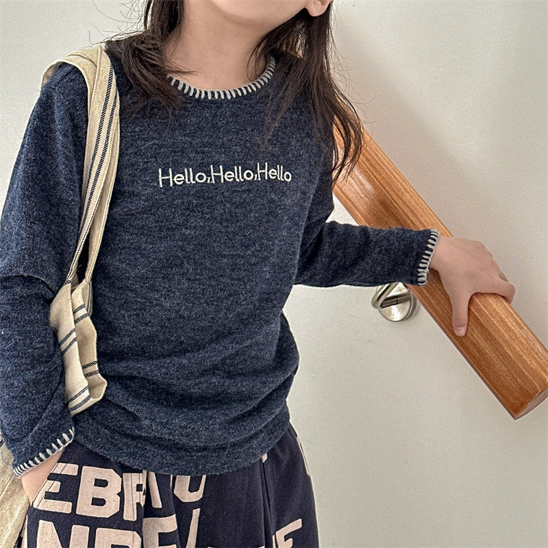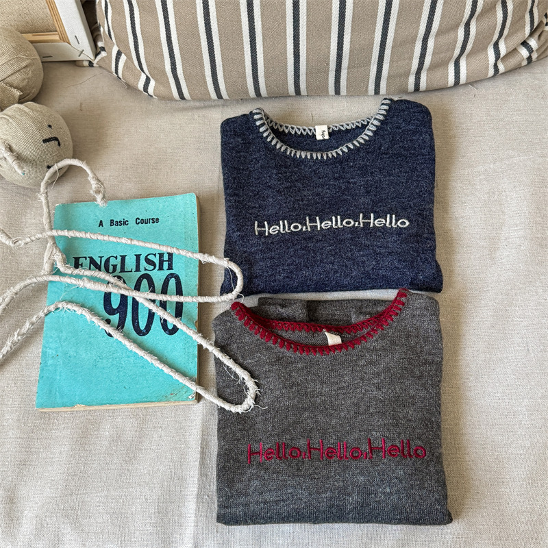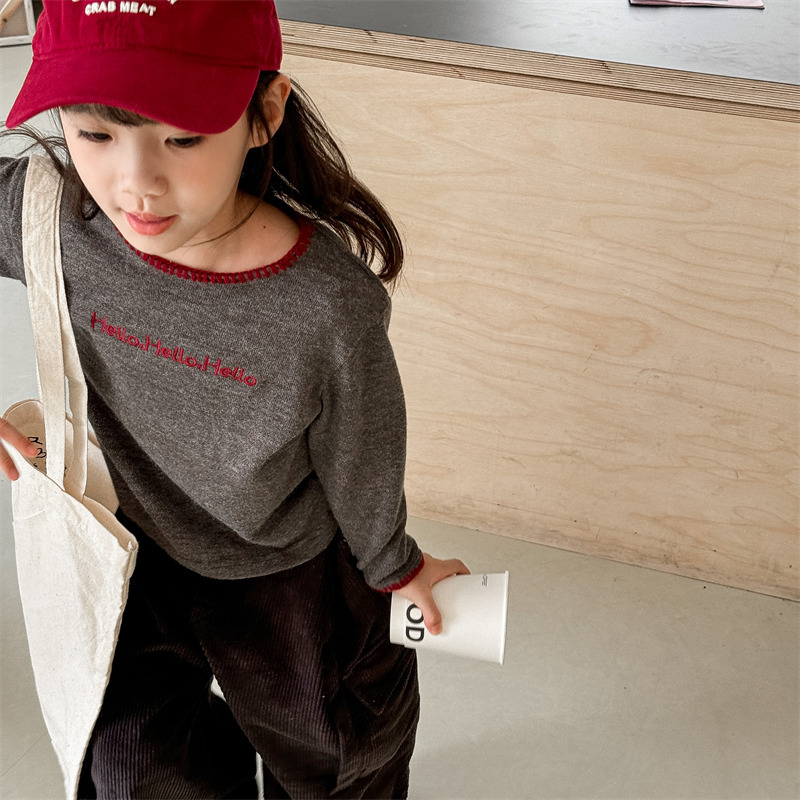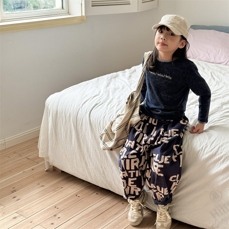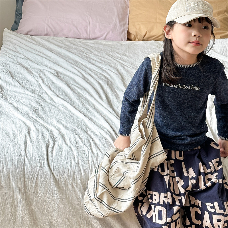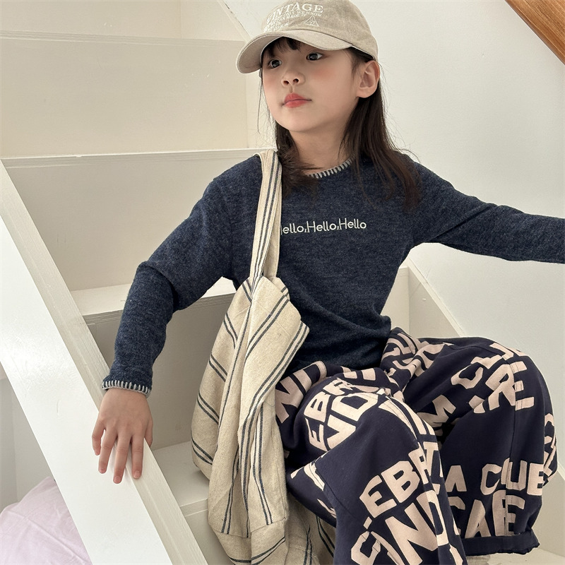 어린이 긴팔 티셔츠 2024 가을 아동복 새 소년 소녀 서양식 편지 니트 스웨터 베이비베이스 셔츠 조수