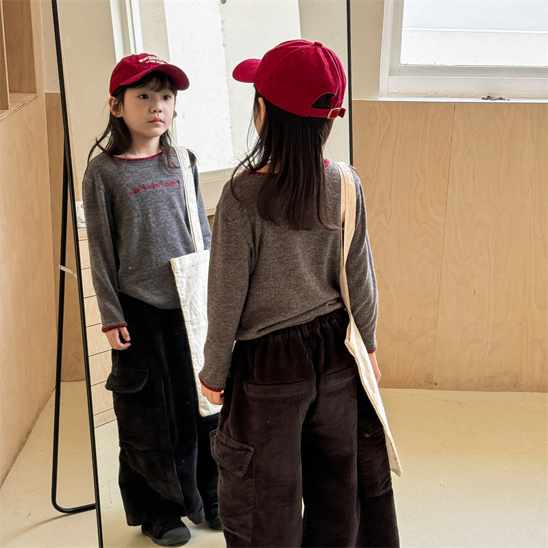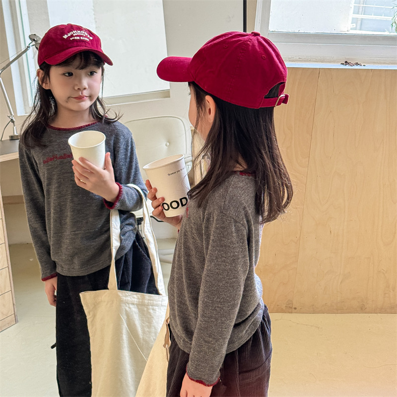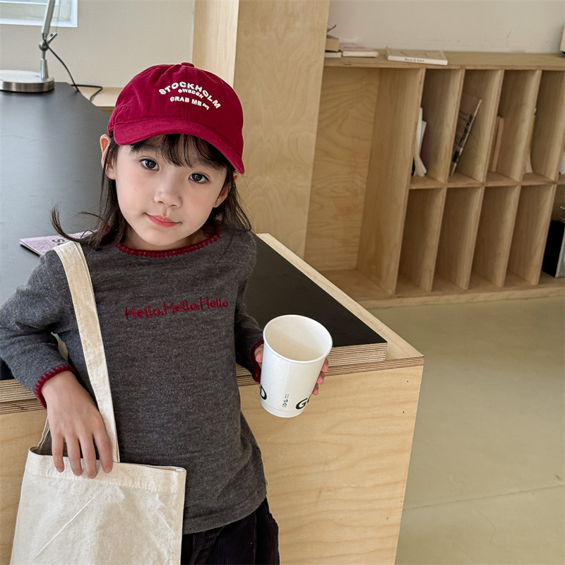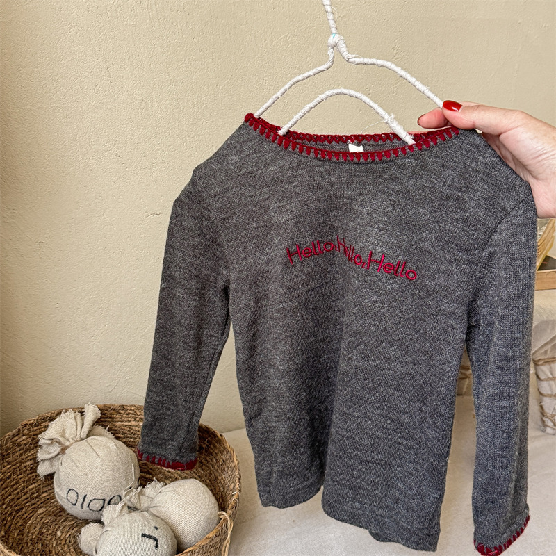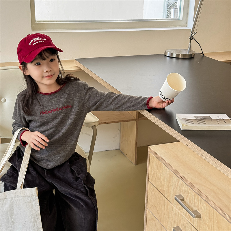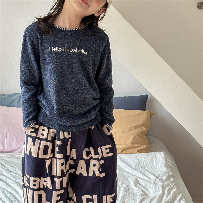 어린이 긴팔 티셔츠 2024 가을 아동복 새 소년 소녀 서양식 편지 니트 스웨터 베이비베이스 셔츠 조수