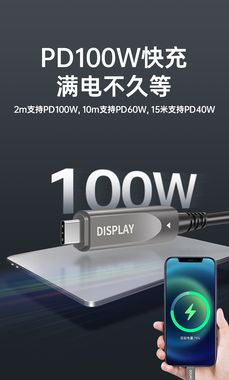 전체 기능을 갖춘 듀얼 헤드 Type-C 광섬유 데이터 라인 PD100w 고속 충전 10Gbps 고속 전송 8K HD 스크린 프로젝션