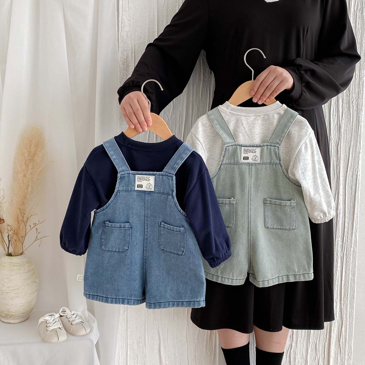 한국 스타일 INS 새로운 반바지 데님 어린이 소년 소녀 아기 봄과 가을 캐주얼 솔리드 컬러 올 매치 점프 수트스토어 가기