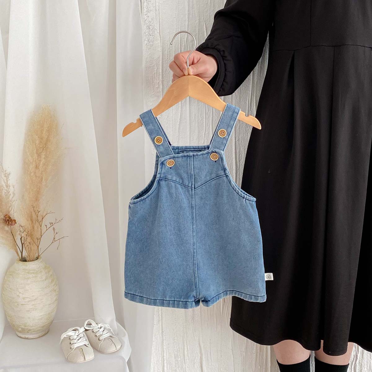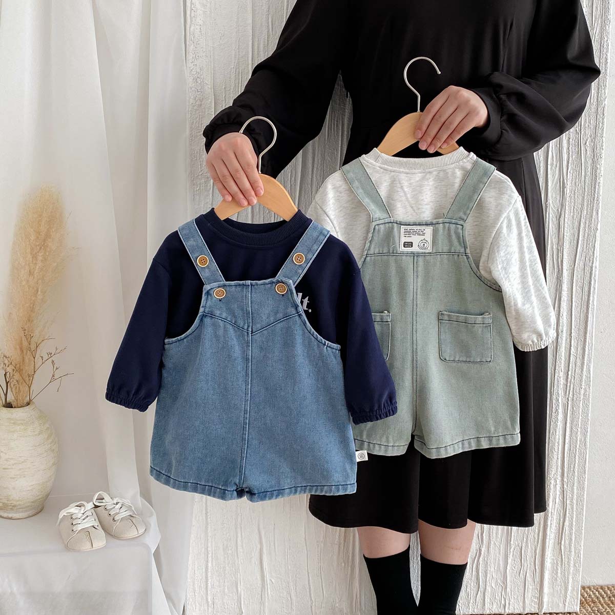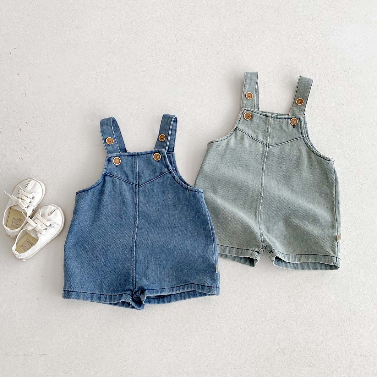한국 스타일 INS 새로운 반바지 데님 어린이 소년 소녀 아기 봄과 가을 캐주얼 솔리드 컬러 올 매치 점프 수트