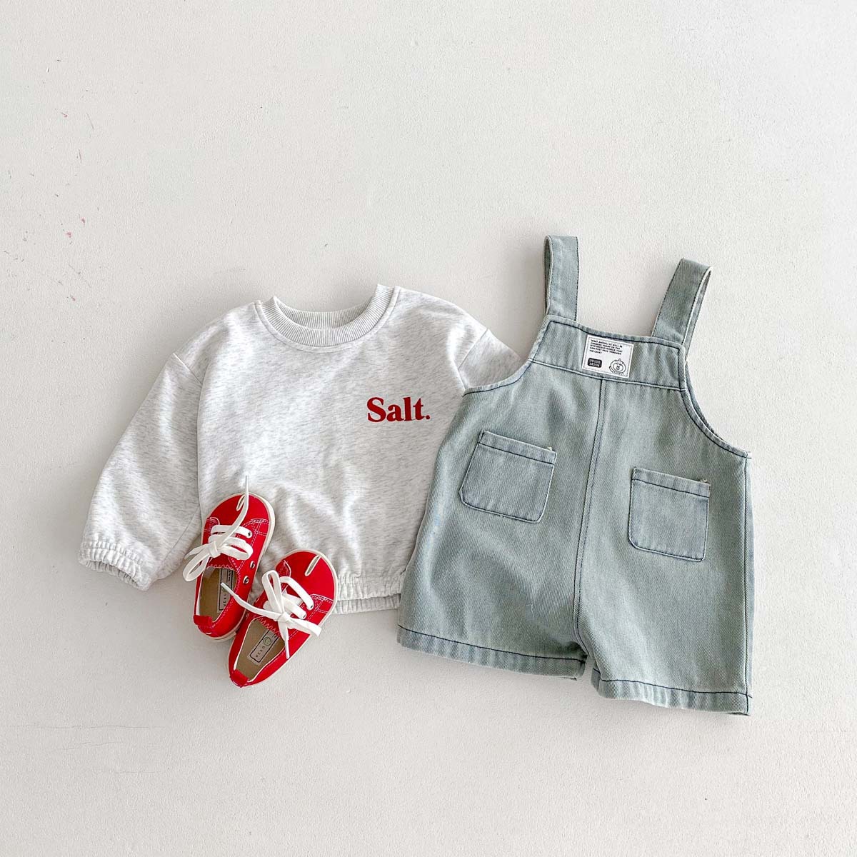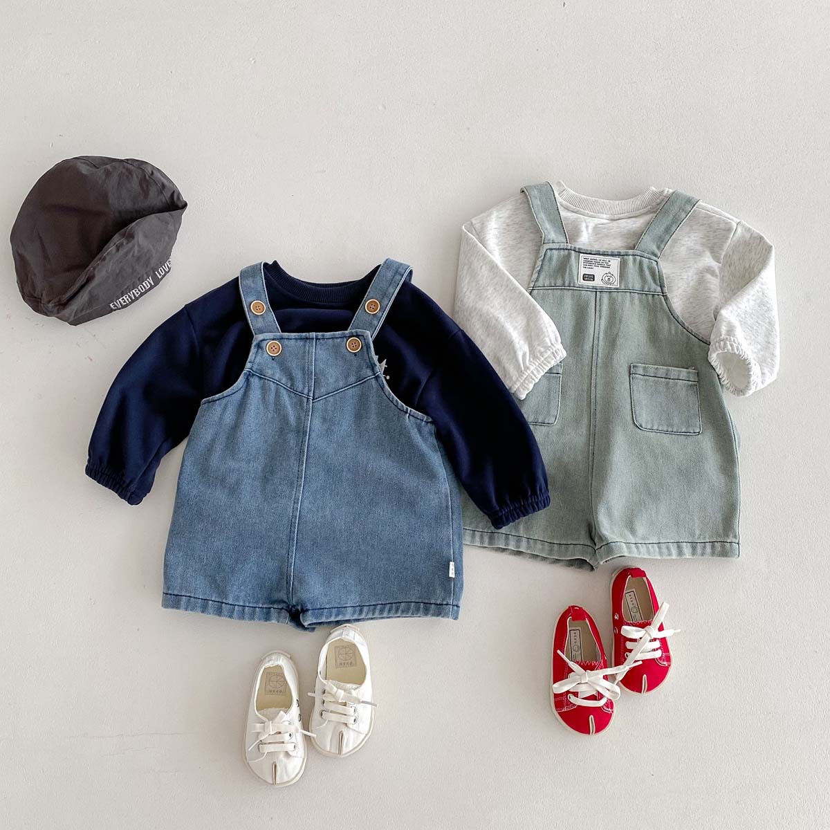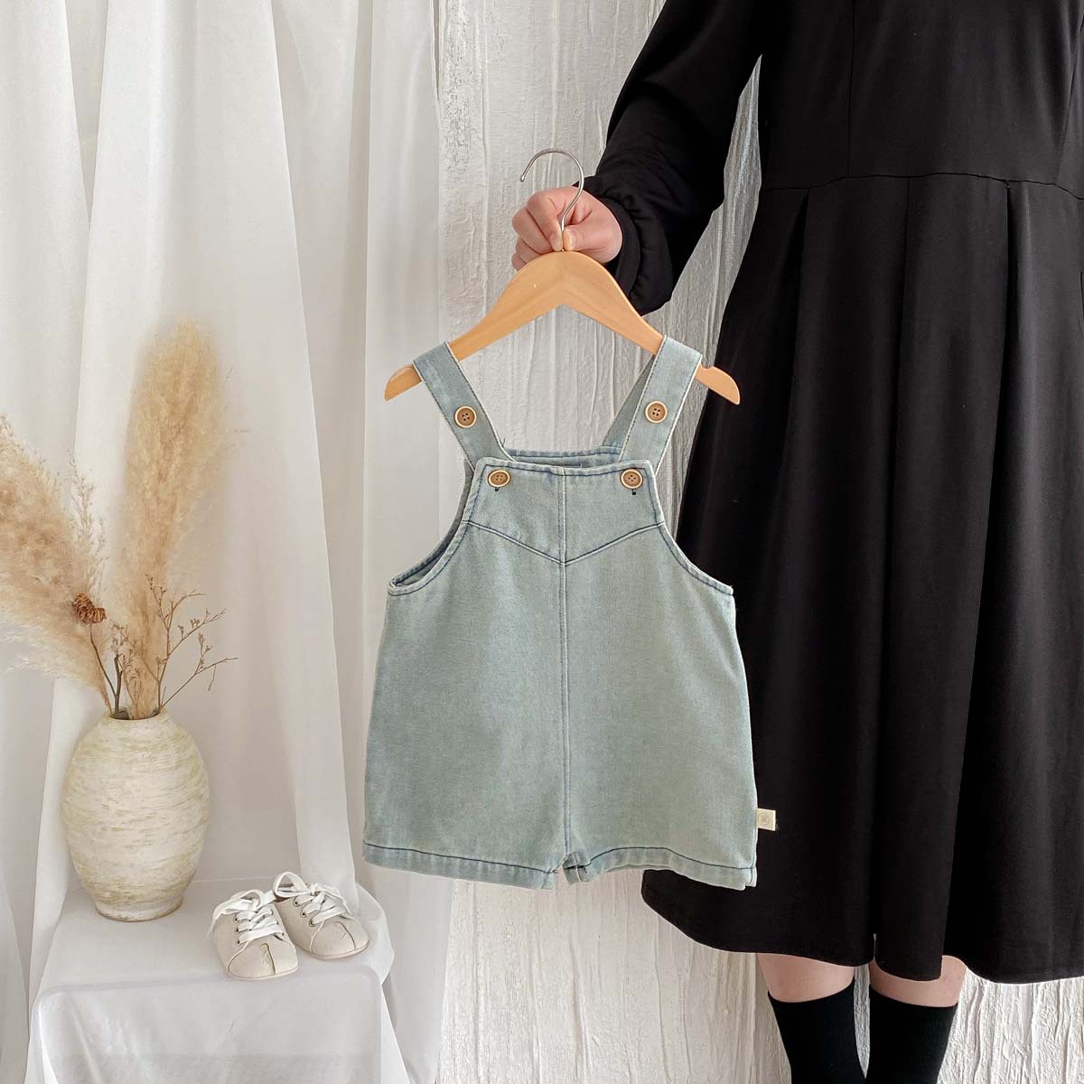 한국 스타일 INS 새로운 반바지 데님 어린이 소년 소녀 아기 봄과 가을 캐주얼 솔리드 컬러 올 매치 점프 수트