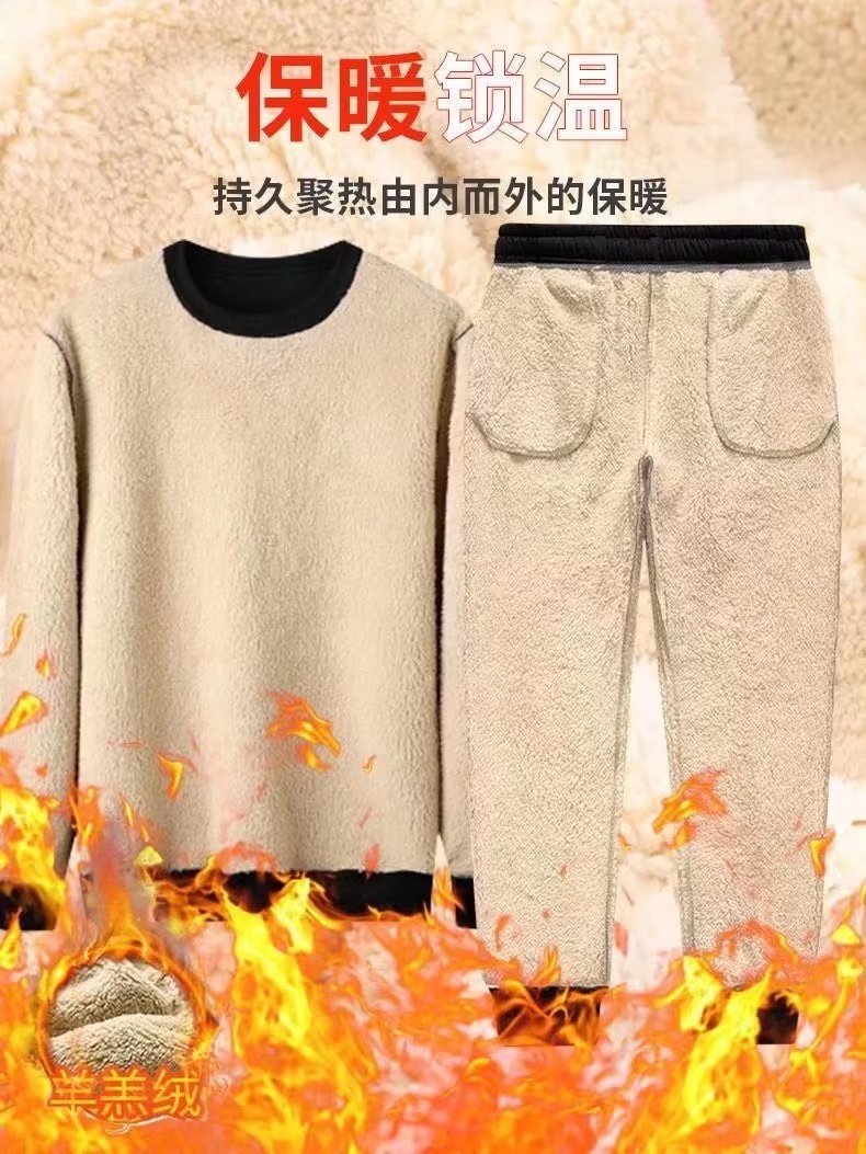 양고기 양털 겨울 기모 두꺼운 남자 크루 넥 스웨터 가을과 겨울 따뜻한 두꺼운 베이스 셔츠 내복 남성복