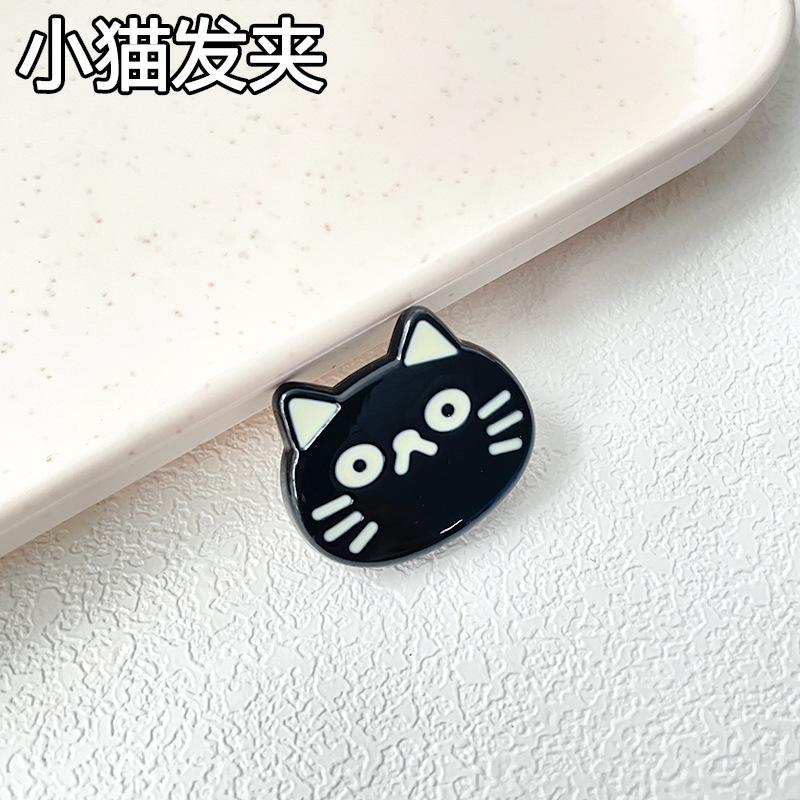 귀여운 만화 검은 새끼 고양이 작은 물고기 덕빌 헤어핀 헤어 액세서리 달콤한 소녀 스타일 깨진 헤어핀 사이드 클립