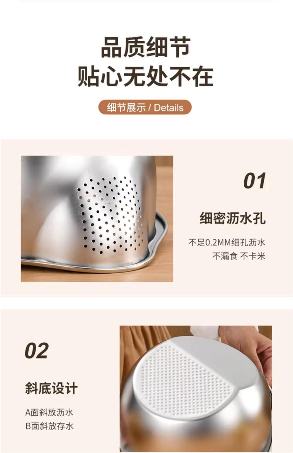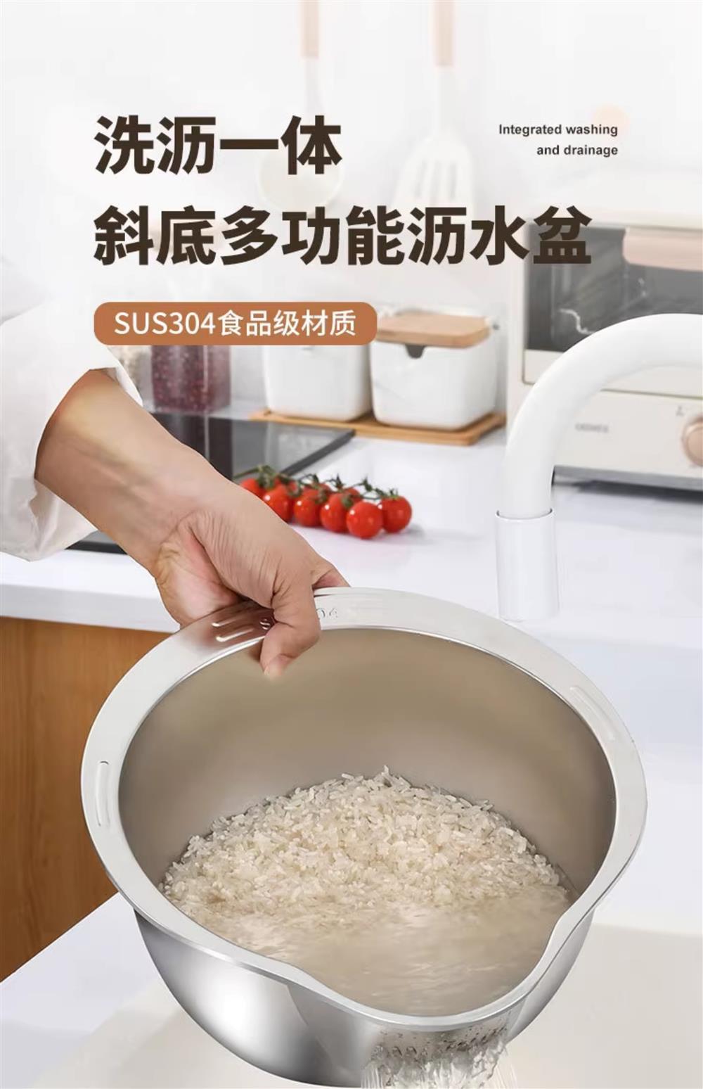 304 스테인레스 스틸 경사 쌀 세척 분지 쌀 세척 스크린 대형 가정용 주방 세척 바구니 쌀 세척 바구니 과일 접시 바구니