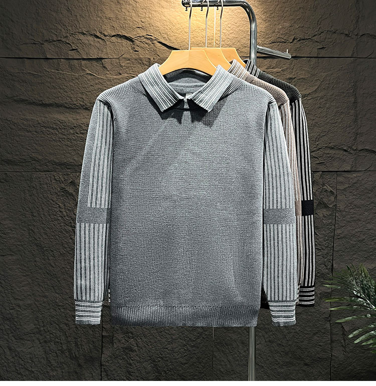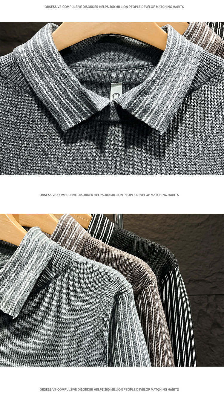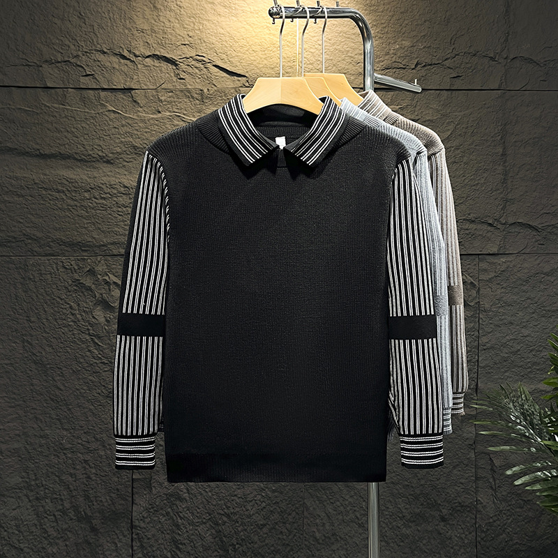 명암 컬러 탑 겨울 바느질 스웨터 남자 가짜 투피스 스웨터 옷깃 니트 남성베이스 옷깃 내부 옷깃