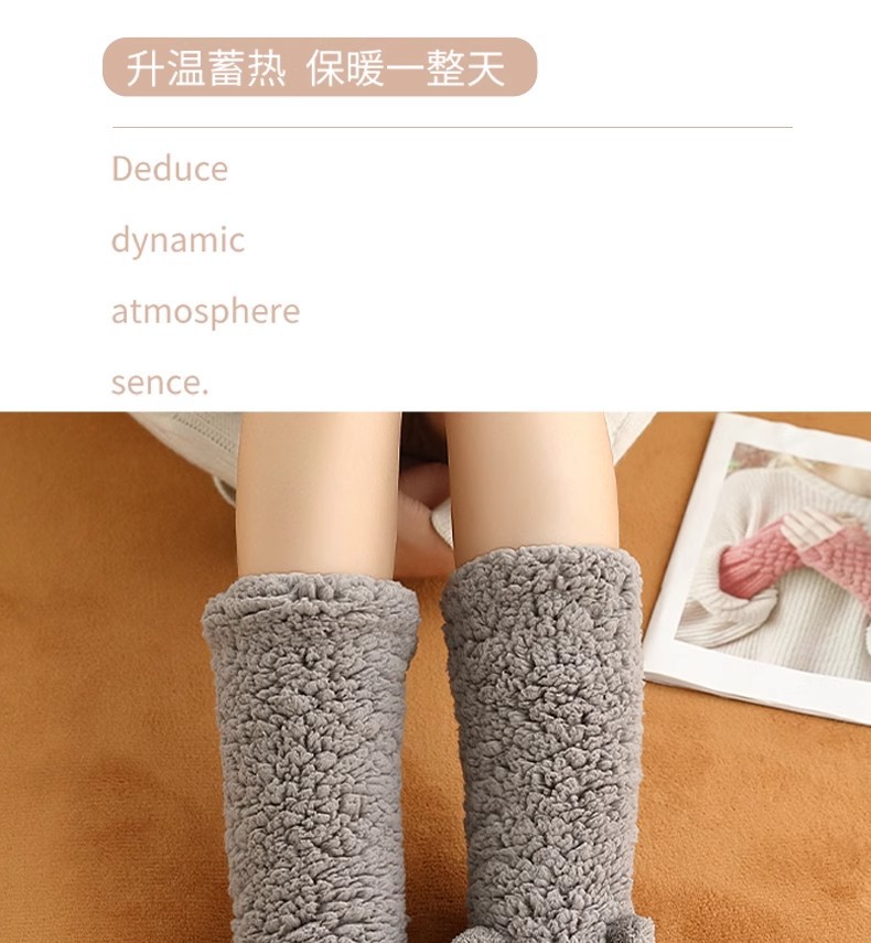 가을과 겨울 두꺼운 양말 여성의 발 따뜻한 아티팩트 기모 두꺼운 중간 튜브 양고기 양털 바닥 양말 겨울 달 양말 발 따뜻함