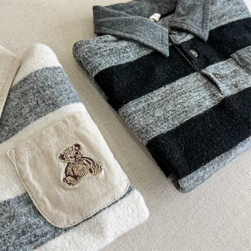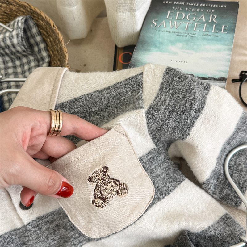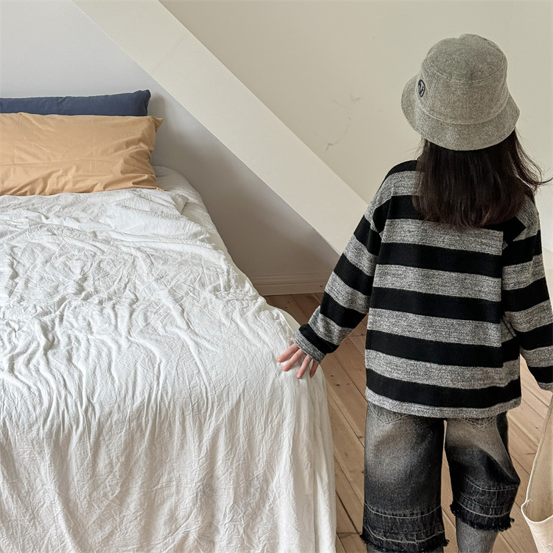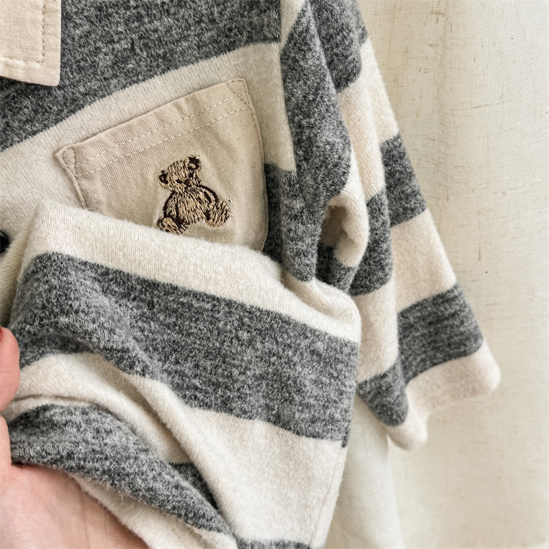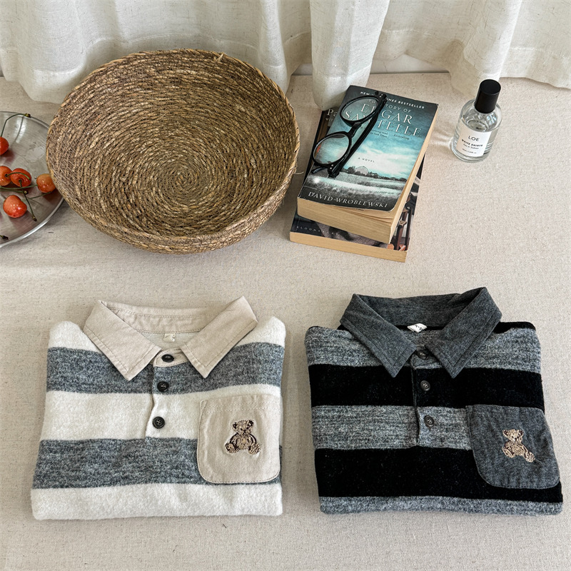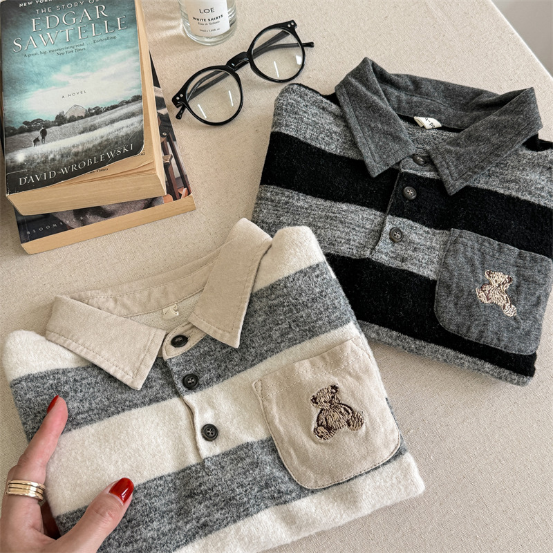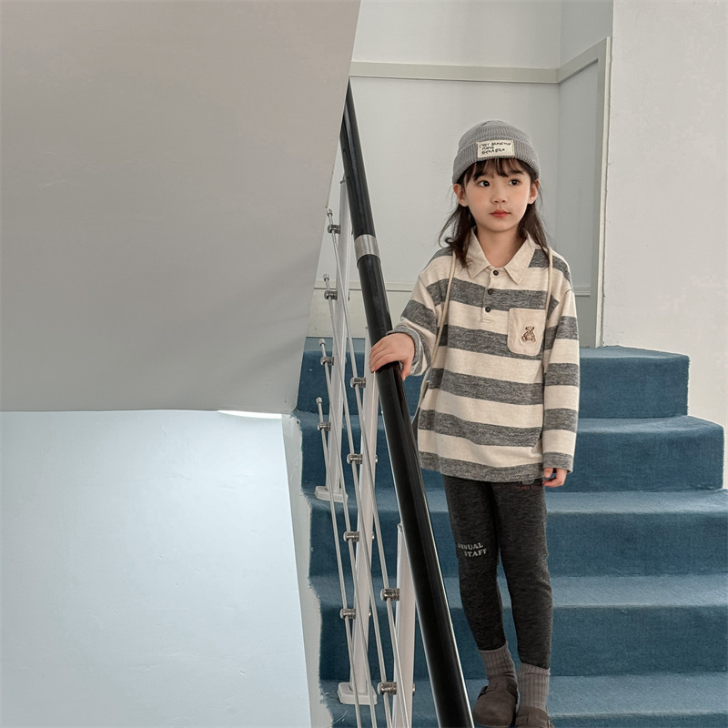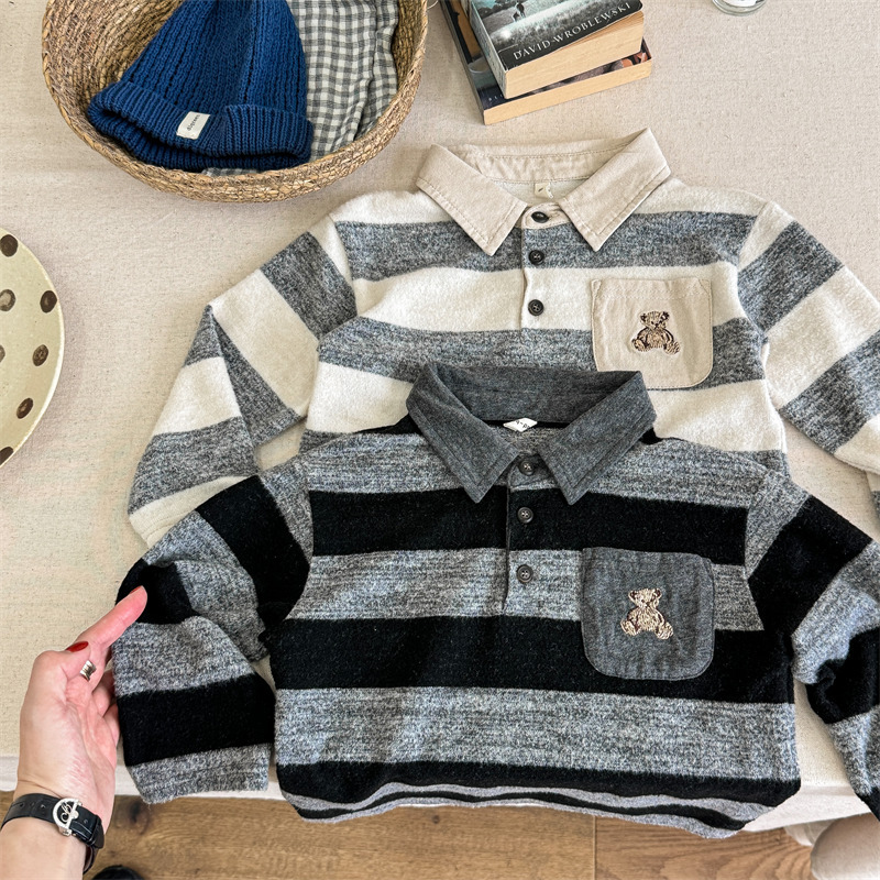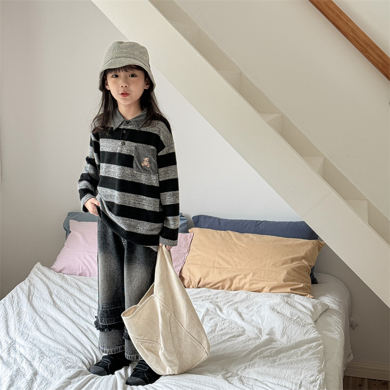 어린이 긴 소매 티셔츠 2024 가을 한국 스타일 새로운 소년과 소녀 스타일 줄무늬 폴로 셔츠 아기베이스 셔츠 트렌디스토어 가기