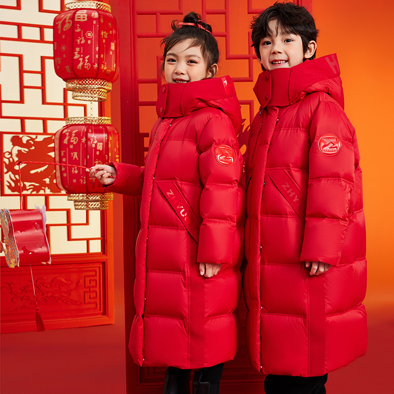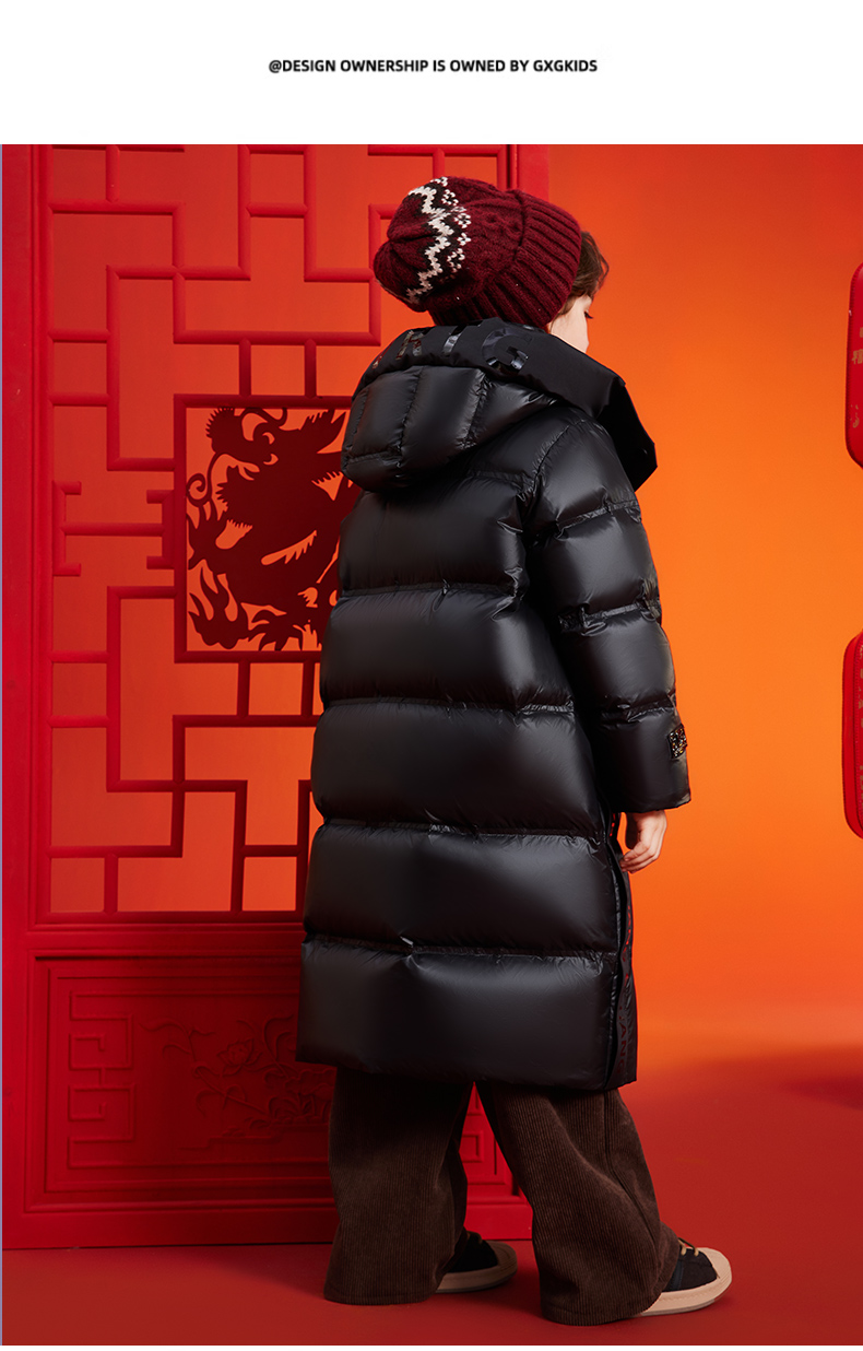 오리 아동복 다운 재킷 2024 새로운 소년과 소녀 어린이 긴 패션 후드 중 큰 어린이 따뜻한 재킷스토어 가기