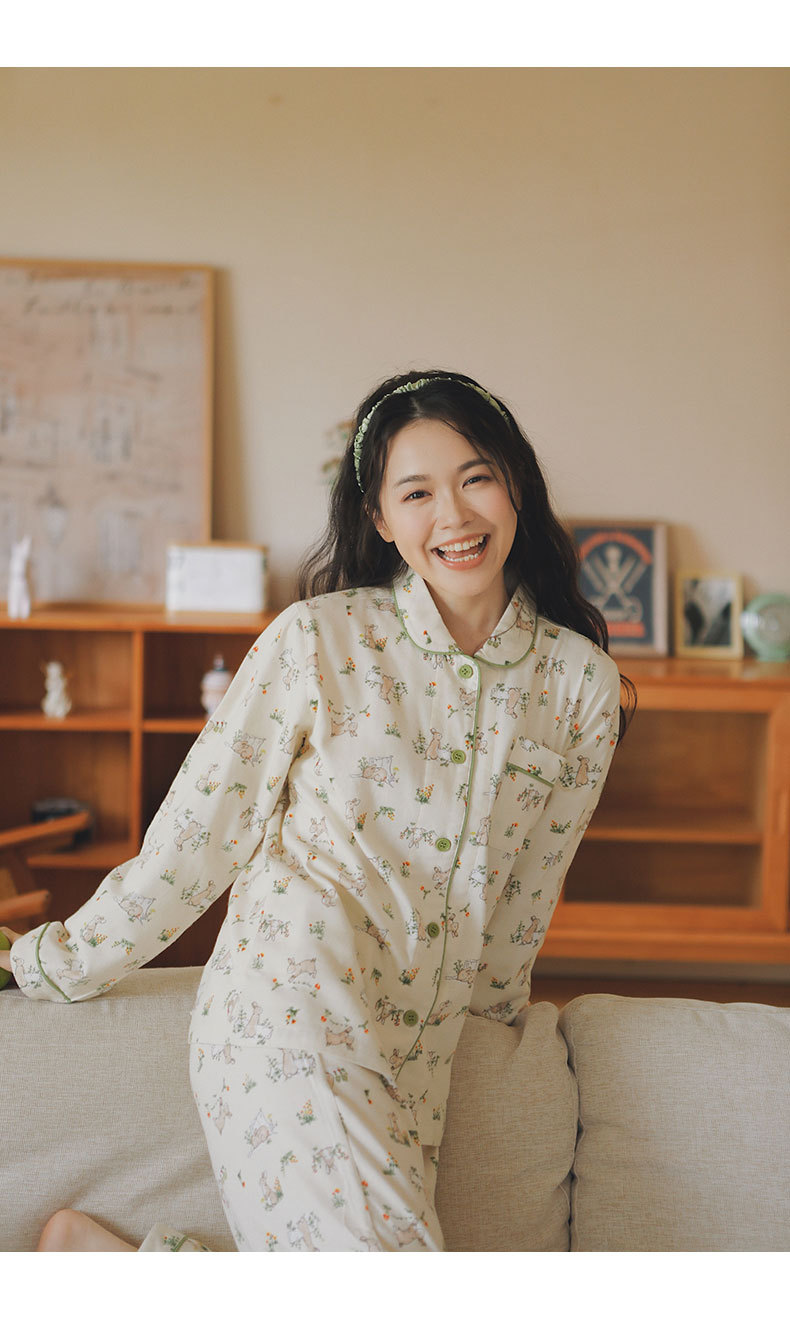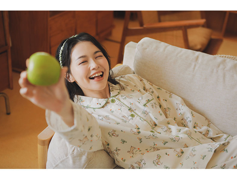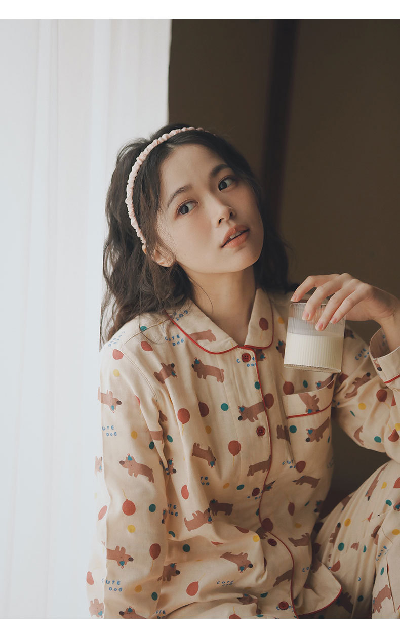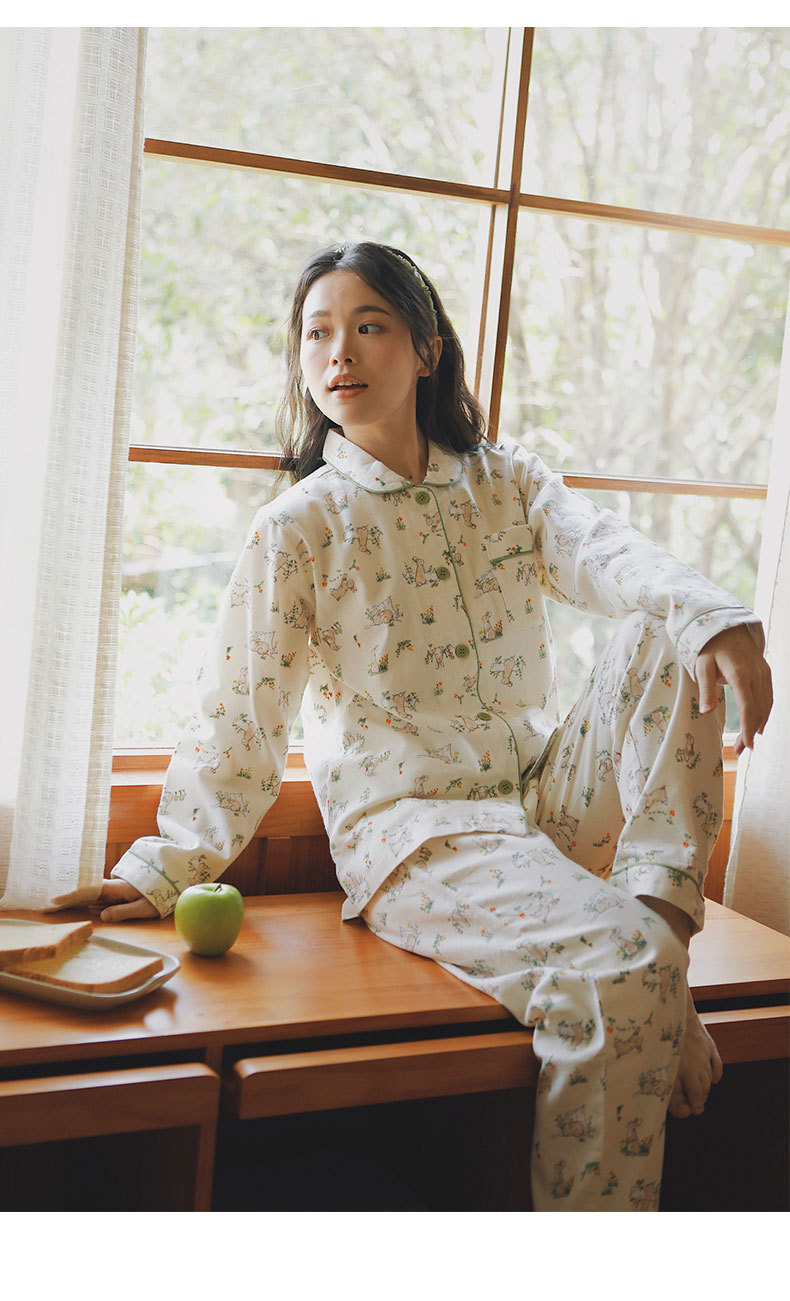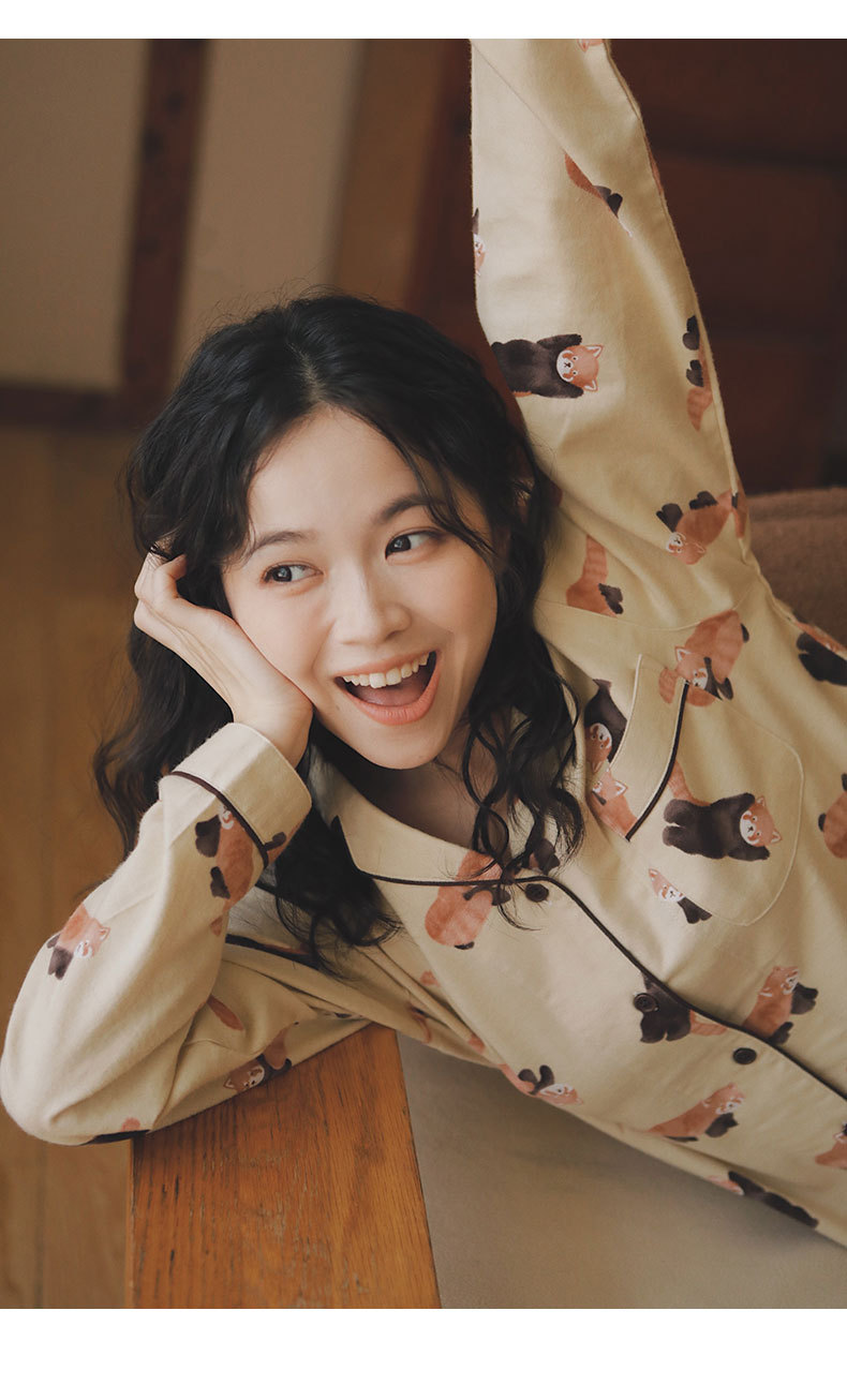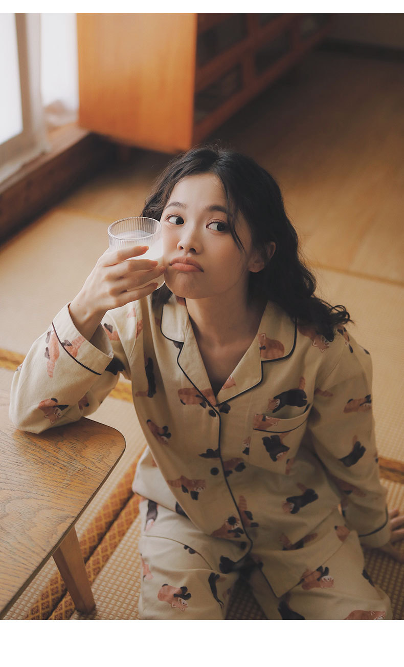 기대 69-일본 잠옷 여성 가을 코튼 브러쉬 양털 만화 귀여운 소녀 코튼 홈 옷 느슨한스토어 가기