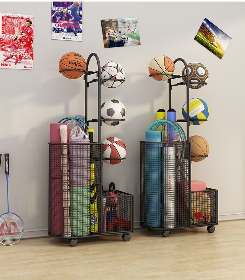 가정용 스포츠 스토리지 랙 농구 축구 배구 배드민턴 라켓 피트니스 장비 배치 마무리 스토리지 랙 볼 랙스토어 가기