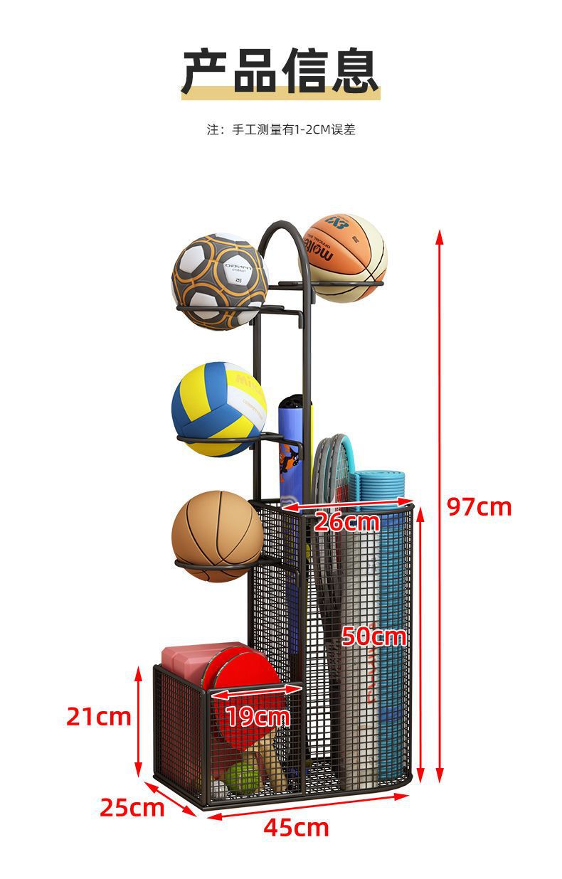 가정용 스포츠 스토리지 랙 농구 축구 배구 배드민턴 라켓 피트니스 장비 배치 마무리 스토리지 랙 볼 랙