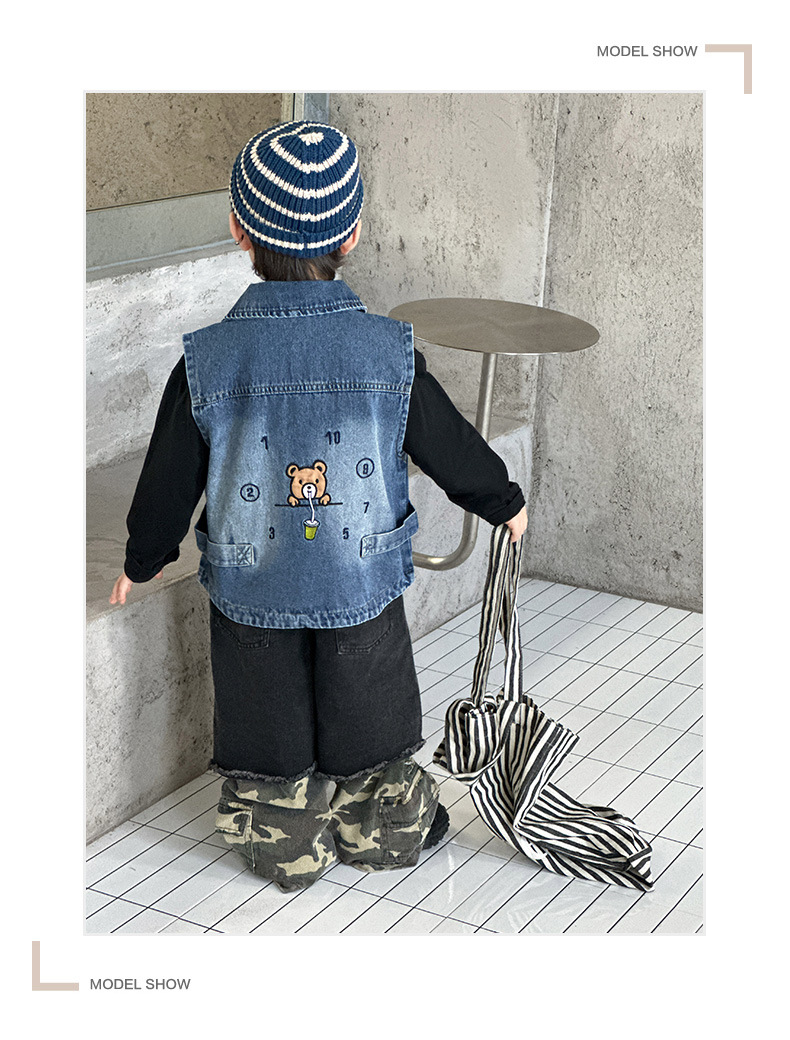 소년 데님 조끼 봄과 가을 2024 새로운 만화 패션 얇은 외국 스타일 유행 조끼를 입고 어린이 조끼스토어 가기