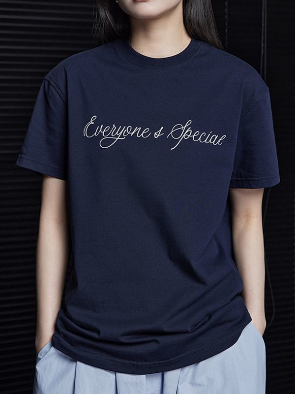 2024 여름 새 네이비 반팔 편지 인쇄 티셔츠 여성용 아메리칸 스타일 레트로 루즈 라운드 넥 탑스토어 가기