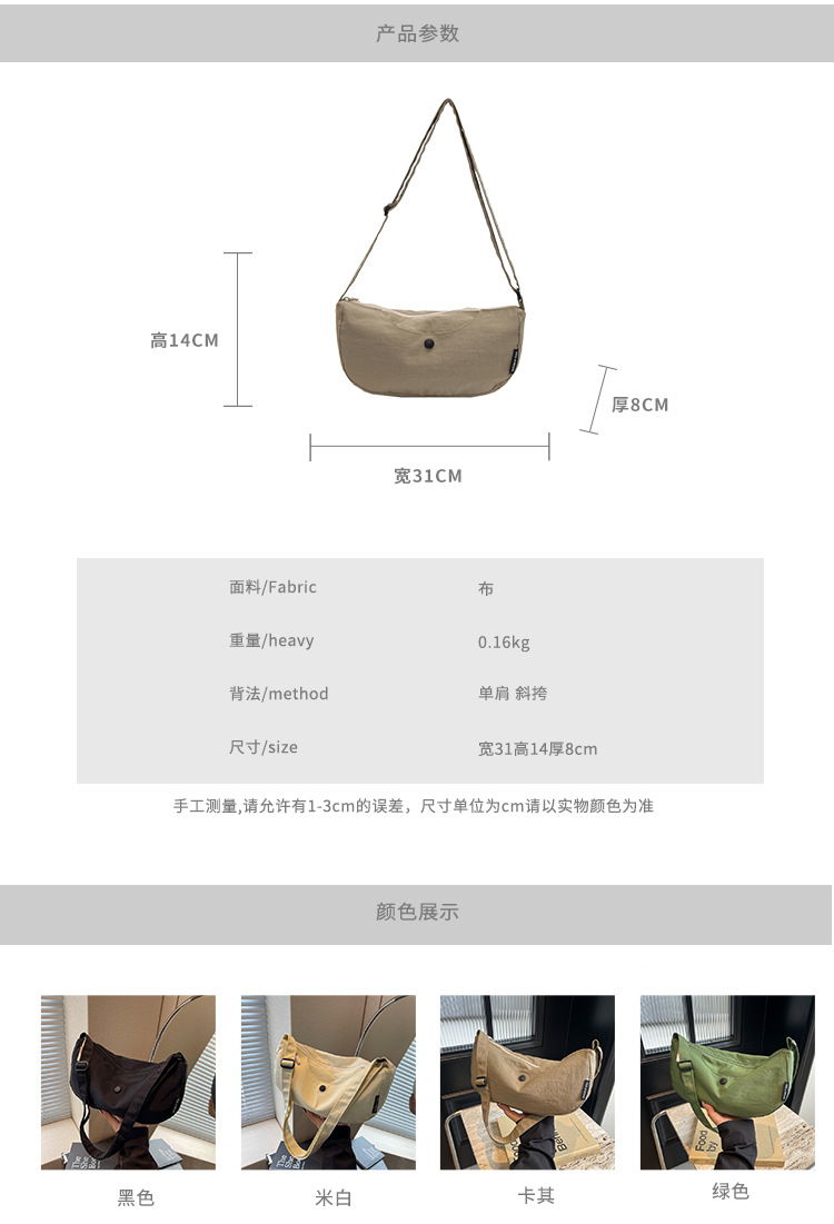 캐주얼 나일론 헝겊 가방 여성의 2024 새로운 가을 인기 크로스 바디 만두 백 모든 매치 틈새 싱글 숄더 백스토어 가기