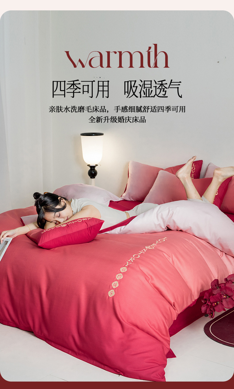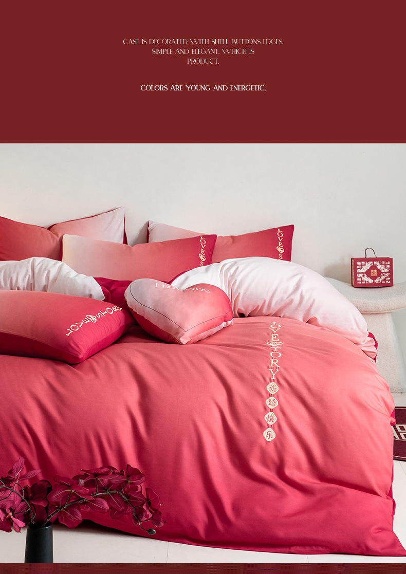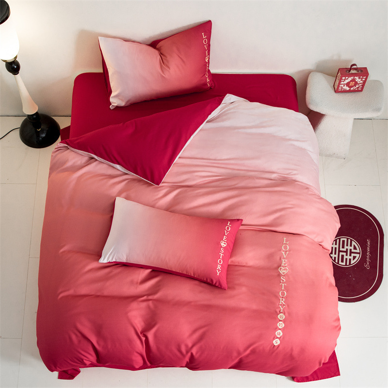 웨딩 침구 4 피스 웨딩 레드 웨딩 룸 퀼트 침대 시트 퀼트 시트 웨딩 그라디언트 결혼식스토어 가기