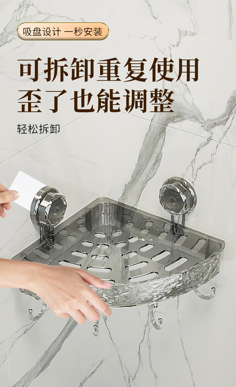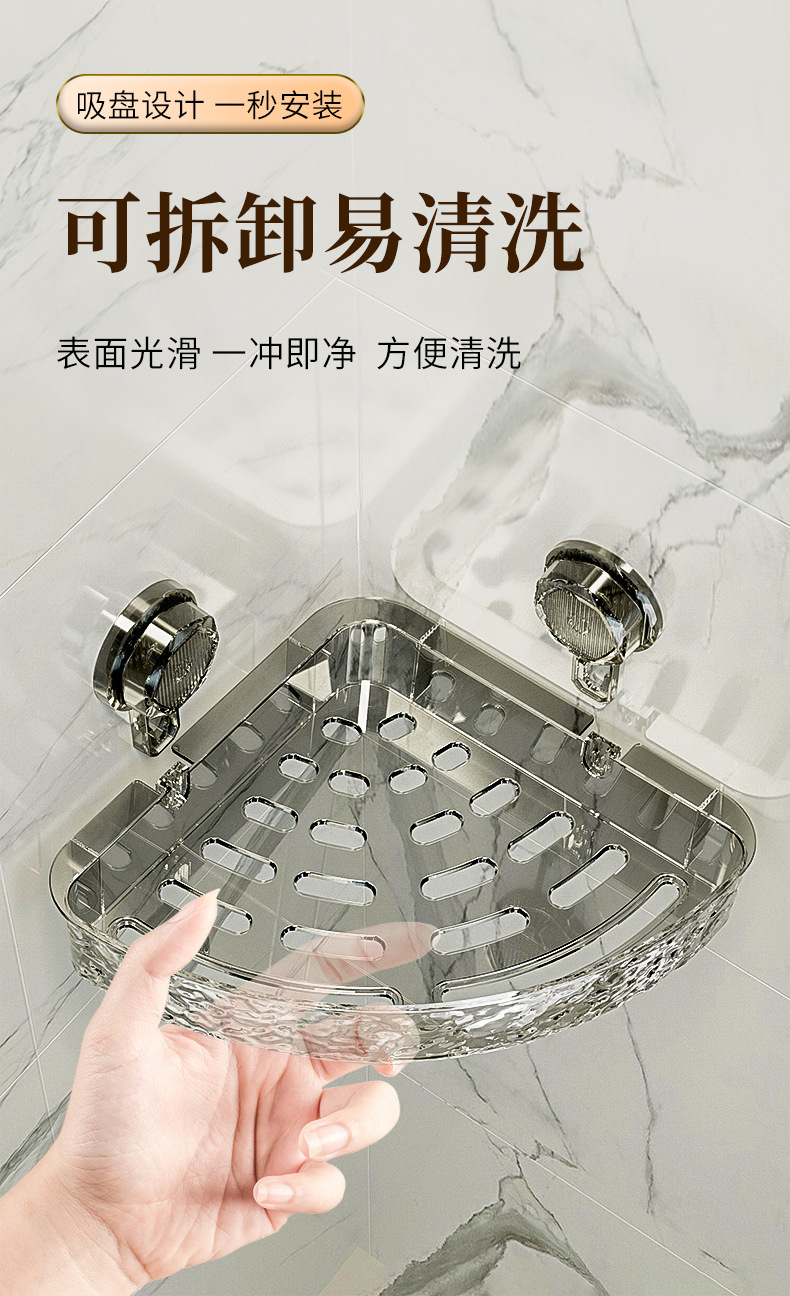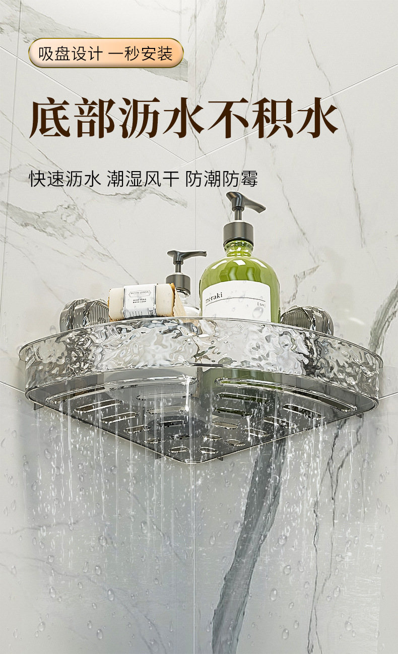• 삼각 흡착컵 수납선반 [투명그레이]